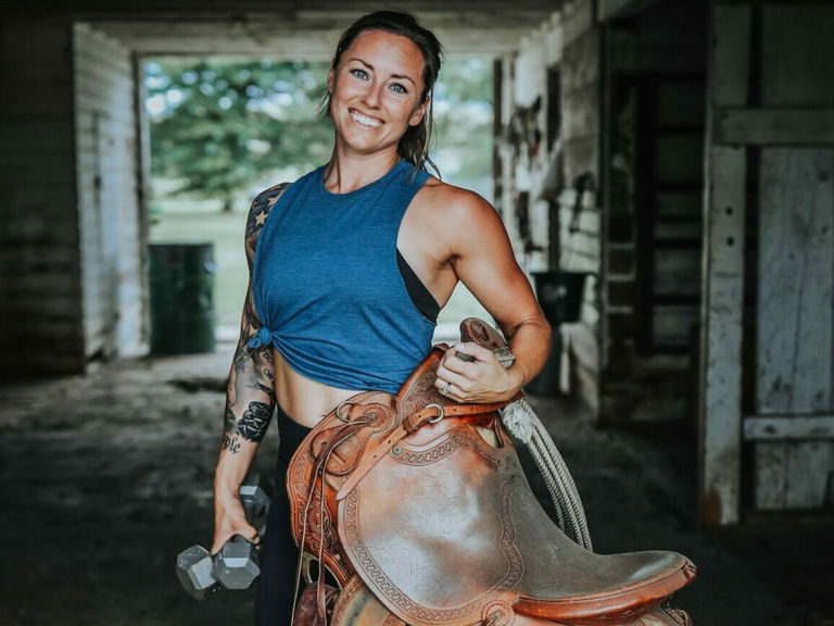 ‘Mind on the muscle in motion.’ Whether you’re pushing a wheelbarrow of manure, moving a hay bale or swinging a saddle onto your horse, keep your mind on the muscle in motion. Move with purpose and engage the muscles you can feel moving. This might make your everyday tasks feel more challenging at first, but it will greatly reduce your risk of injury and boost your strength at the same time.