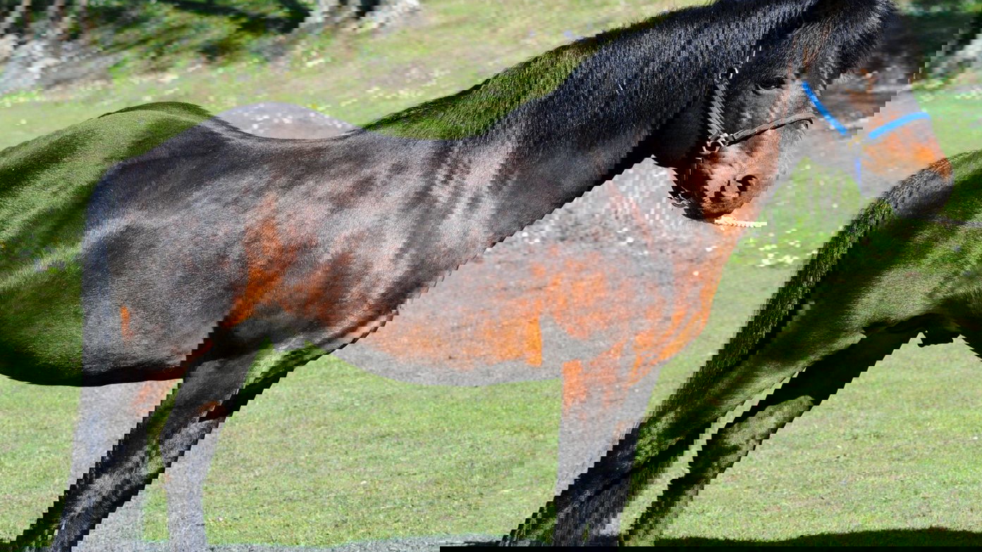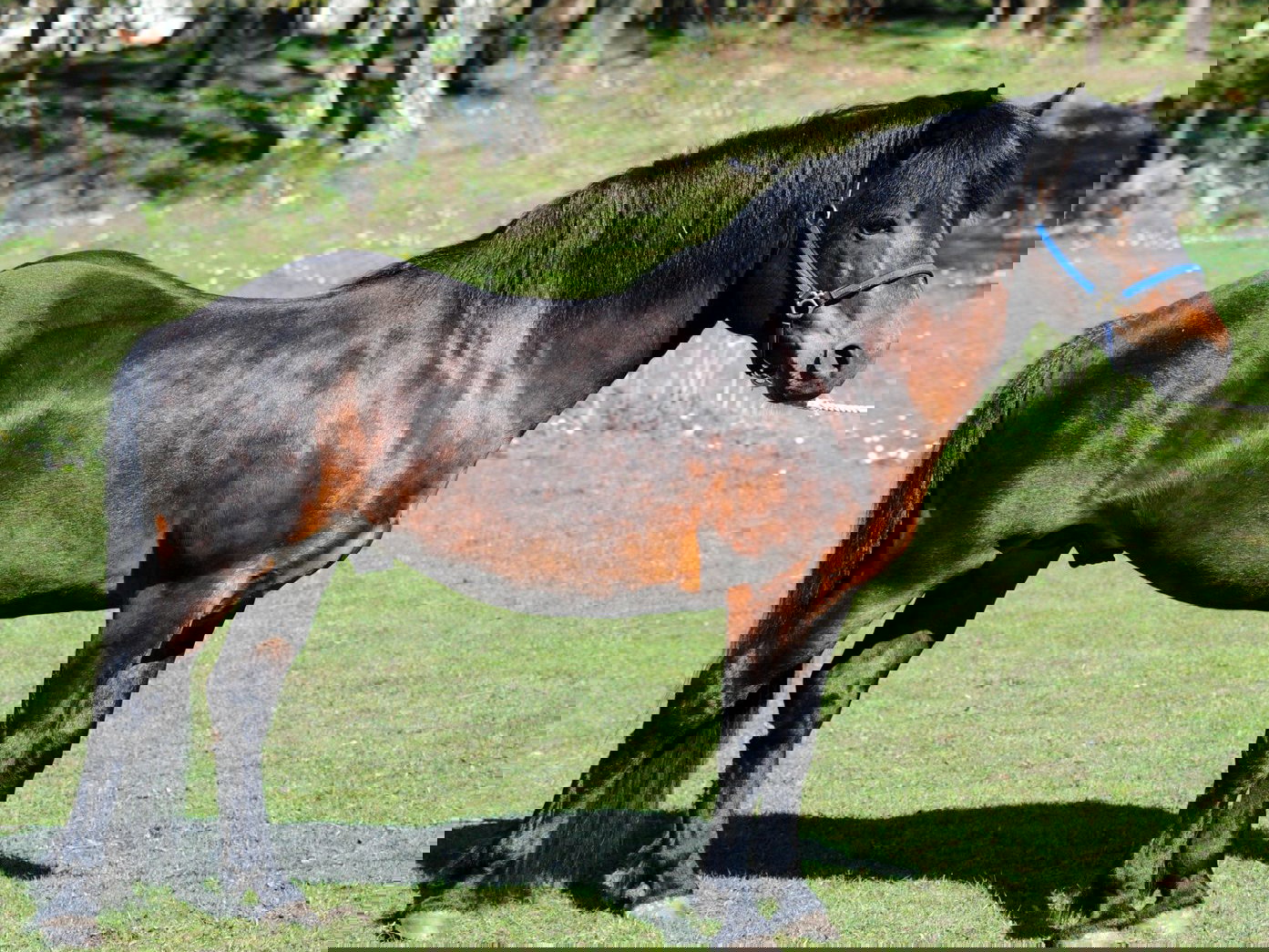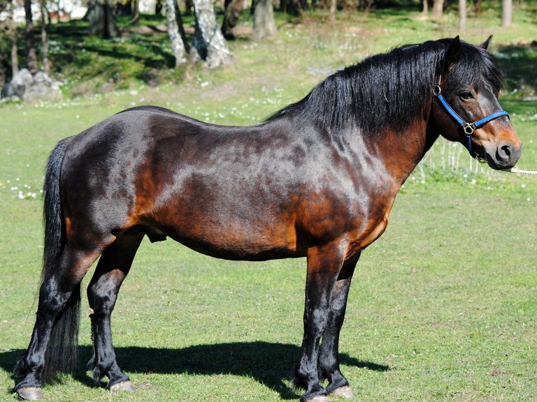 Distinguishing features: Small and sturdy in build, the Gotland pony generally stands between 11.1 to 13 hands high. They are extremely hardy thanks to their semi-wild history, often living into their thirties with minimal health issues. While dun, bay or black colouring is preferred, most colours are seen except piebald, roan and pure white. They have a typical pony head with large eyes and small ears, a muscular neck bearing a thick mane, pronounced withers with well-sloped shoulders and a deep chest. Gotlands have a long back, sloping croup, strong legs and hardy hooves that rarely need shoeing. They have energetic and smooth paces, especially the trot, making them very comfortable to ride. Thanks to their strength, they can carry adults weighing up to 72 kilograms for both competitive and pleasure riding. Gotland ponies are known for their calm and gentle disposition and exceptional intelligence, being very fast learners and easy to train.