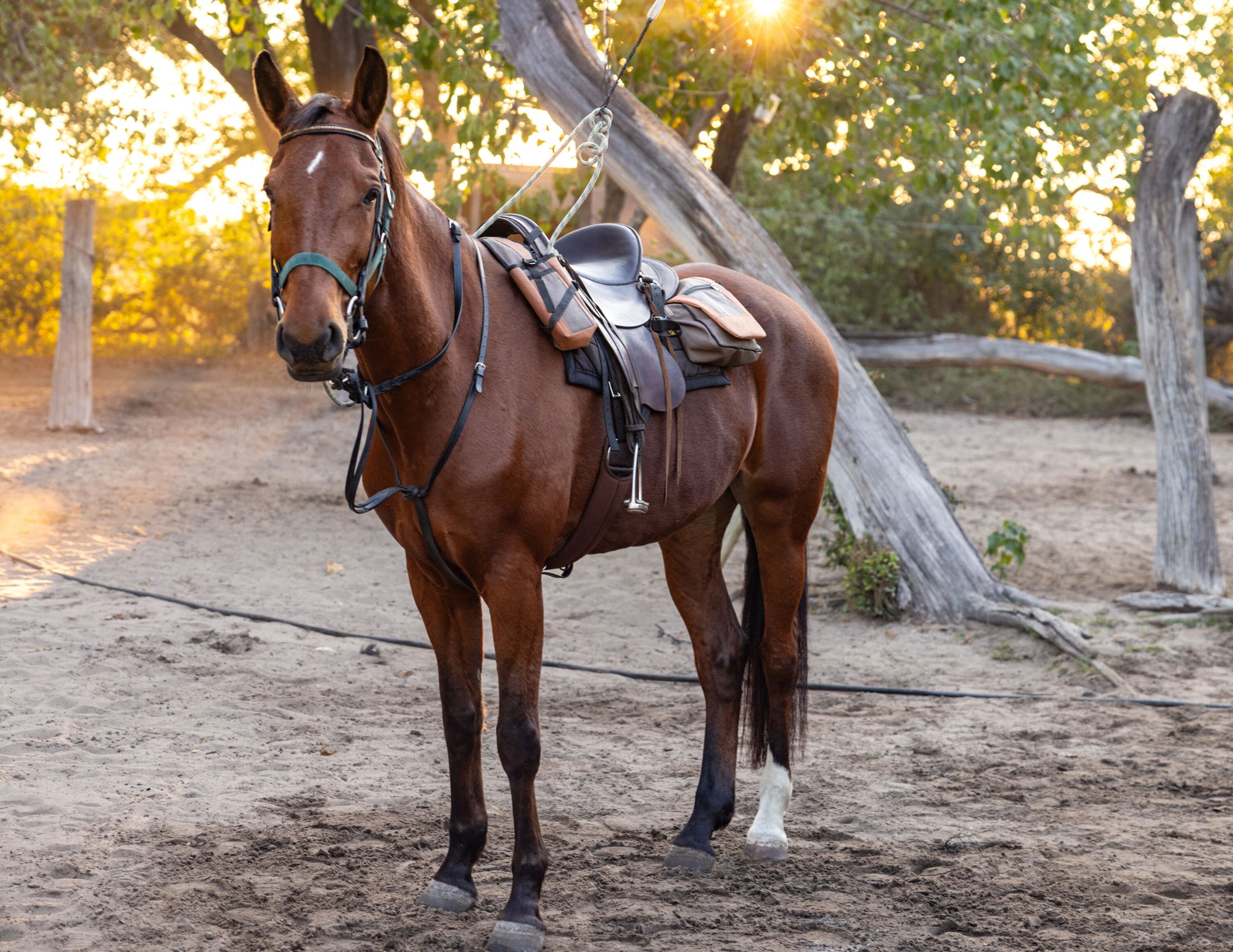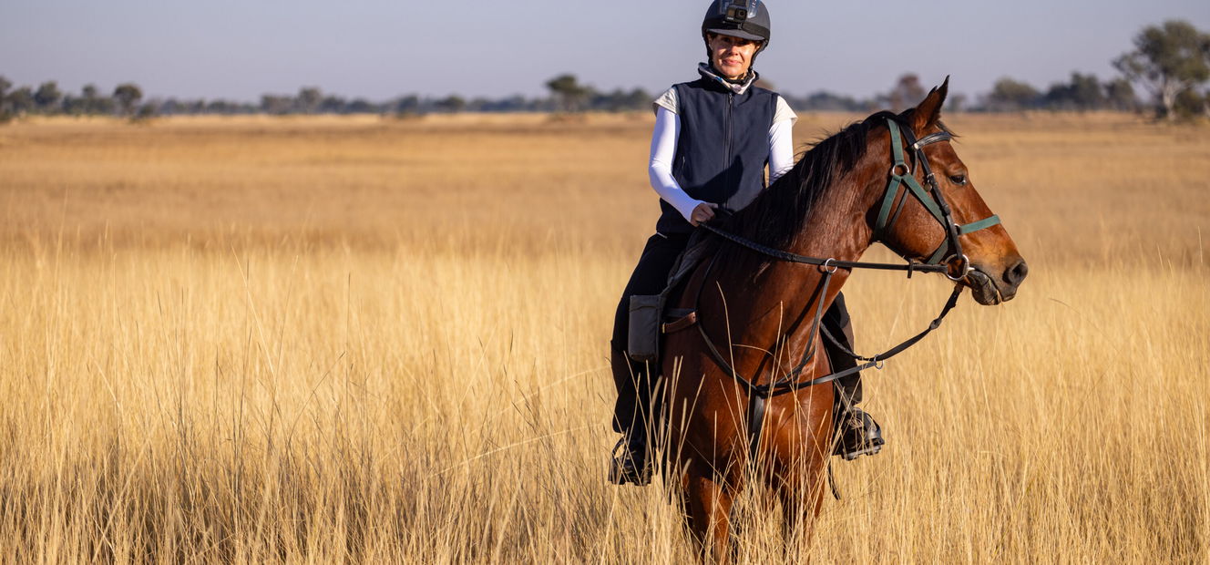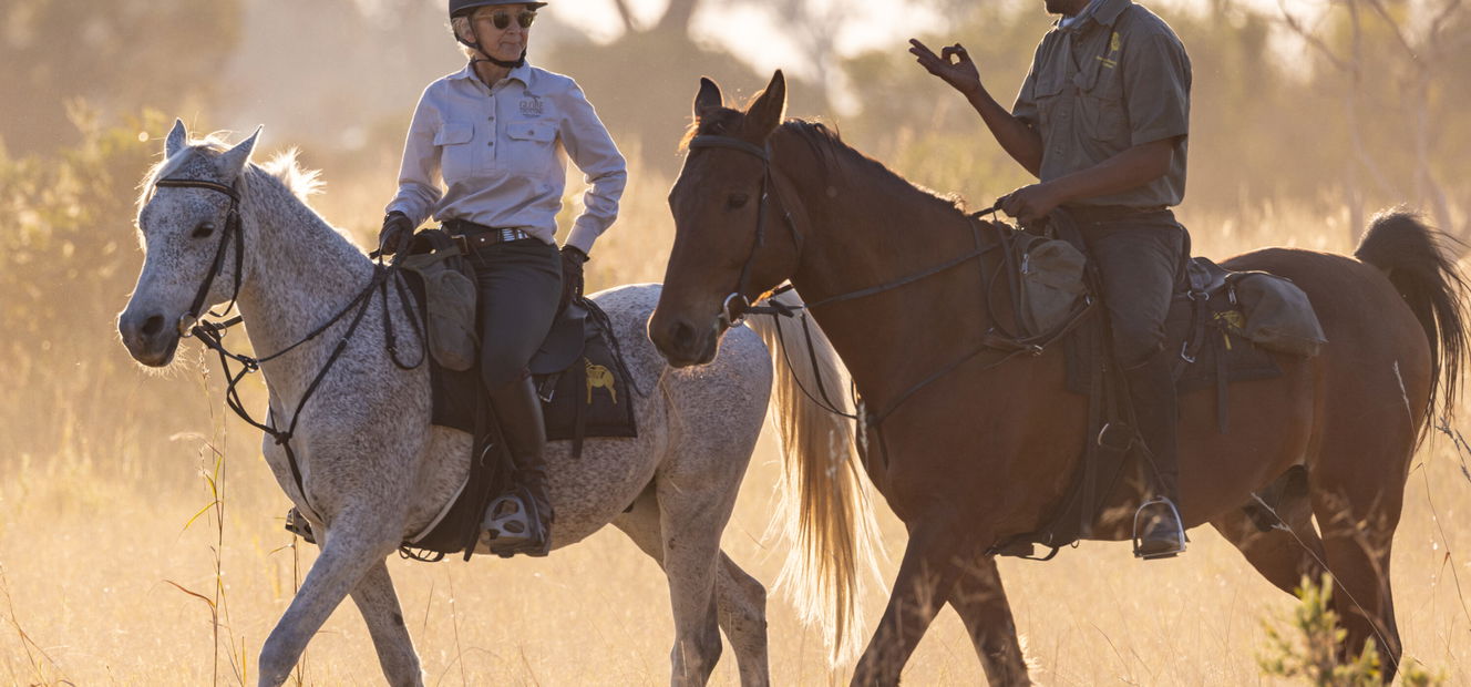 3 to 4 hours in the saddleYou’ll set out on a morning ride, with the option to try a new horse – perhaps one of our beautiful homebreds, a sure-footed Boerperd or one of our spirited, fun-loving Arabs. After a long, relaxed lunch and a rest, you’ll head out by vehicle for a magical bush dinner, followed by a night drive back to camp. It’s the perfect opportunity to spot nocturnal wildlife and enjoy some stargazing under the Delta’s velvet sky.