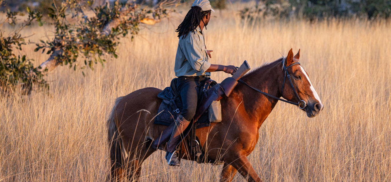 3 to 4 hours in the saddleTo give your horse a well-earned rest, you’ll spend the morning on a game drive that includes a bush walk and some tracking. Drives are the ideal opportunity to seek out predators – from the endangered African wild dog to the many leopards that call this area home.