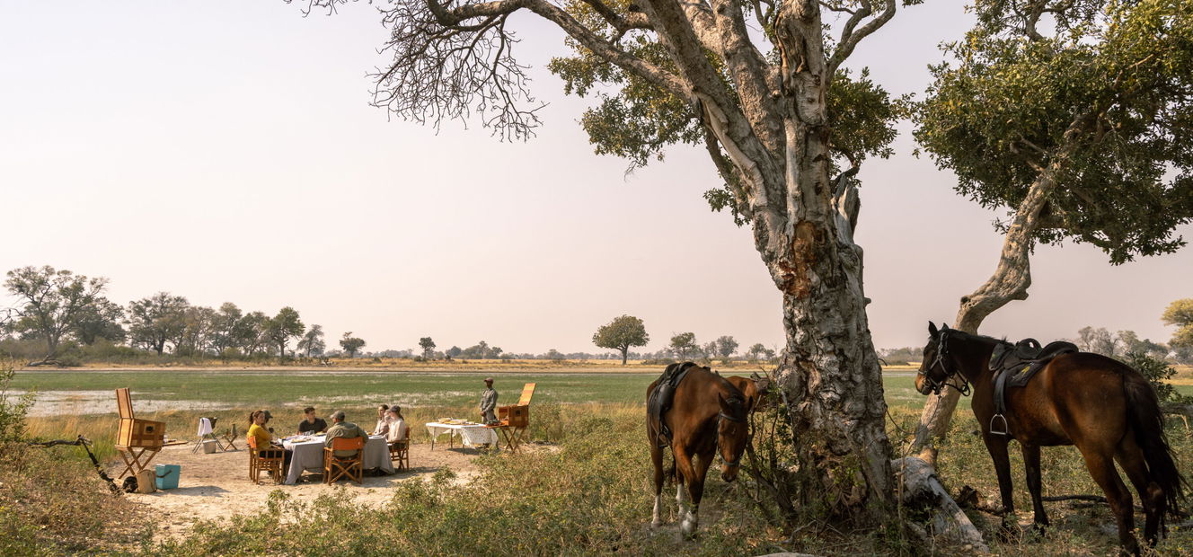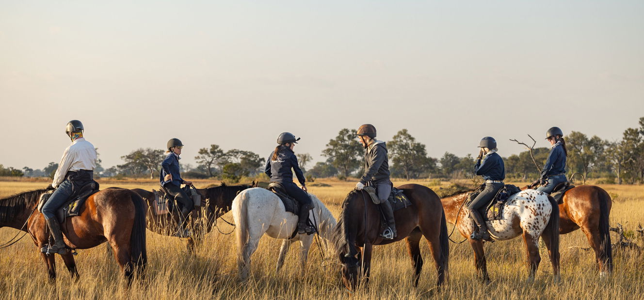 Mokoro glides, speedboat outings, game drives and bush walks are all on offer (water levels dependent for some activities), so there’s no shortage of adventure. Non-riders join the group for picnic lunches, afternoon activities, bush dinners, fly-camps and sleep-outs, so mixed groups still spend plenty of quality time together.