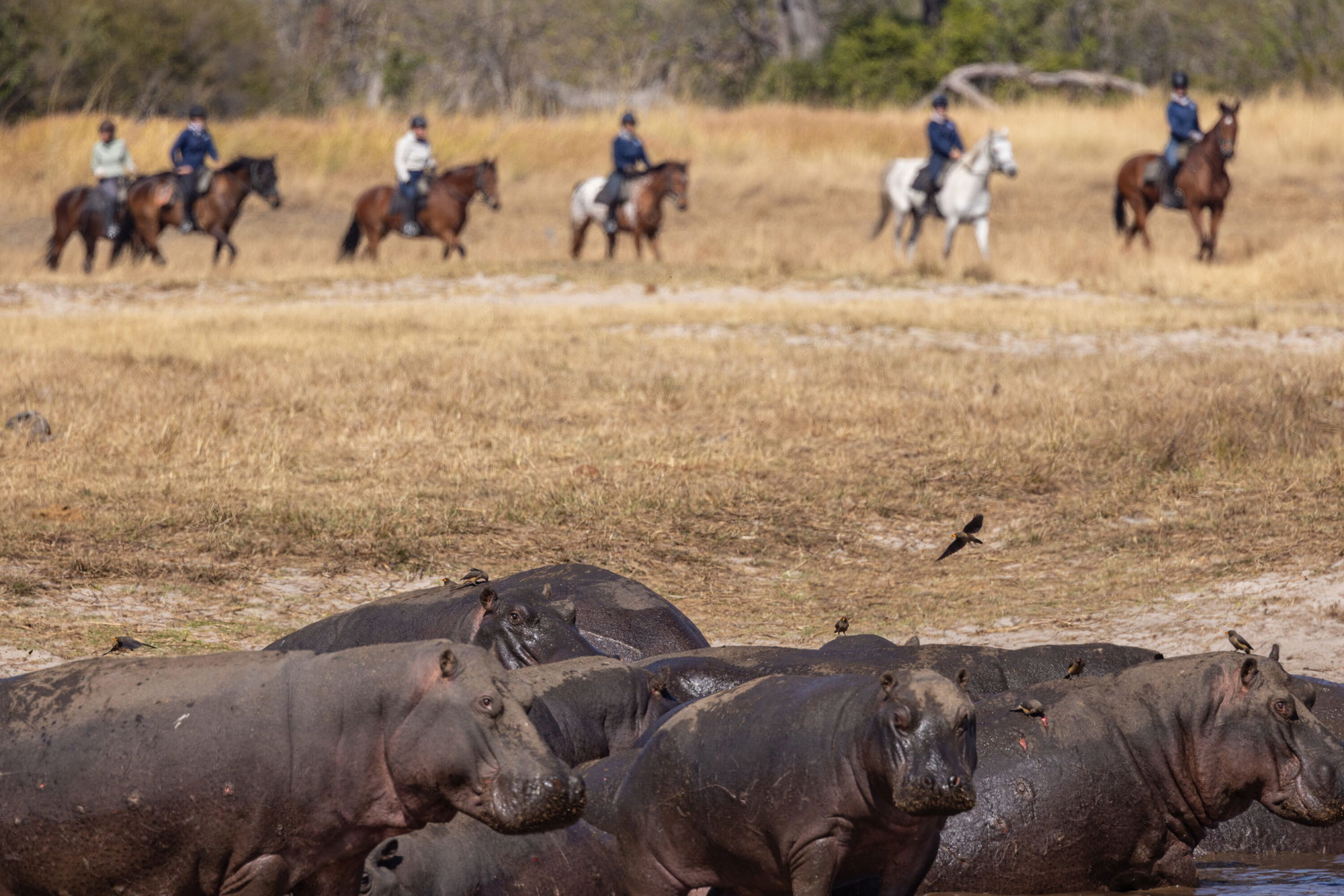 5 to 6 hours in the saddleA full days ride back to camp picnicing at a different spot and completing the journey you set out on two days before. A chance to swim your horse back into Kujwana Camp if water levels permit. A final evening dinner with a few tales from your safari to tell!