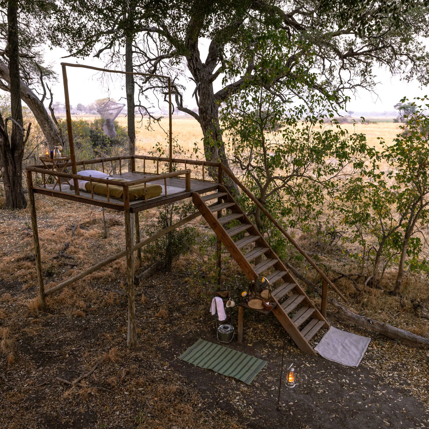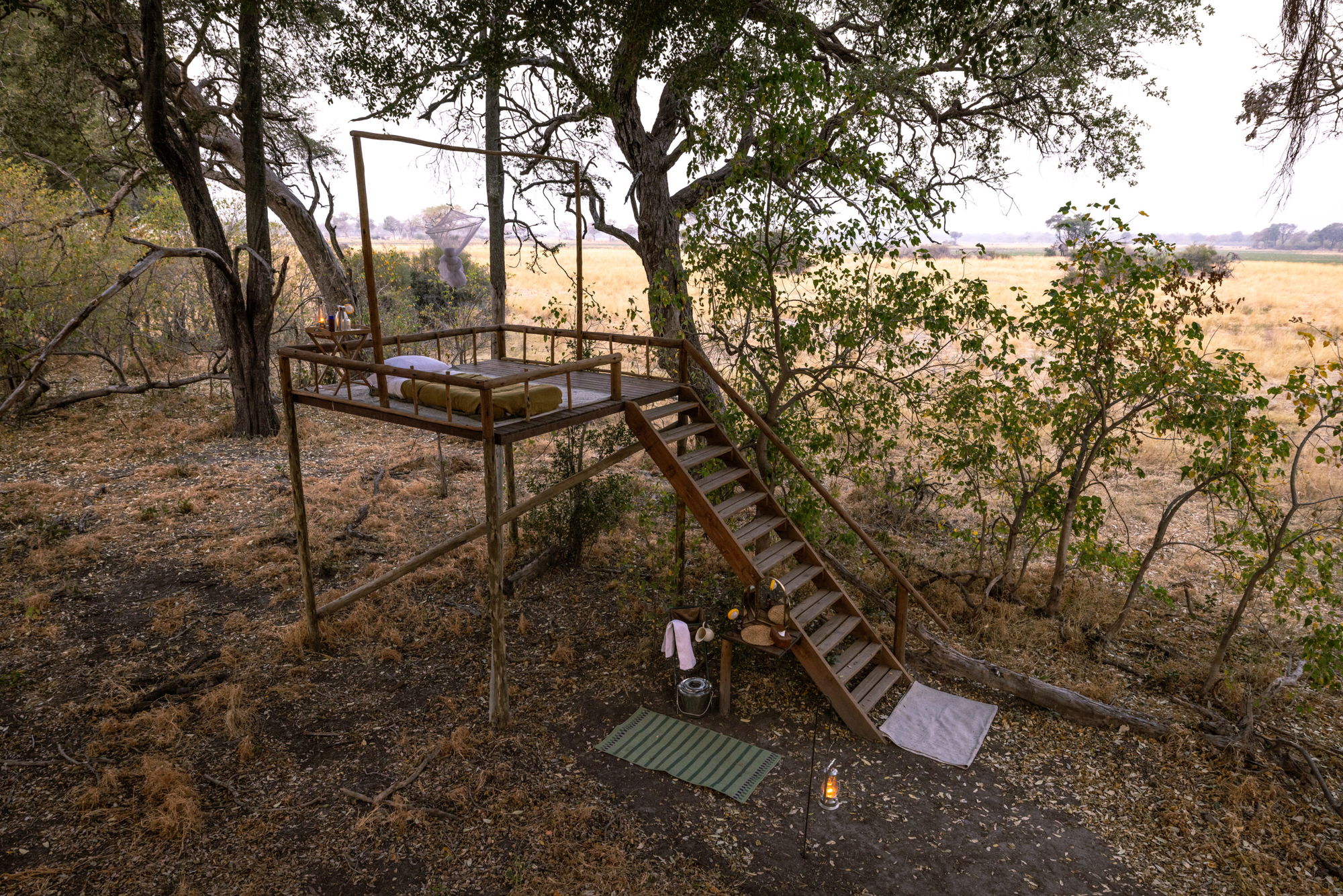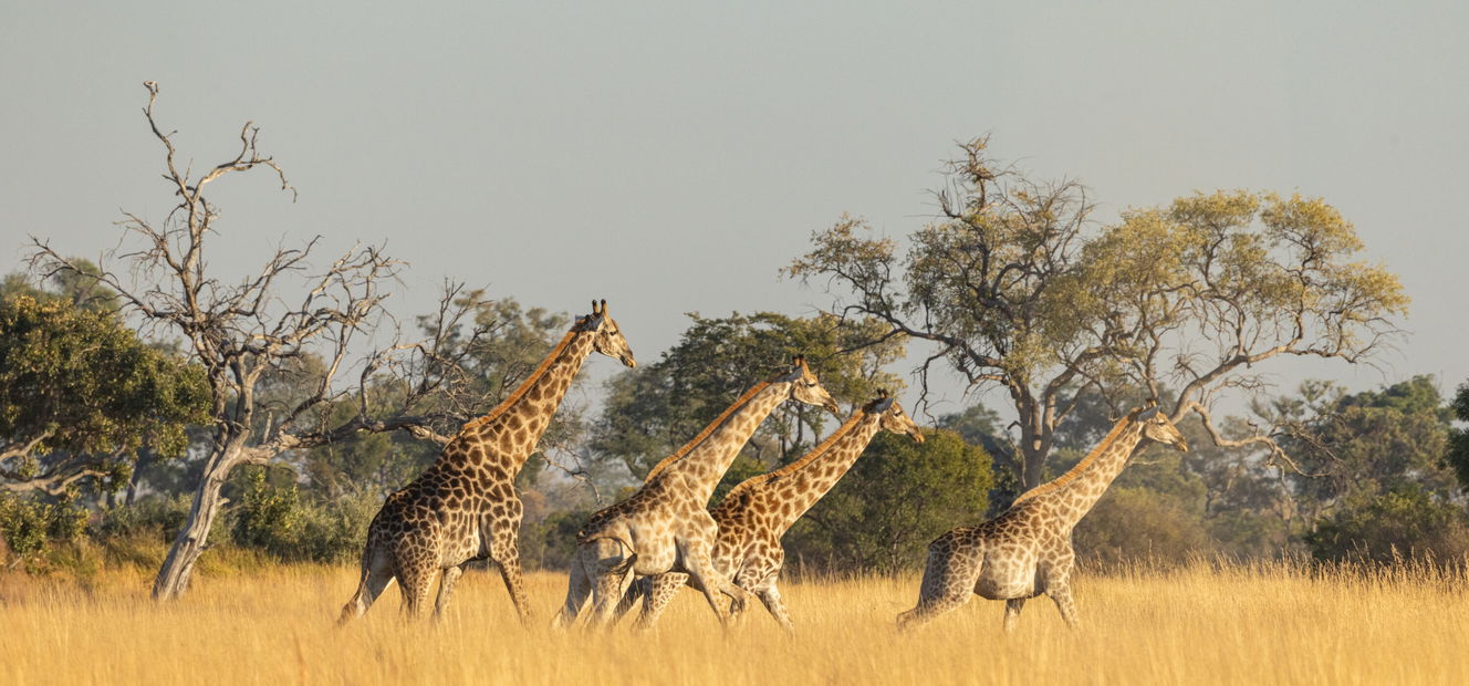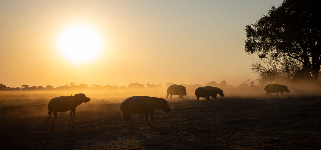 2 hours in the saddleYou’ll wake high in the trees on your platform to a spectacular sunrise over the Qwaapu area, watching game wander quietly across the floodplain below. After a bush breakfast, you’ll make your way back to Kujwana Camp with a combination of game drive and walk.