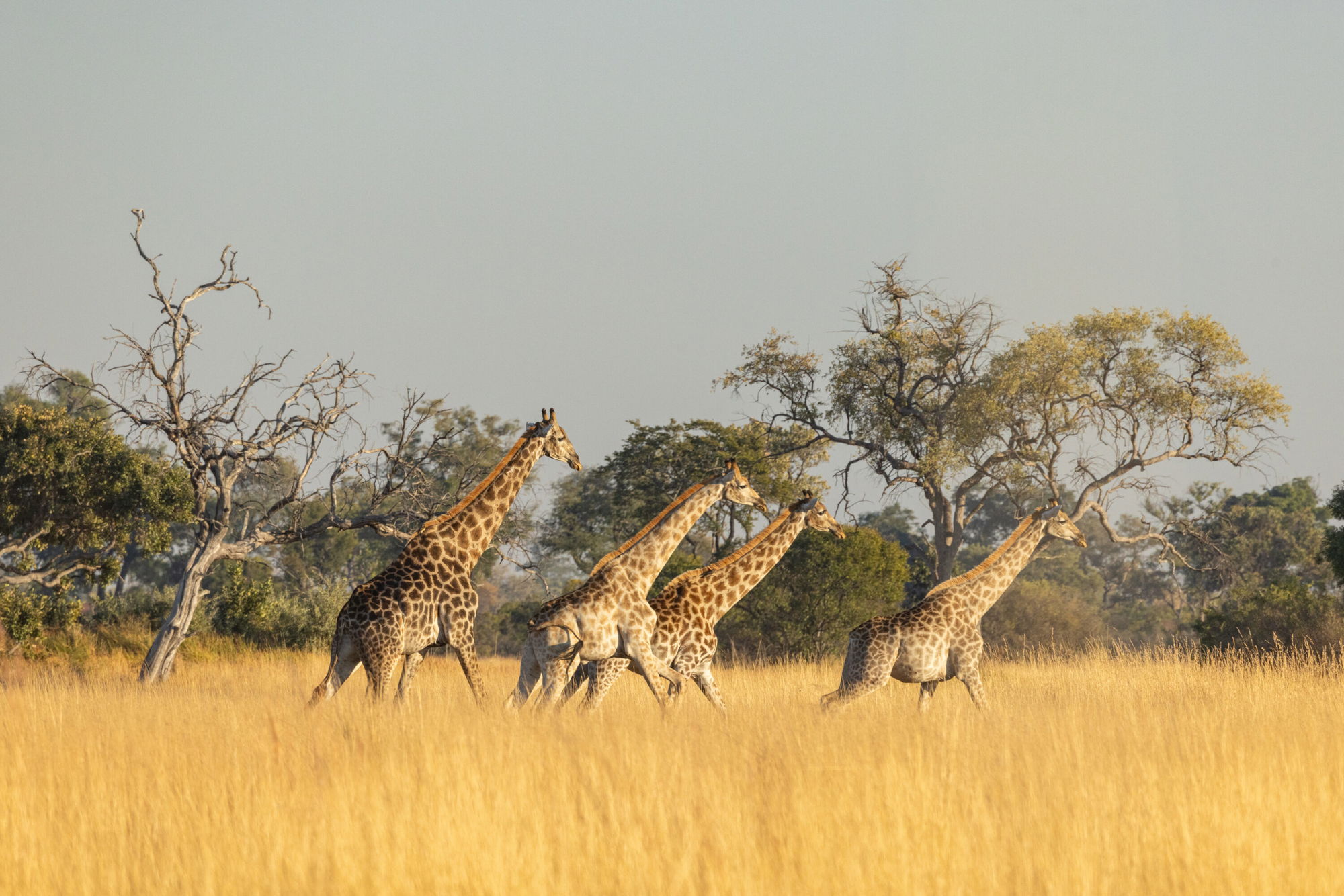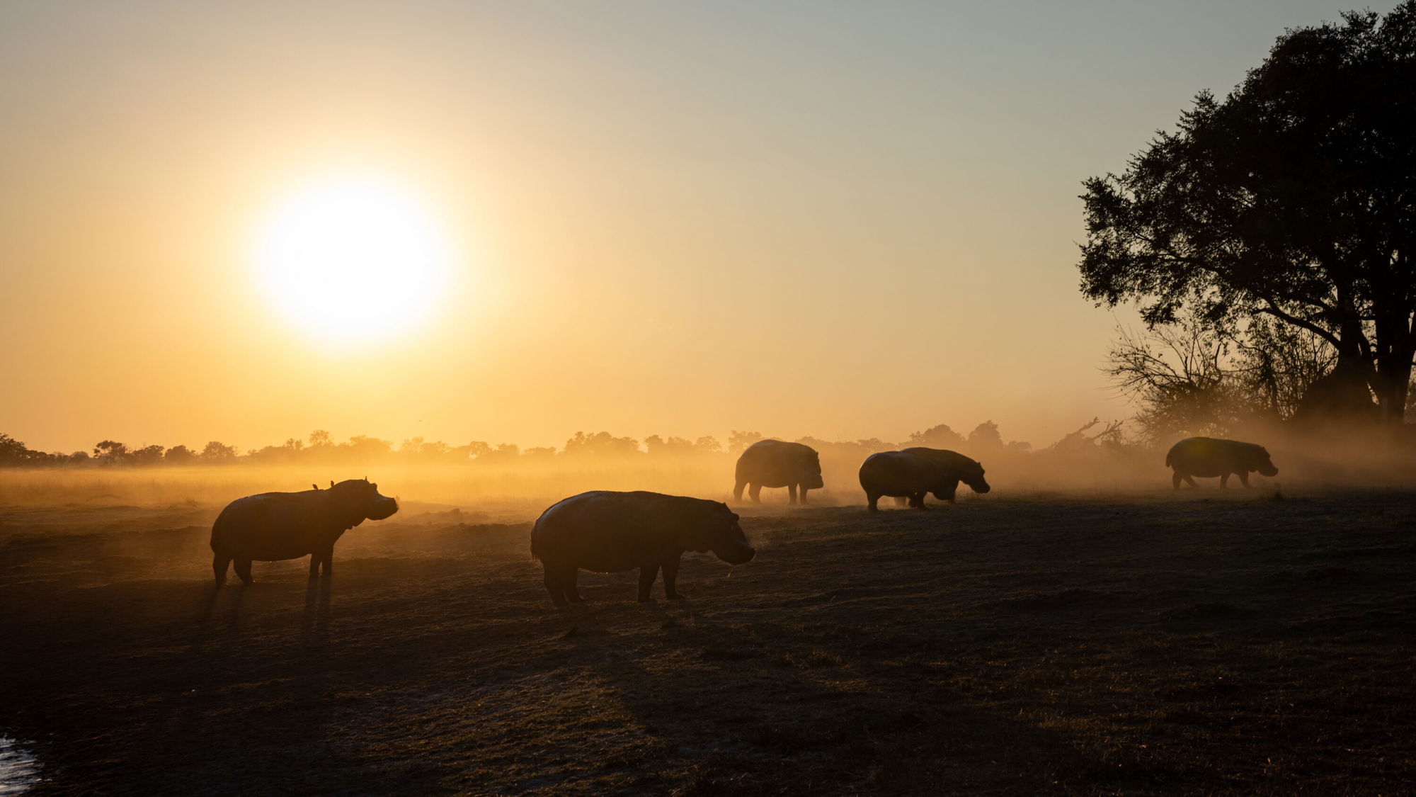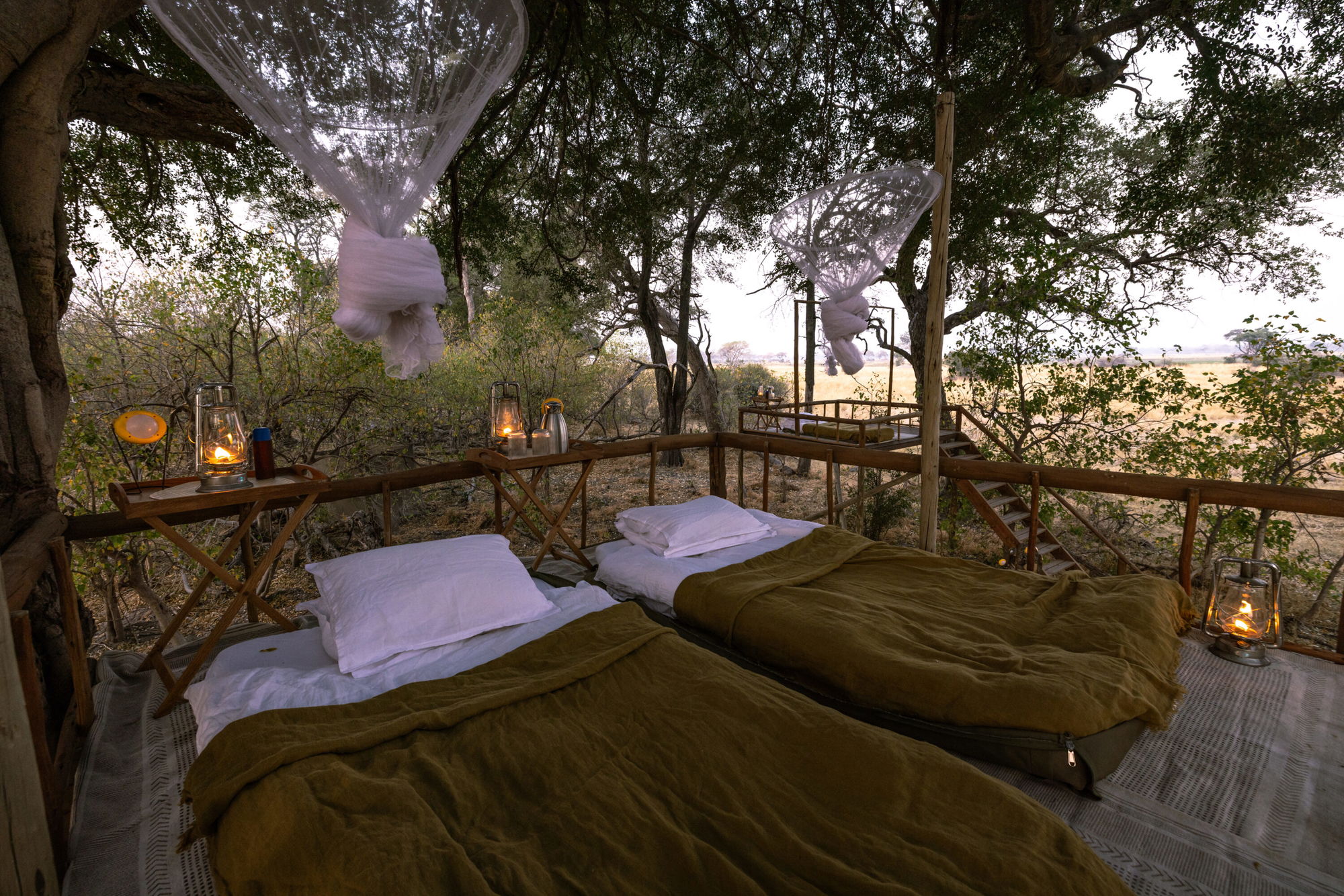 2 hours in the saddleYou’ll wake high in the trees on your platform to a spectacular sunrise over the Qwaapu area, watching game wander quietly across the floodplain below. After a bush breakfast, you’ll make your way back to Kujwana Camp with a combination of game drive and walk.