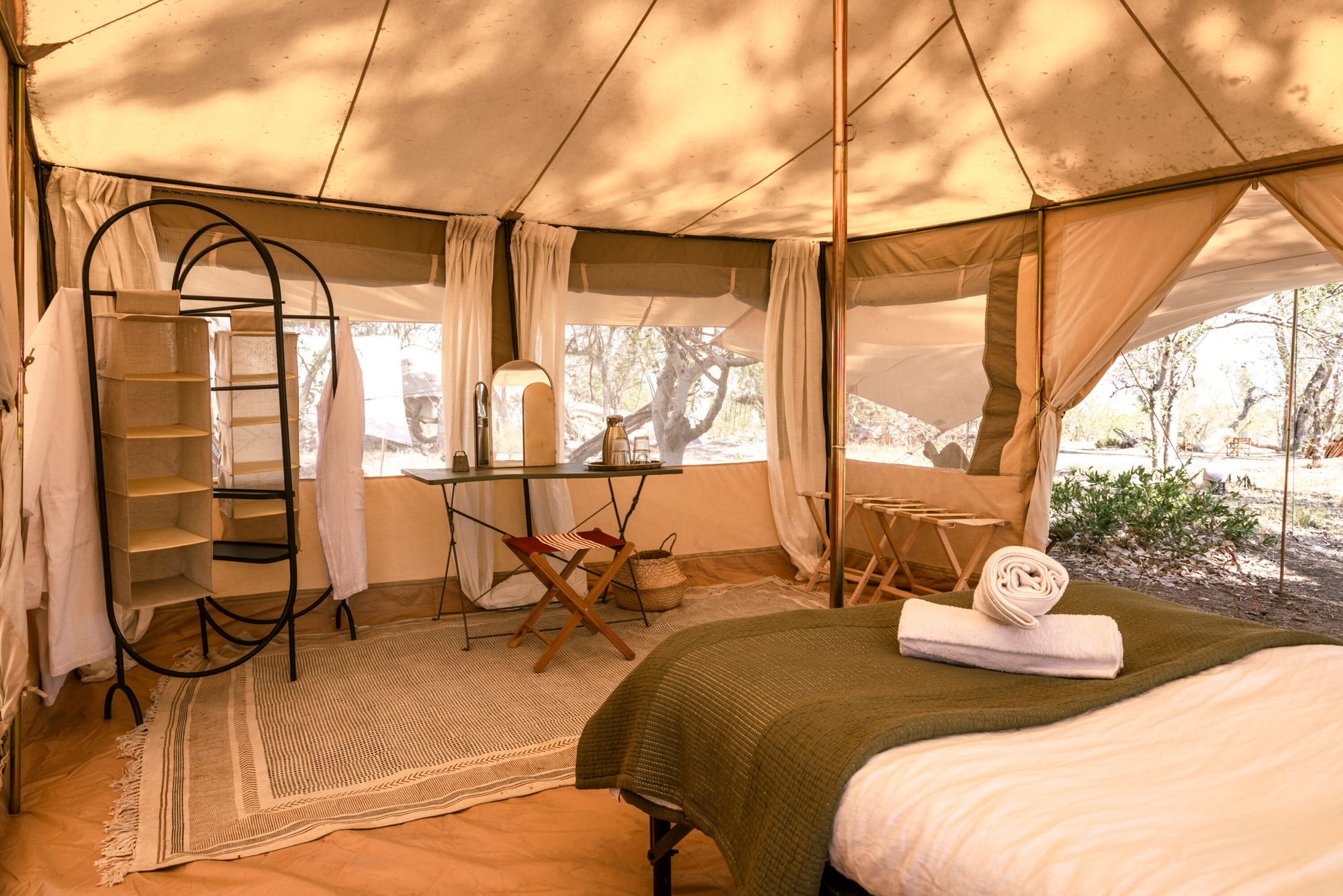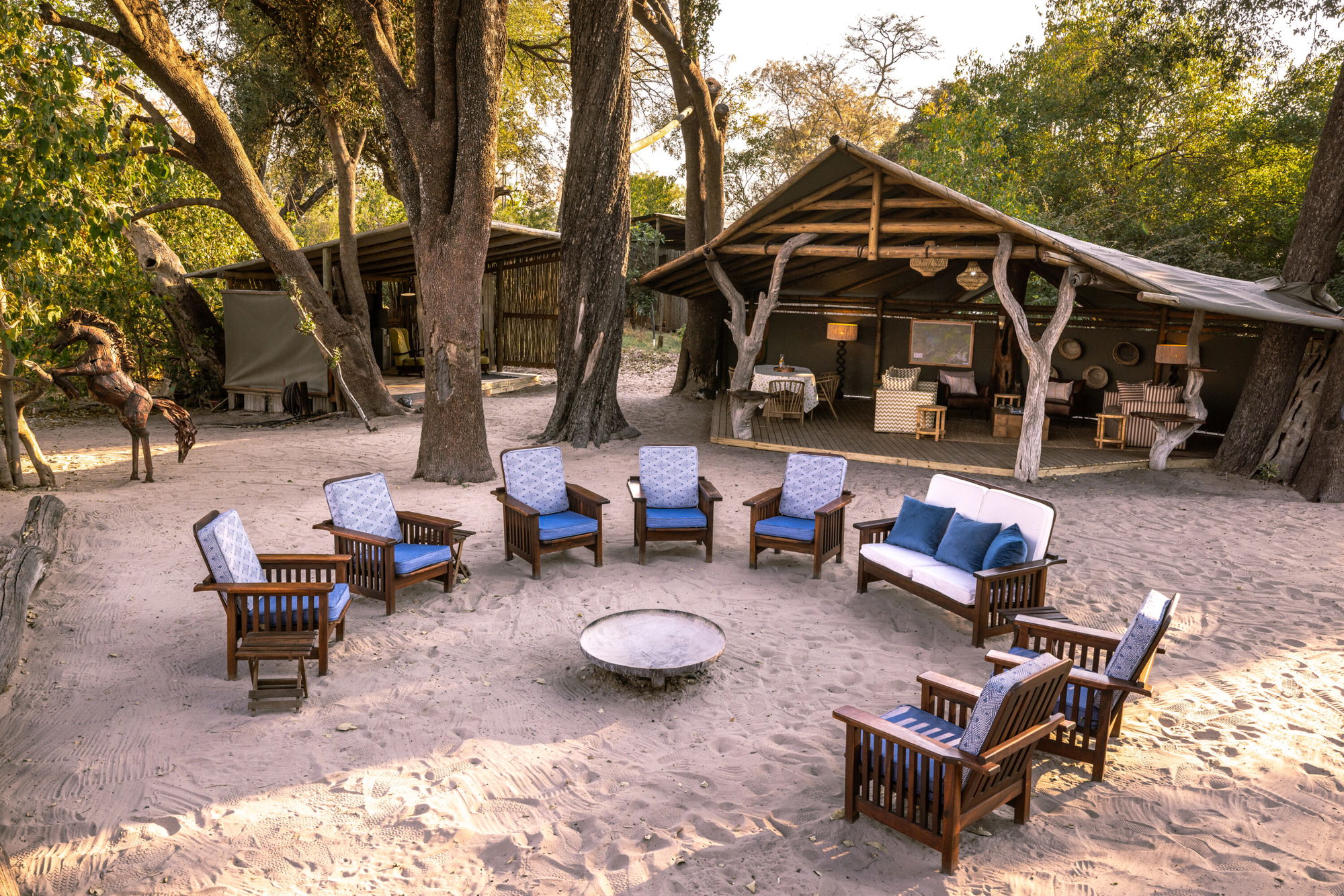 A classic, remote safari camp beyond Kujwana’s range, with comfortable tents, hot ensuite showers and the rare pleasure of sleeping deep in the bush with your horse nearby. - Pace