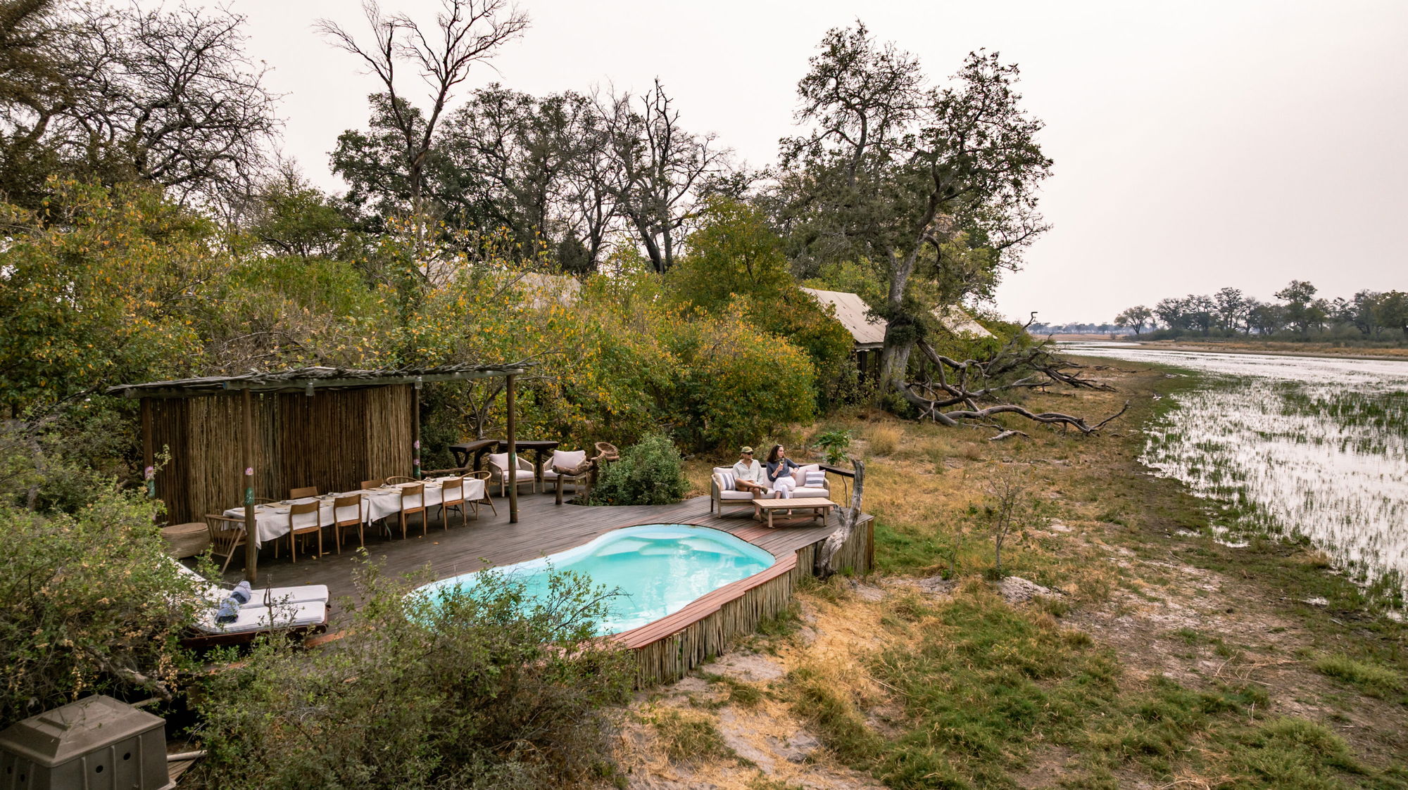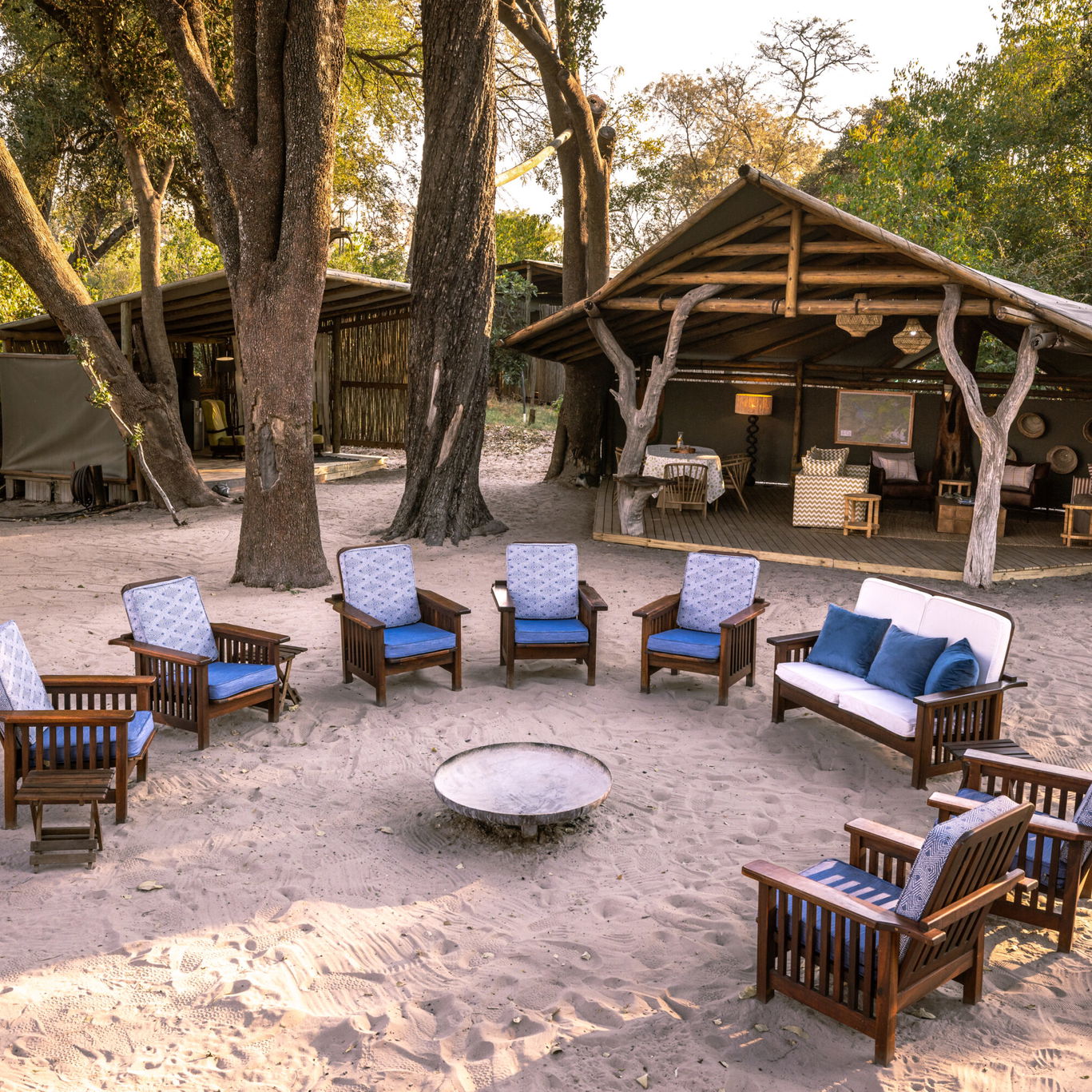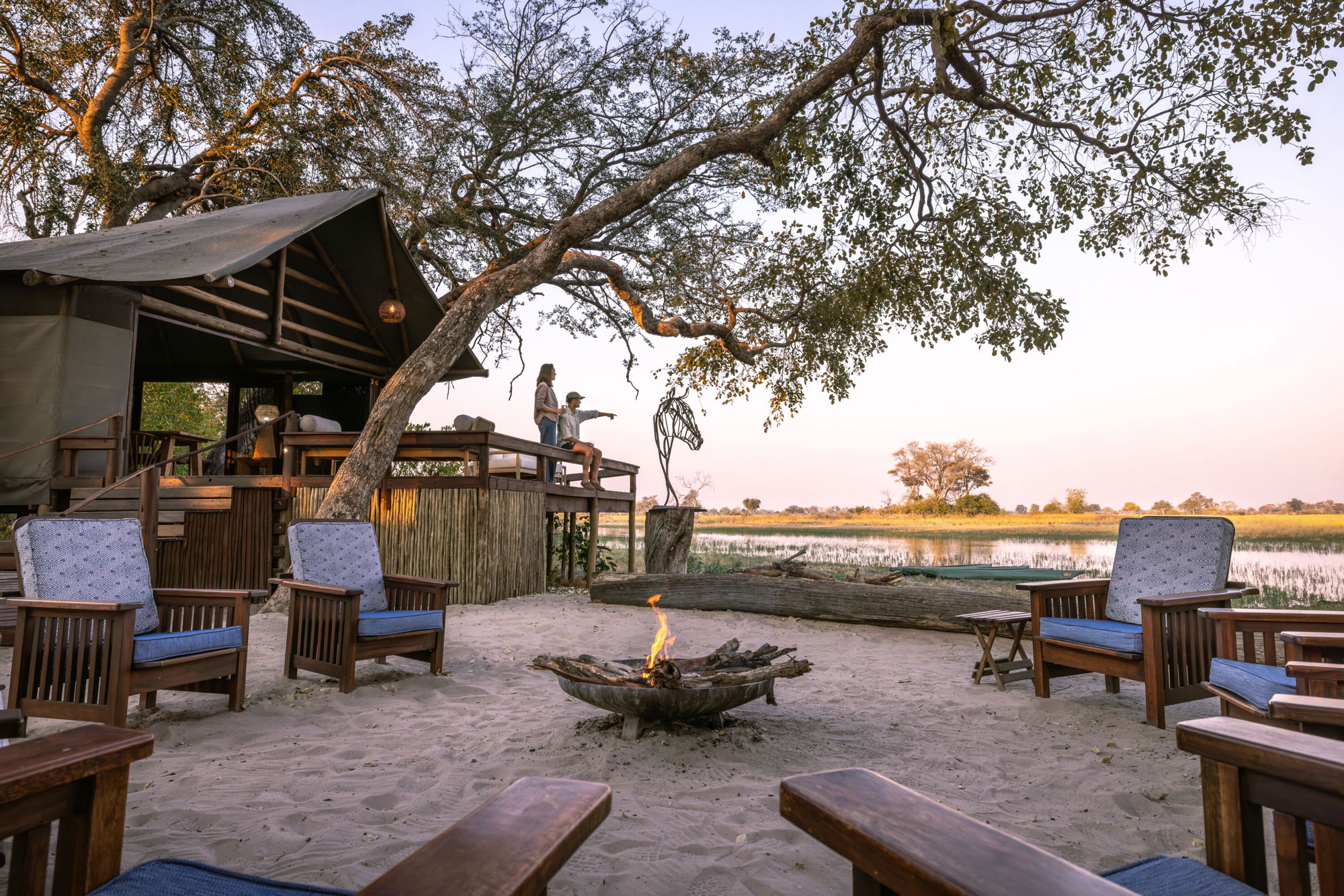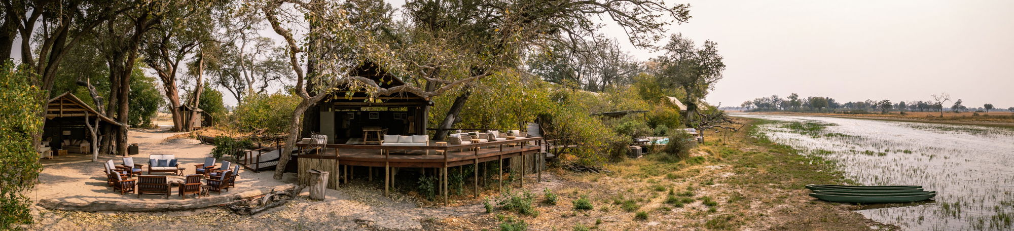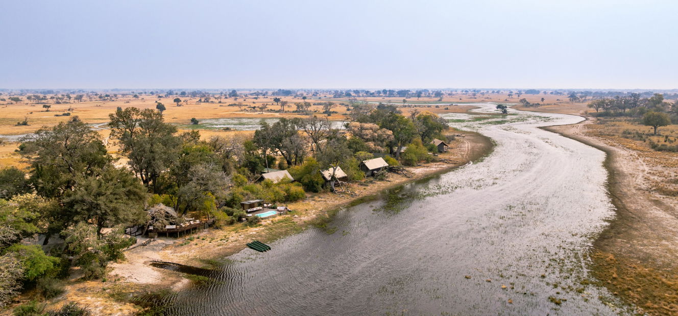A six-suite camp set on an island in the Xudum River, offering an intimate blend of wilderness and understated luxury, with wildlife close at hand and Delta views from every veranda.Fly-Camp