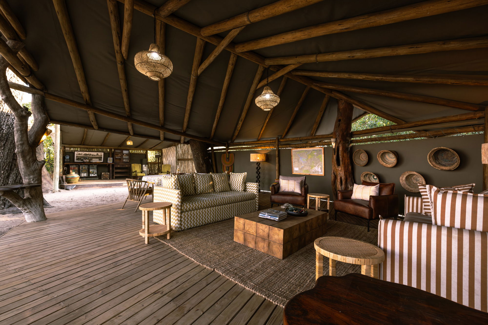 Soft drinks, tea, coffee, beers, wines and a choice of standard spirits are all available for no additional fee and special requests can be catered for. If premium drinks are requested in advance they can be purchased and billed for. Local products are showcased, including Okavango Brewery beer and Okavango Gin.