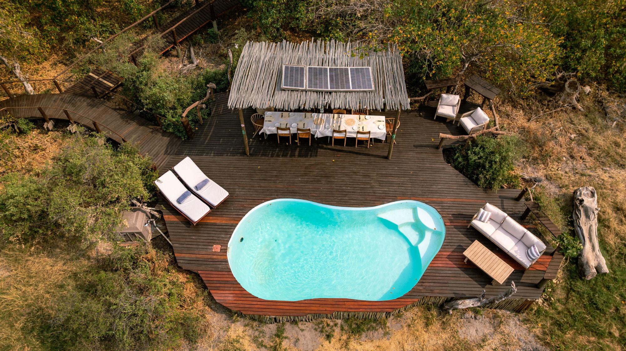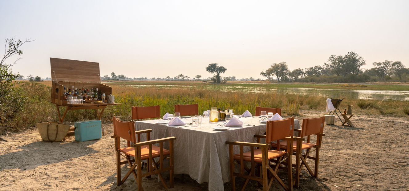 The brilliant kitchen team in the Okavango Delta keeps you wonderfully well fed with three hearty meals a day, plus saddlebag snacks, sundowner canapés, picnic lunches and unforgettable bush dinners.