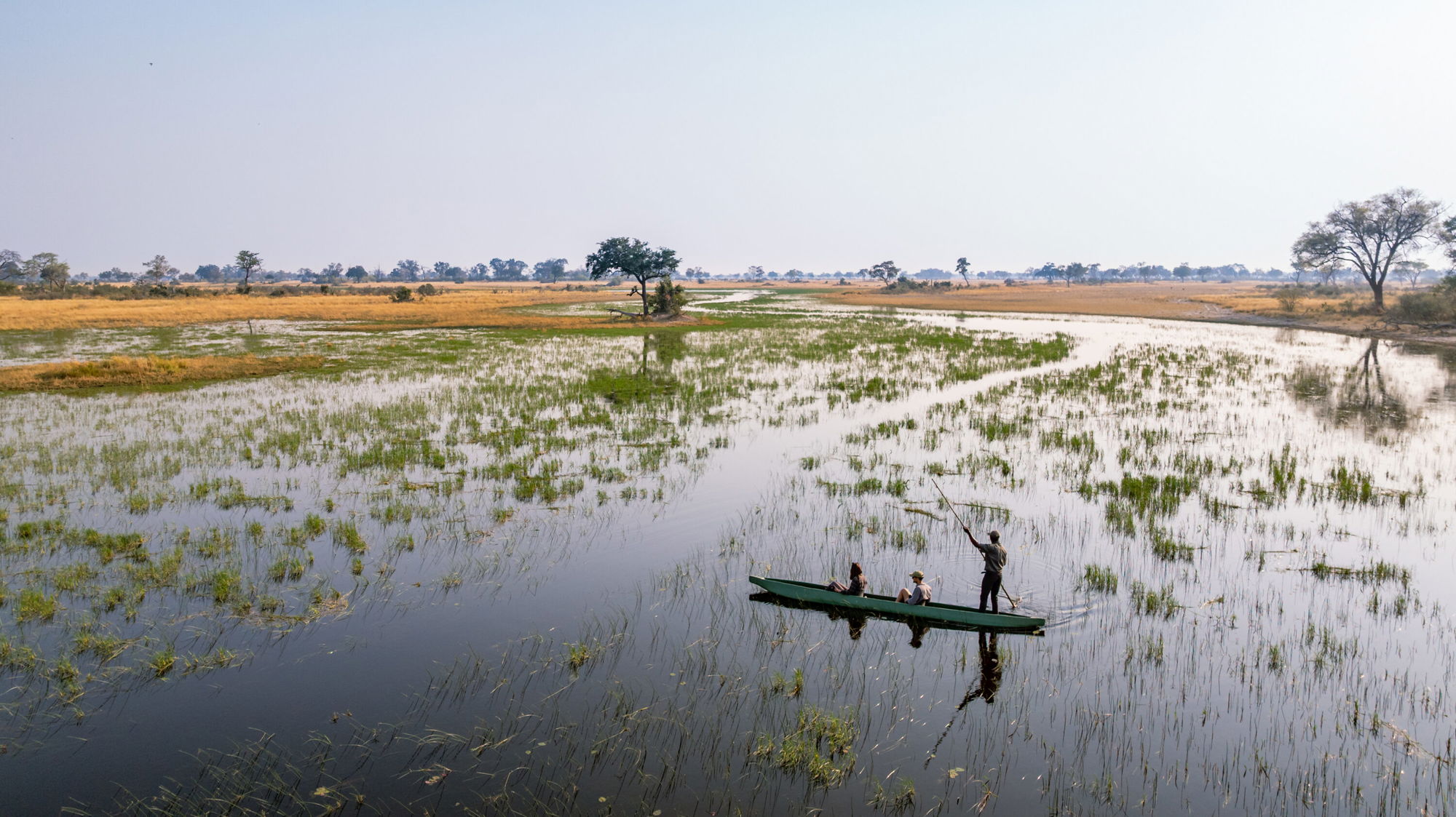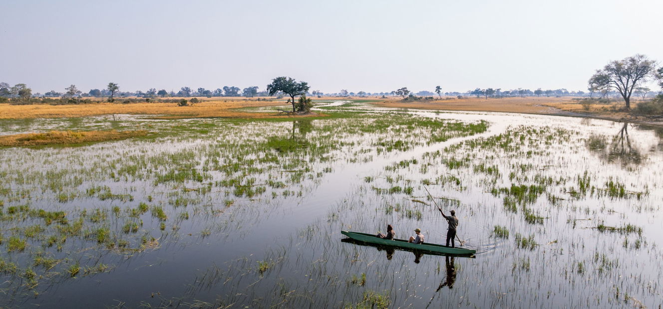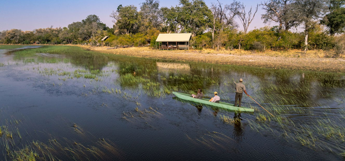 A 7-night itinerary gives you the chance to truly sink into the magic of the Delta.From Kujwana Camp – a wild, watery haven at the heart of the Okavango – you’ll spend your days riding across pristine landscapes, stopping for picnic lunches, drifting through channels in mokoros, walking, game driving and, when the water allows, skimming across the plains by powerboat.