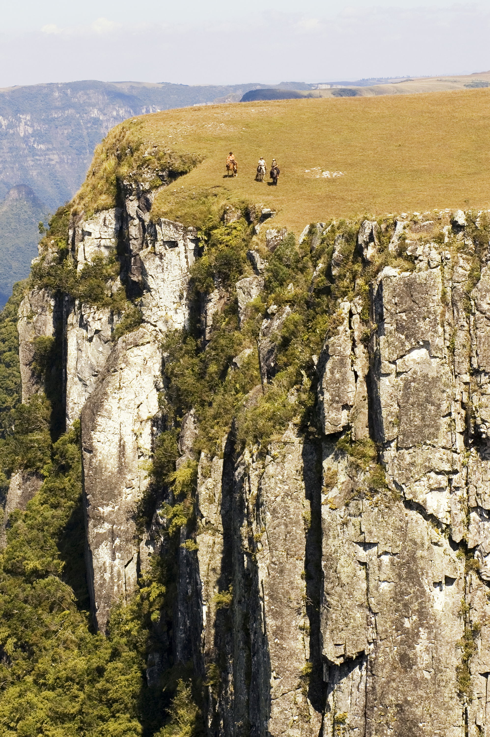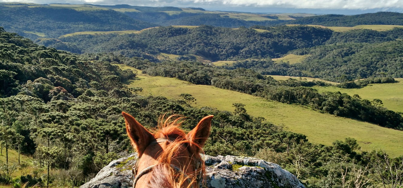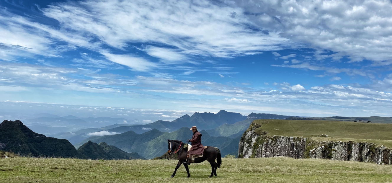 4 hours in the saddleThe ride today explores a dramatic change in scenery, moving through open fields and forest before the land suddenly drops away into vast canyons. Towering rock walls plunge up to 1,000 metres, forming a natural corridor stretching from Rio Grande do Sul towards Santa Catarina. Lunch is taken at a typical local farm before a relaxed return ride to Tio Tonho Farm.