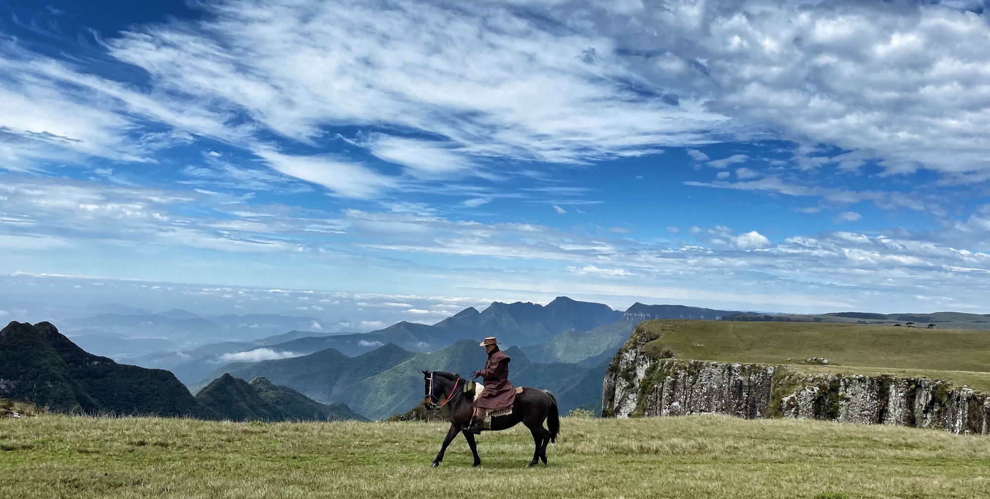 4 to 5 hours in the saddleToday brings a truly special highlight. Riding out after breakfast, you ascend towards Pico do Monte Negro, the highest point in Rio Grande do Sul at 1,403 metres. From the summit, sweeping views open up in every direction, creating a powerful sense of freedom and remoteness. Lunch, weather permitting, is a countryside barbecue enjoyed with expansive views. The afternoon returns you to Tio Tonho Farm for the evening.