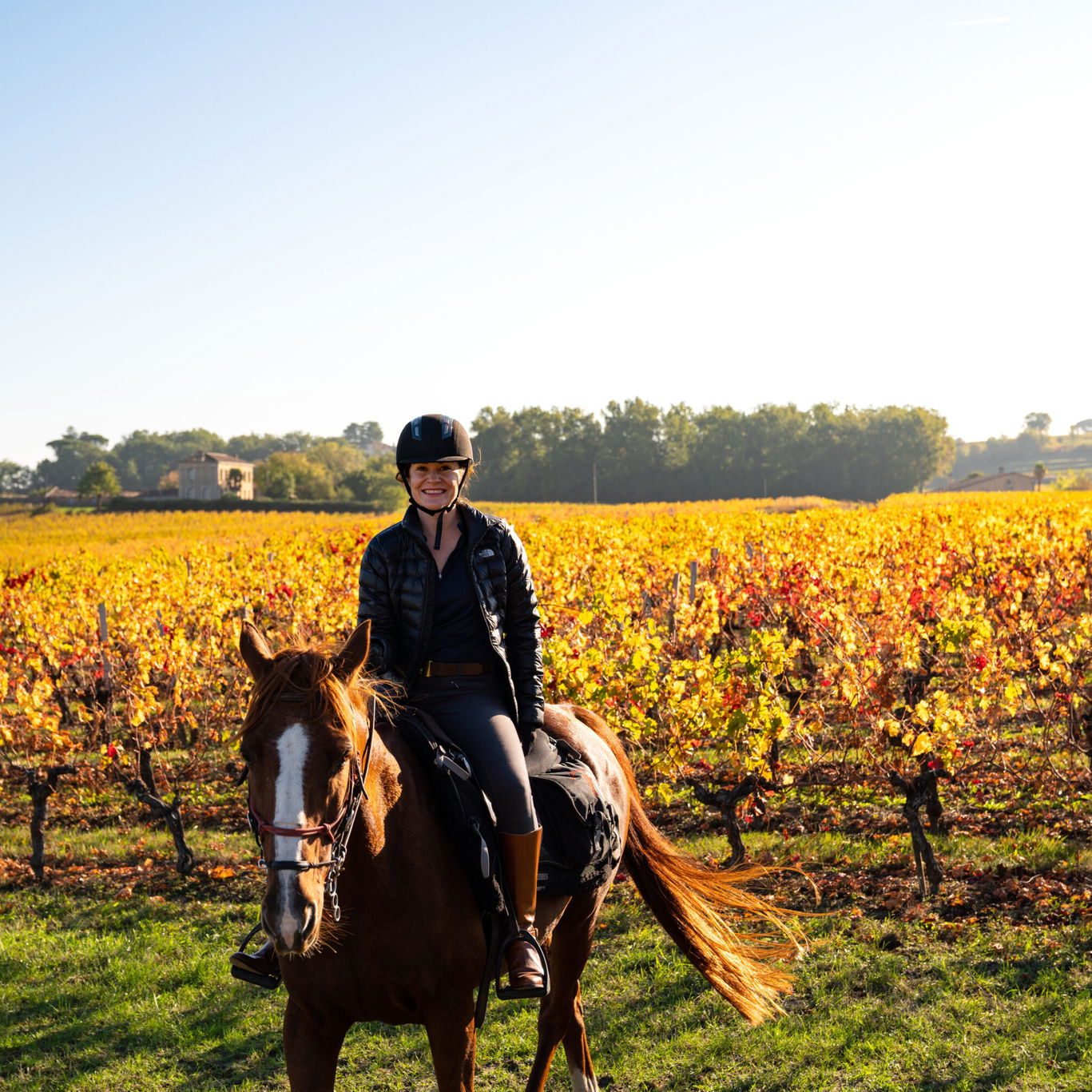 4 to 5 hours in the saddleThis morning, the horses (and riders!) get a break as you explore the town of Saint-Émilion on foot. A city steeped in history, perched on a rocky promontory, Saint- Émilion and its wines both draw their originality from the limestone at their feet. Many towns in Bordeaux were constructed from limestone mined underground at Saint-Émilion in centuries past. This is evidenced by 200 kilometres of underground galleries, some of which can still be explored today. Many wineries even use these spaces as cellars.