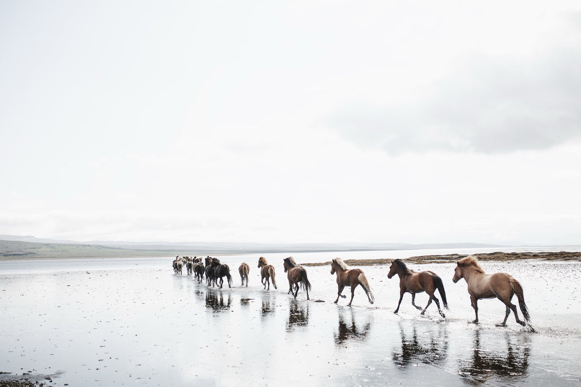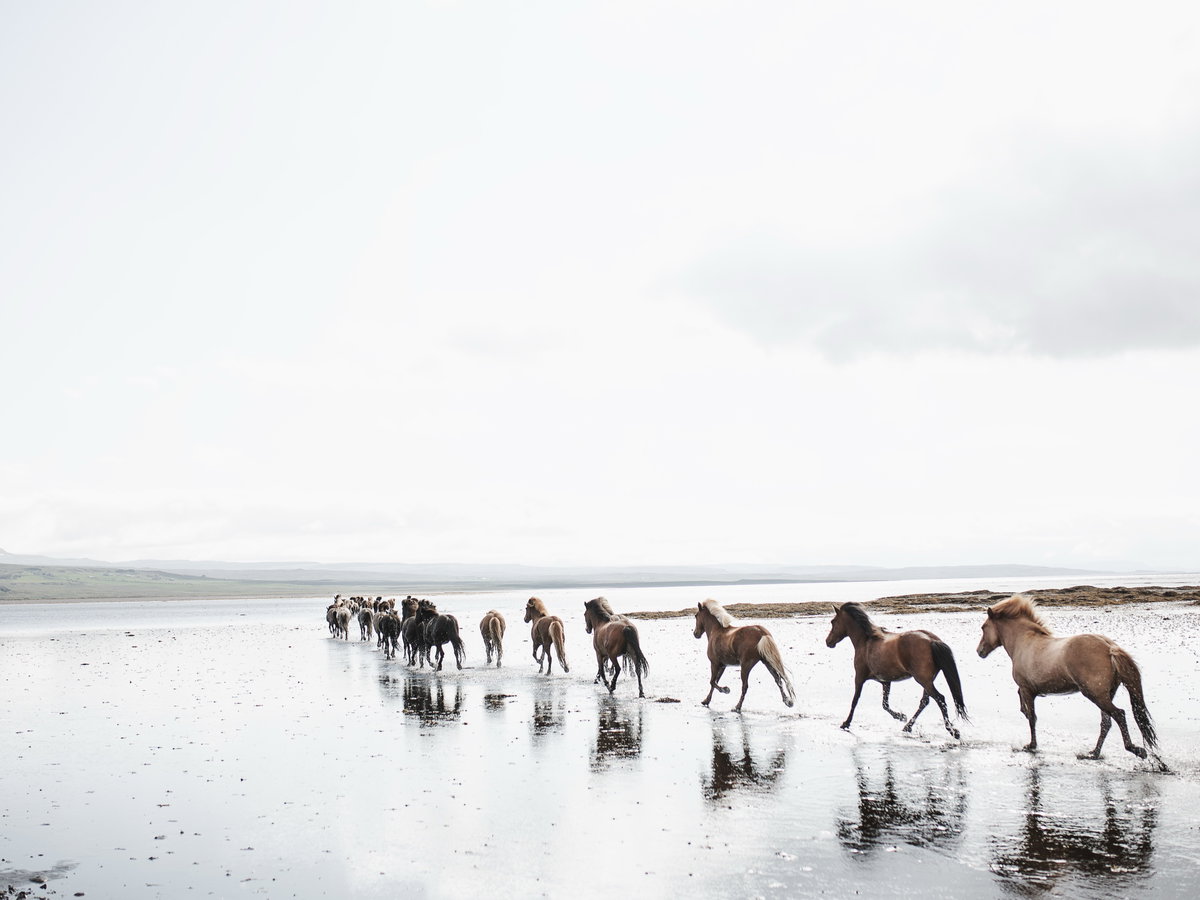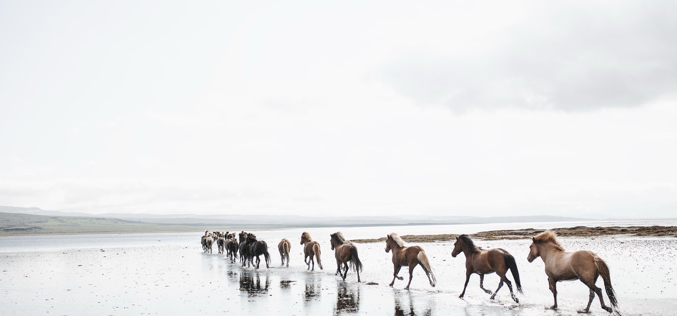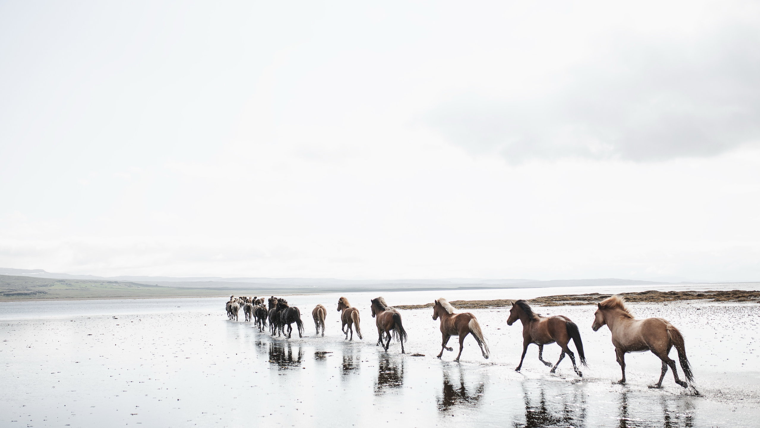 - Tölting alongside a herd of free-running Icelandic horses across lava fields, lupin valleys, rivers and vast highland wilderness
