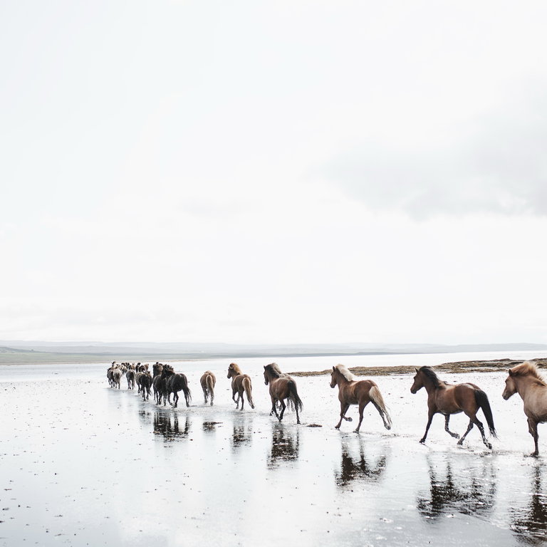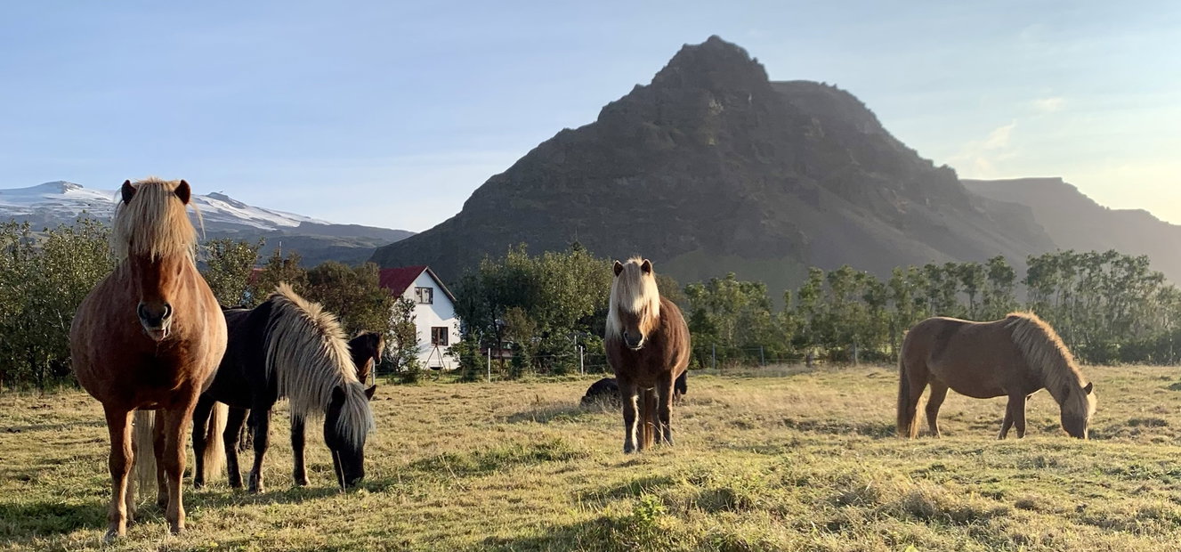 3 hours in the saddleAfter a delicious breakfast, you’ll check out of Umi Hotel and take a transfer to your hosts’ family farm, Mid-Grund, to meet their beautiful herd of Icelandic horses. Once you’ve been paired with your horse for the day, your guides will take you for a ride down towards the dramatic Black Beach, leaving the herd behind so that you can get a feel for the famous tölt – the smooth, floating gait unique to Icelandic horses, with guidance from your hosts to get everyone gliding happily along.
