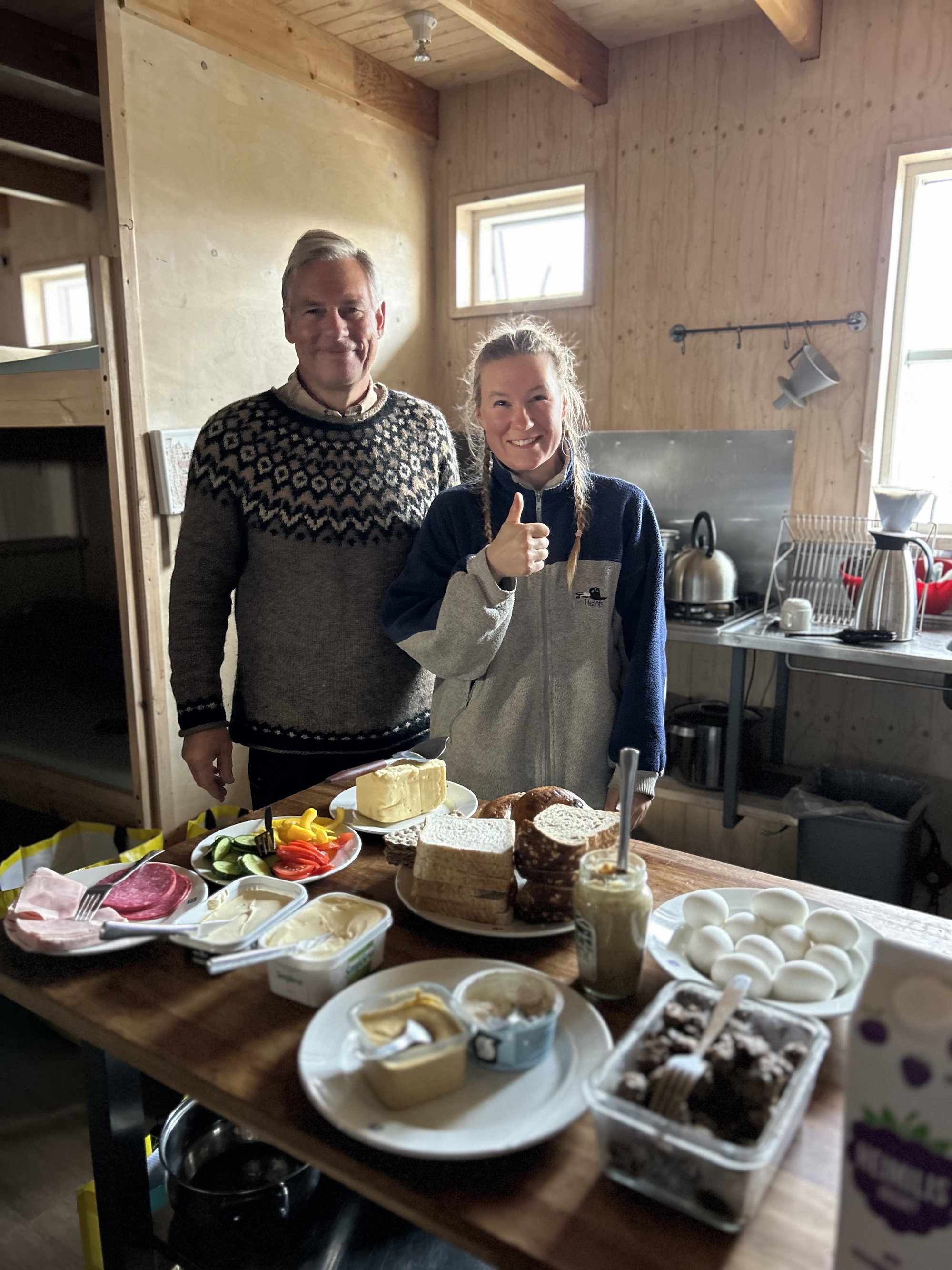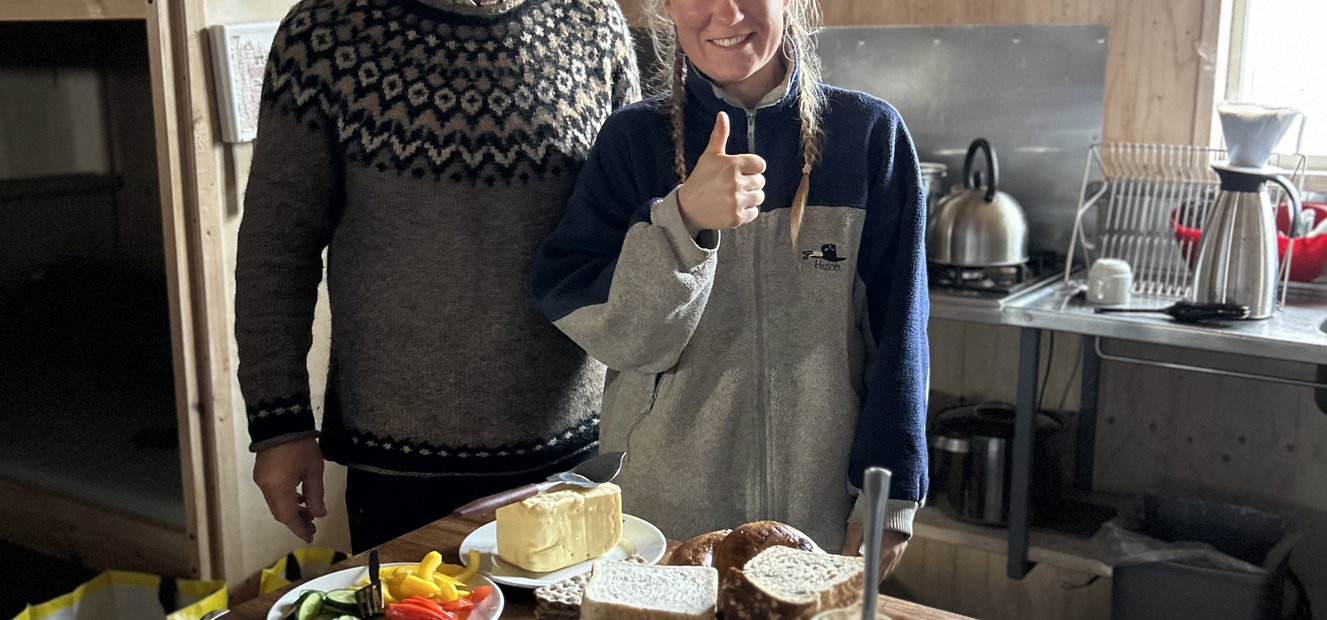 Meals on the trail are hearty, warming and thoughtfully prepared, starting each day with generous breakfasts of fresh breads, spreads, eggs, yoghurt and traditional skyr. Lunches often come as comforting soups or stews warmed in the back of the trailer in the mountains (perfect after long, windy rides), while evenings showcase local flavours, including lamb from neighbouring farms, homegrown potatoes and freshly pan-fried fish. Vegetarian and vegan options are made from scratch with fresh, wholesome ingredients. The journey finishes with a relaxed barbecue celebration together in true Icelandic style. Below are food images from the first night's accommodation at Umi Hotel.