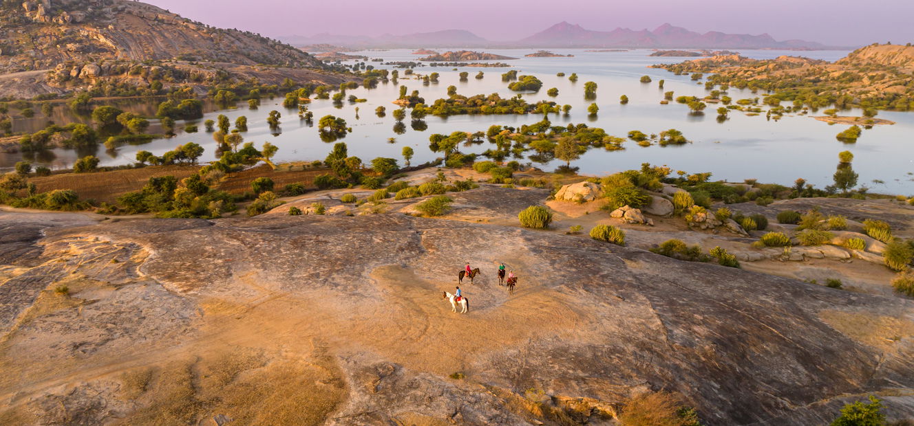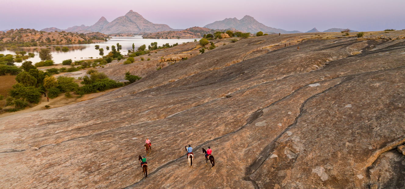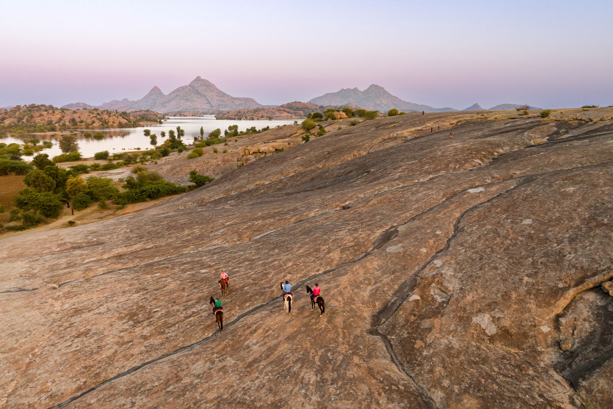 4 to 6 hours in the saddleBegin your horse journey with a full day riding through villages and across the open plains of the Aravalli Hills, stopping for a relaxed picnic lunch before reaching your lakeside camp at Dantiwara.