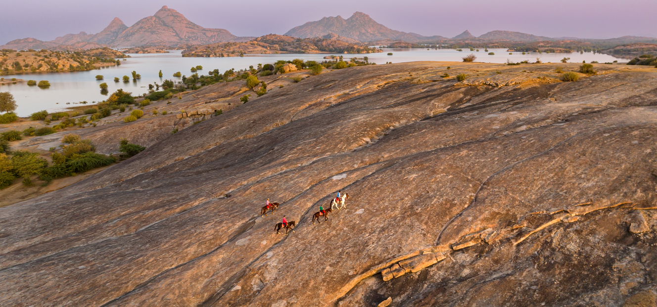 4 hours in the saddleAn early start offers the chance to spot leopards before breakfast, followed by a ride onward to wild Jawai Bandh, a dramatic landscape of granite outcrops, scrub and winding sand riverbeds. In the late afternoon and evening, head out by jeep in search of leopards among the rocks.
