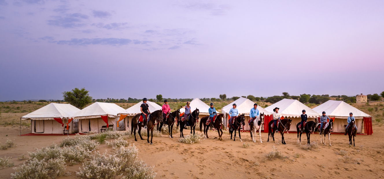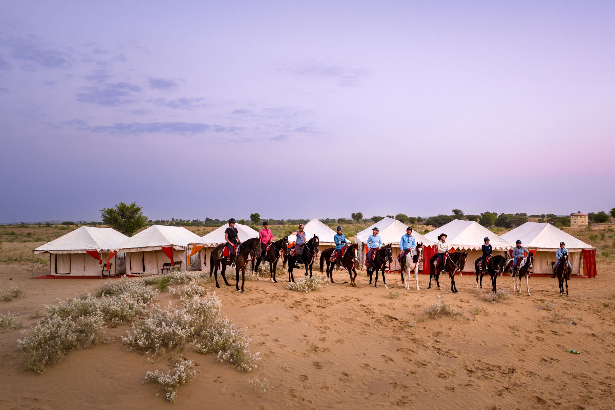 2 hours in the saddleA short road transfer brings you to your desert tented camp at Mathania, where you’ll meet your Marwari horses and settle in. After lunch in camp, enjoy a relaxed afternoon trial ride to begin building your partnership with your horse and get a feel for the desert terrain.