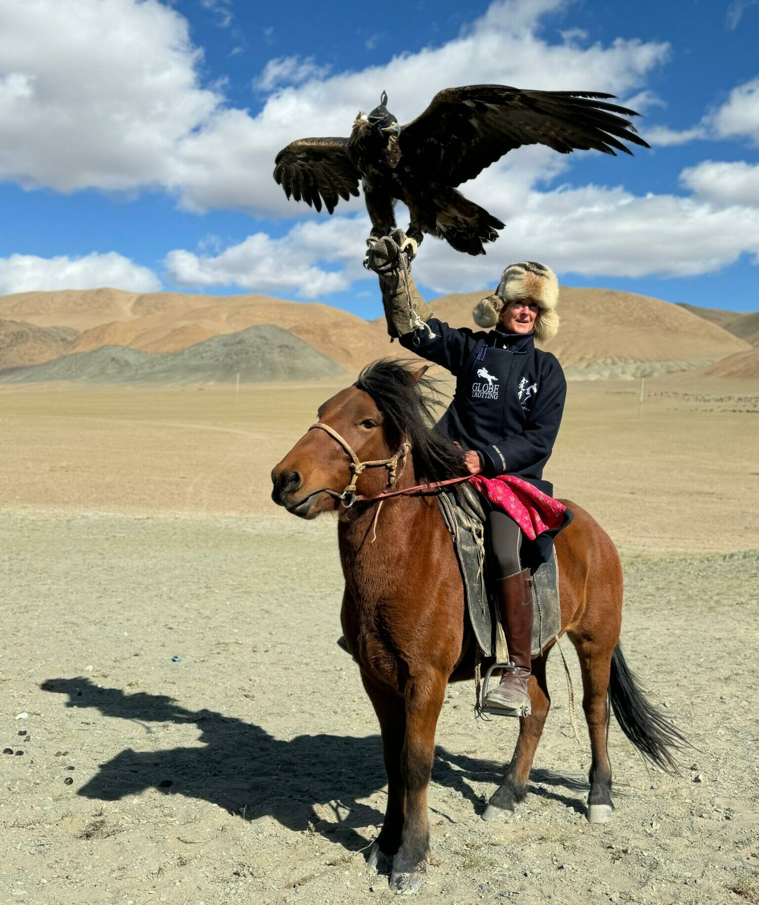 New for 2026 is a summer edition of our incredible horse trek, boasting a warmer climate, horses and riders in summer coats, summer pastures under hoof and even some pleasurable wild swims in the lakes we will camp by at night on multiple riding days during the trek. If you feel the cold and this has been a hesitation factor for you in booking this iconic adventure, this edition could present a perfect solution. At the end of the riding adventure, you will have the unique and intimate experience of being hosted by a local eagle hunting family and getting up close and personal with their hunting birds and horses. You will be visiting before the eagle hunting season starts, and before the festivals showcasing those skills take place, but the birds will be in training and in residence, and you’ll have a wonderful opportunity to spend quality time with one of only 60 or so families who preserve and practice this ancient way of life left in Mongolia.