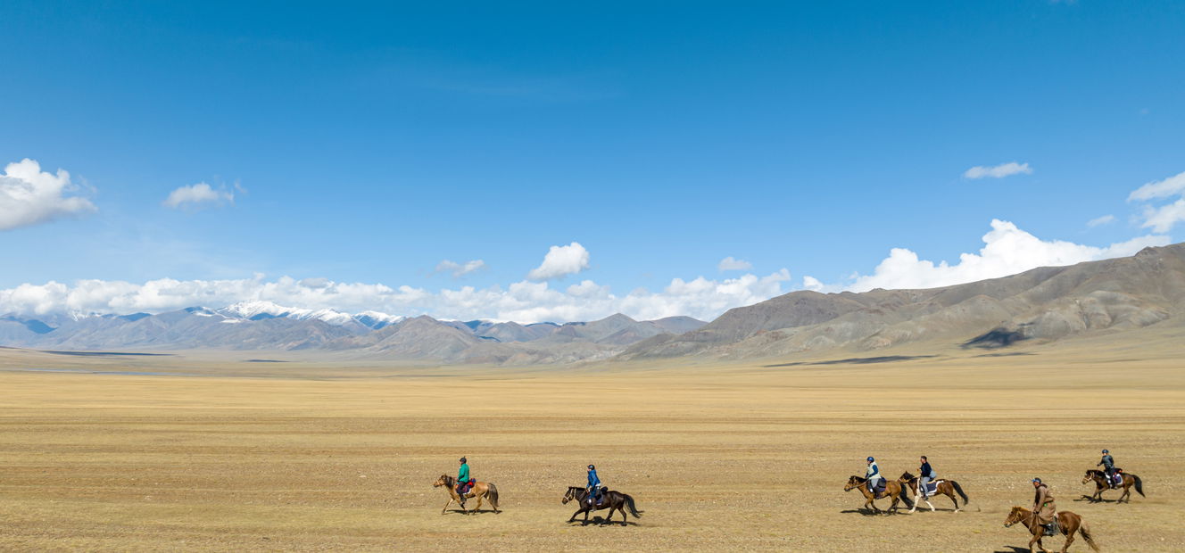 4 to 8 hours in the saddleThe following seven days will be spent travelling deep into the wilderness of Uvs Province, crossing the incredibly varied, heartachingly beautiful landscapes of the steppe. Savour the chance to switch your phone to flight mode and live in the present moment, globetrotters, because we will be totally, blissfully off-grid. We’ll slip into a daily routine of enjoying breakfast at camp, jumping on our horses, riding all day with stops to enjoy lunch and take in the sights, and finally arriving at our campsite for dinner, fireside stories and perhaps a dip in the river.