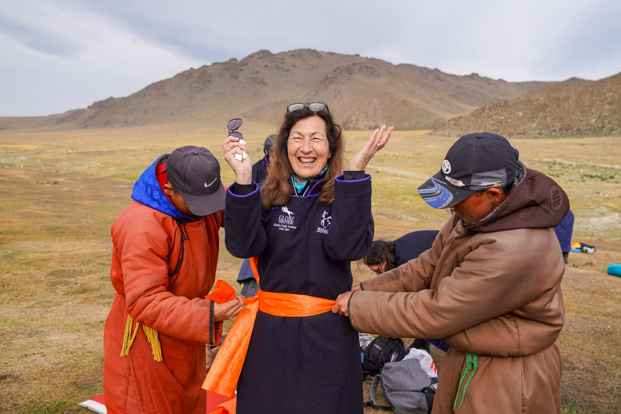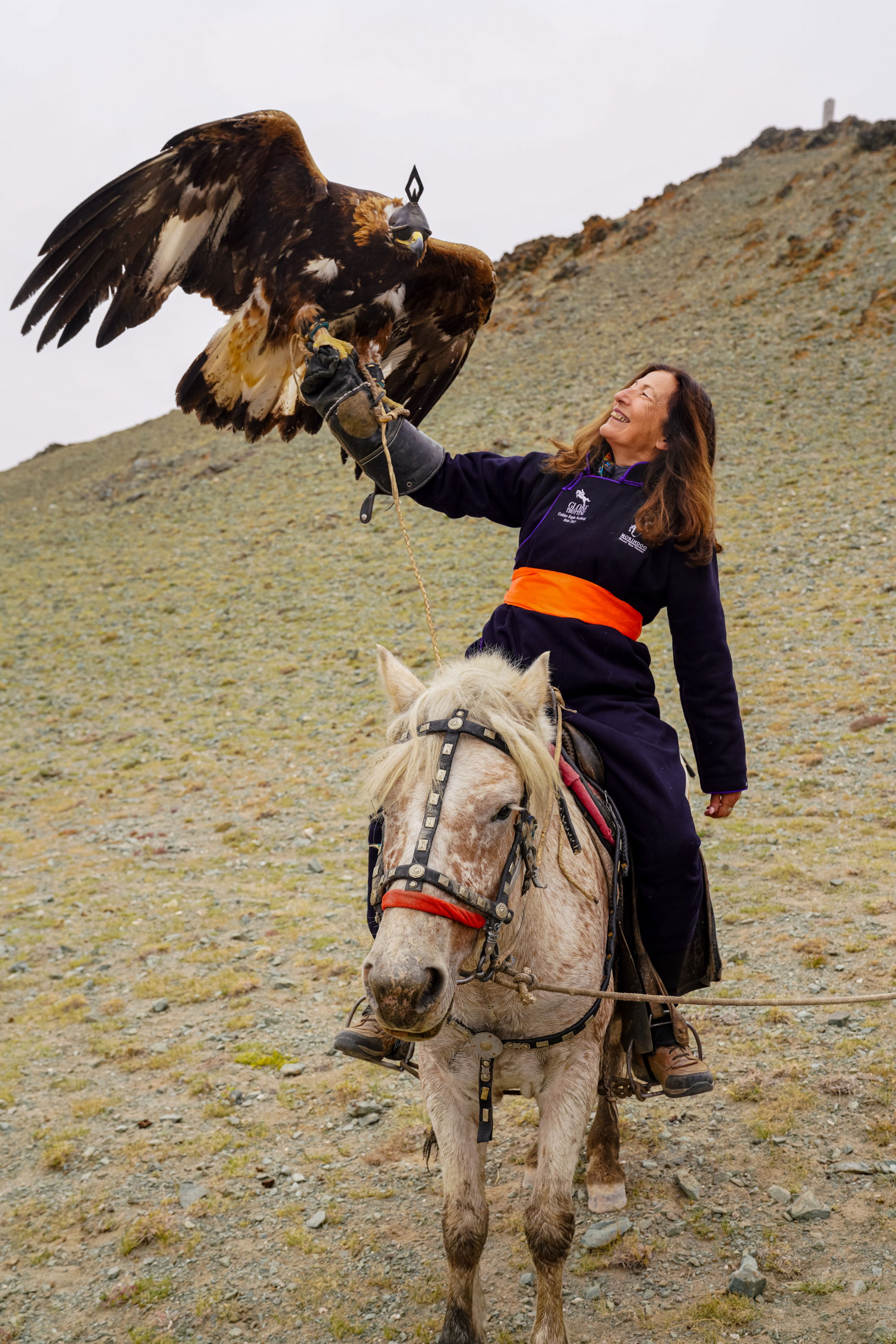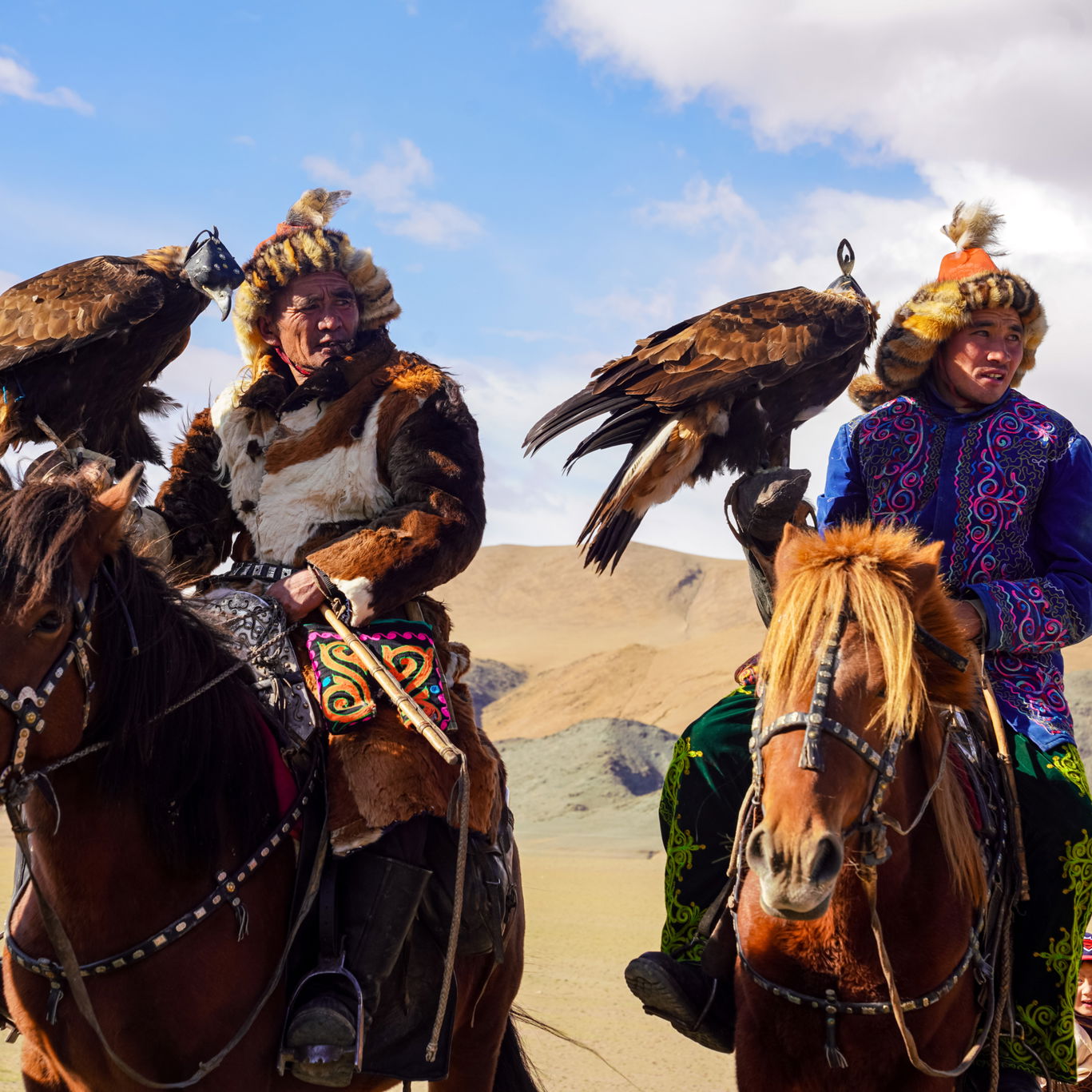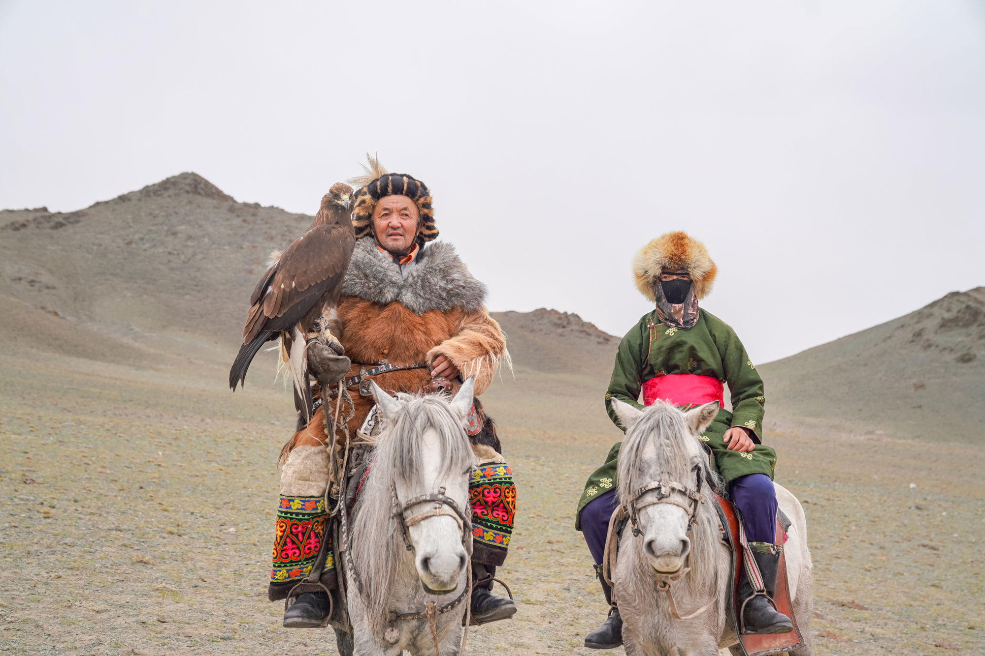 Non-riding dayAfter breakfast at our ger camp, we’ll be transferred the remaining 40 kilometres to Ulaankhus, where the beautiful family who is hosting us for the Eagle Festival awaits our arrival. These are some of the last remaining Eagle Hunters in Mongolia, and we’ll have the immense privilege of riding into the festival with them. The whole afternoon will be spent lapping up the magic of the Games, with eagles soaring overhead and Mongol horses and riders thundering every which way across the plains. As dusk falls, our hosts will bring us to their riverside ger, where we’ll share stories together over a hearty dinner (and likely a few nips of vodka!) before resting up for another big day with the Eagle Hunters.