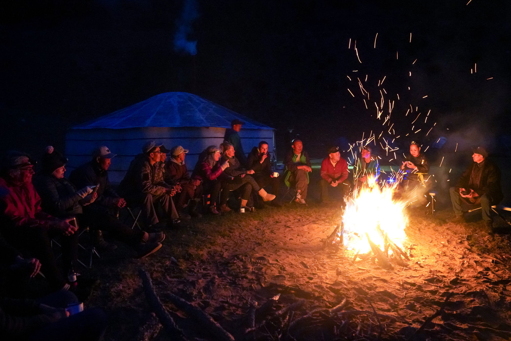 Optional riding dayThis morning there’s the option to ride or take a transfer to the site of the Games, where we’ll spend the whole day witnessing this rarest and most remarkable of events. Participation isn’t mandatory, but it’s definitely encouraged and will score you massive brownie points! You could try your hand at the whipping game, camel racing, or tug of war, or simply sit back with a glass of airag (fermented mares’ milk) and soak it all in. At last the time will come to give thanks to our hosts, wave goodbye to the Eagle Hunters and head back to our ger camp in Olgii. And yes, we can even have another shower! Talk about being spoilt. Then, bellies full, we’ll retire to our cosy gers, where the crackle of the fire will lull us into a deep sleep.