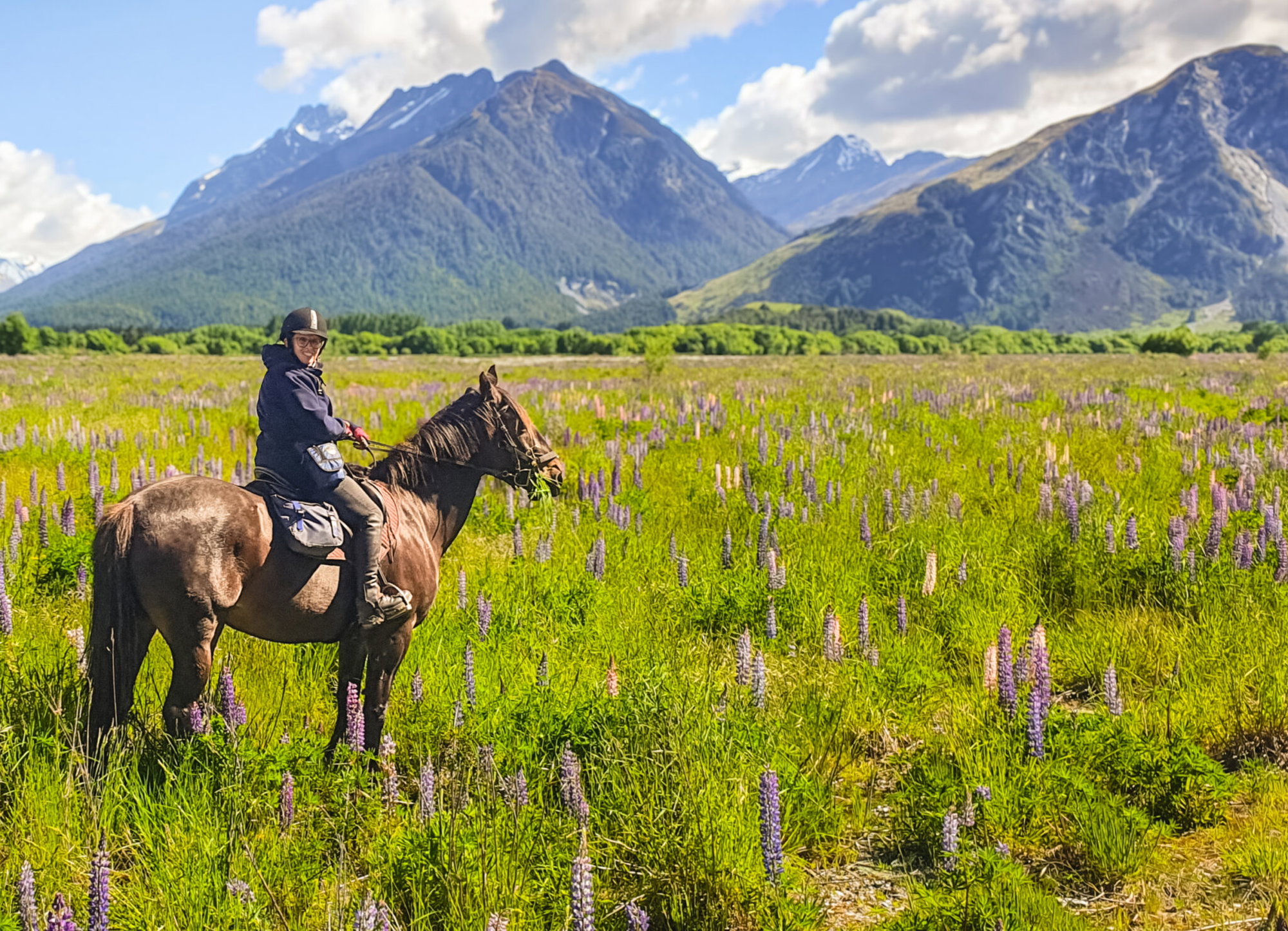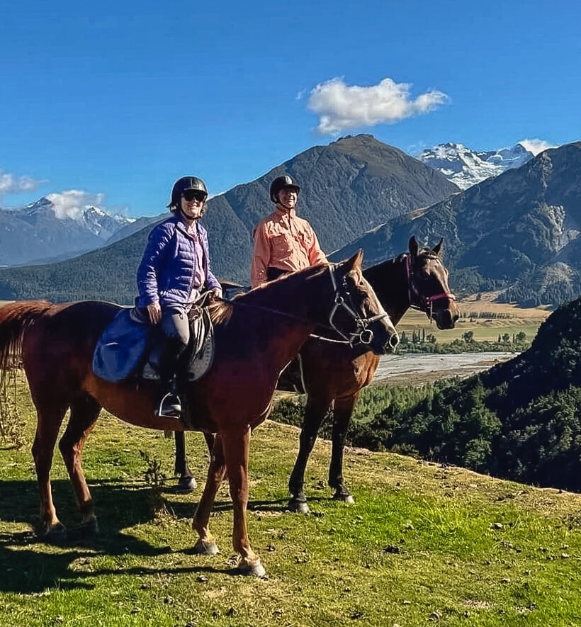 5 hours in the saddleOn the final day of your riding holiday, you’ll venture through the mouth of Lake Diamond and ascend the southern side of Mount Alfred. At the top of the track, you’ll be able to take a moment and contemplate where and what you have just experienced over the last few days. As far as the eye can see – and further – is where you have travelled astride your surefooted station horse. Finally, you’ll creep down the mountain and back onto your hosts’ farm to finish the trip with a welcome hot drink or cold beverage.*Depending on the weather, you might instead venture into the Dart Valley today – the views and scenery are equally rewarding.