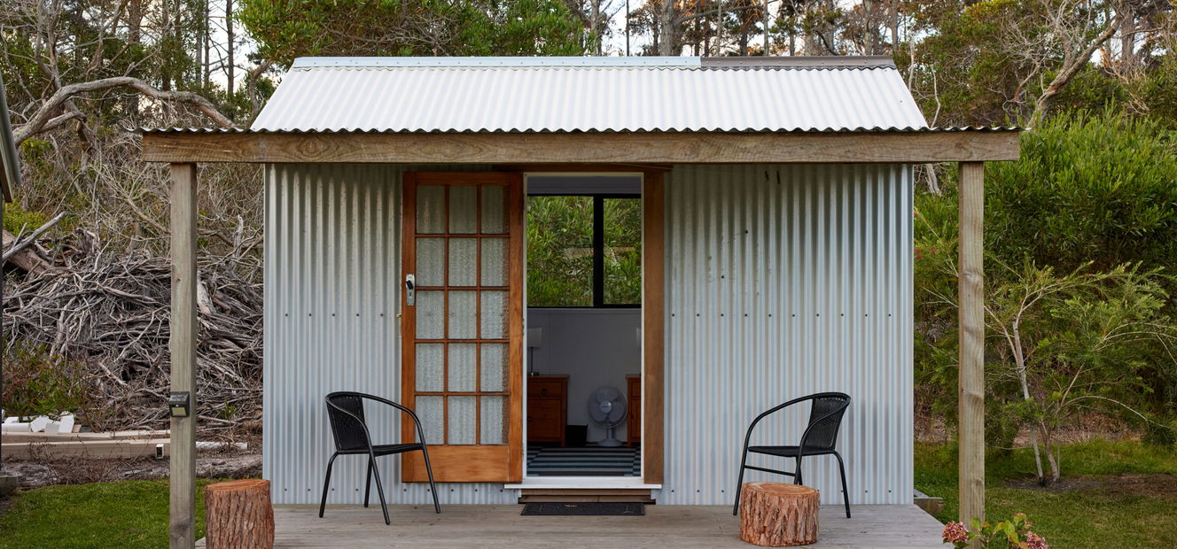 Simple yet comfortable twin share cabins, each with two single beds. All bedding, linen and towels are provided. Shared bathroom facilities are a short walk from the cabins. There is an indoor common area with lounges and a dining table.