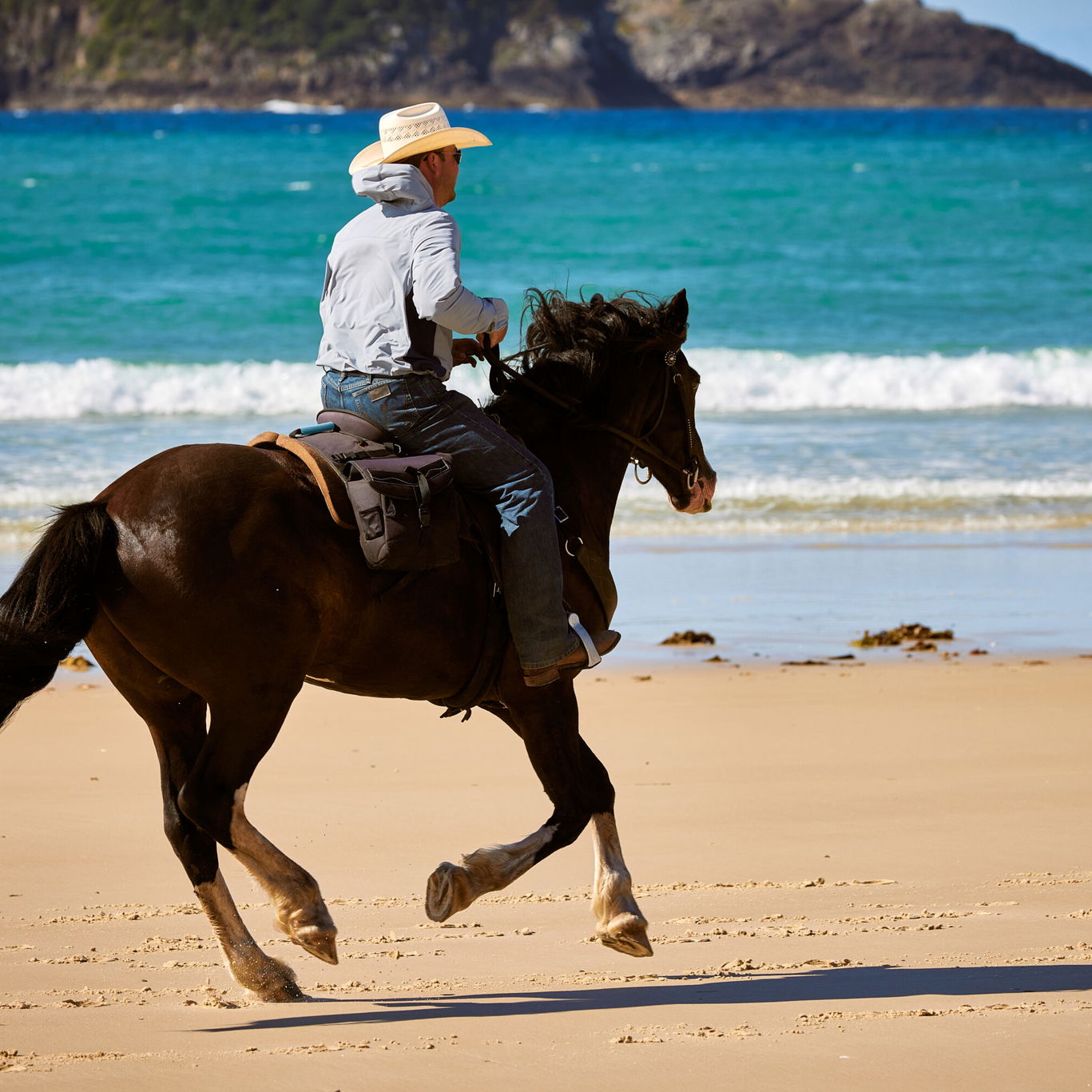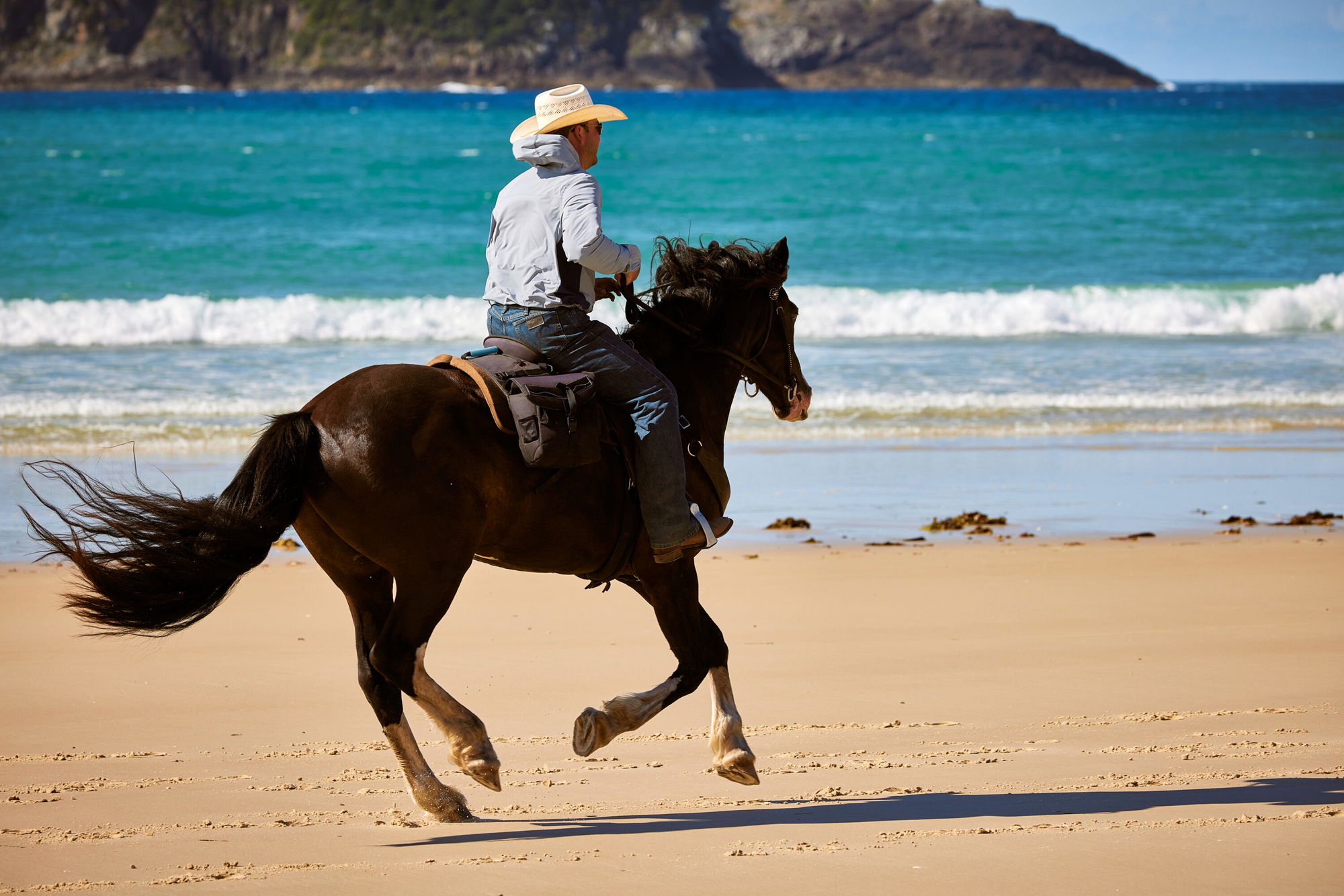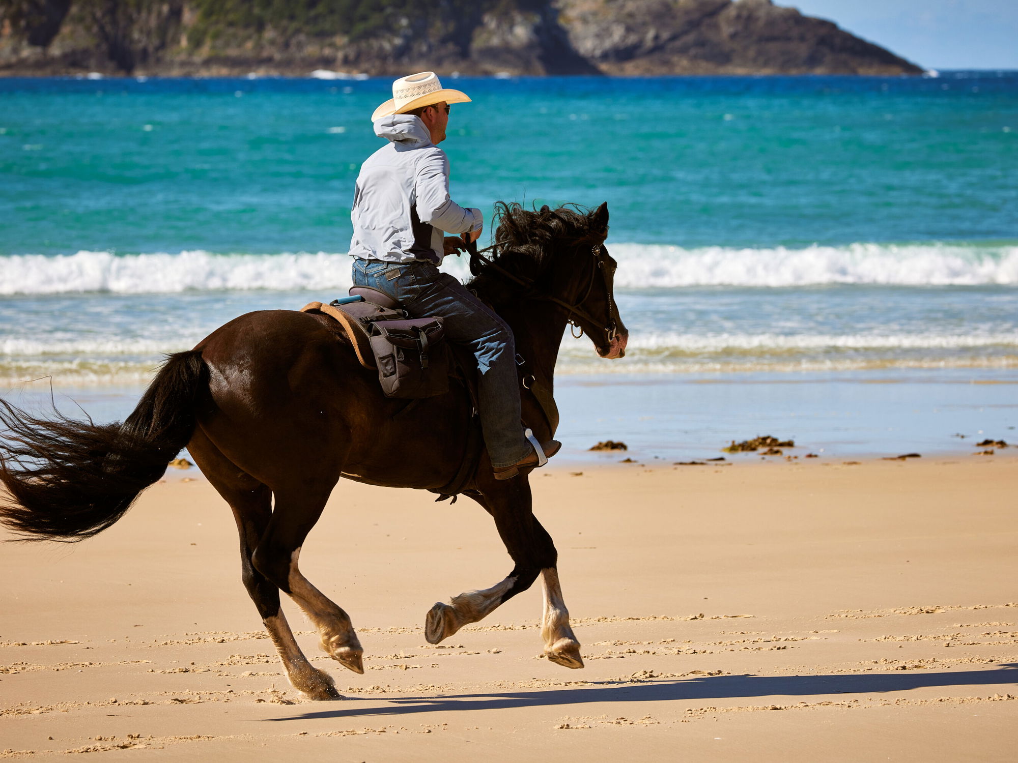 Twin Coast Adventure: The pace varies from a walk right through to a canter when the terrain allows, with some long stretches of trotting and cantering along the coast.