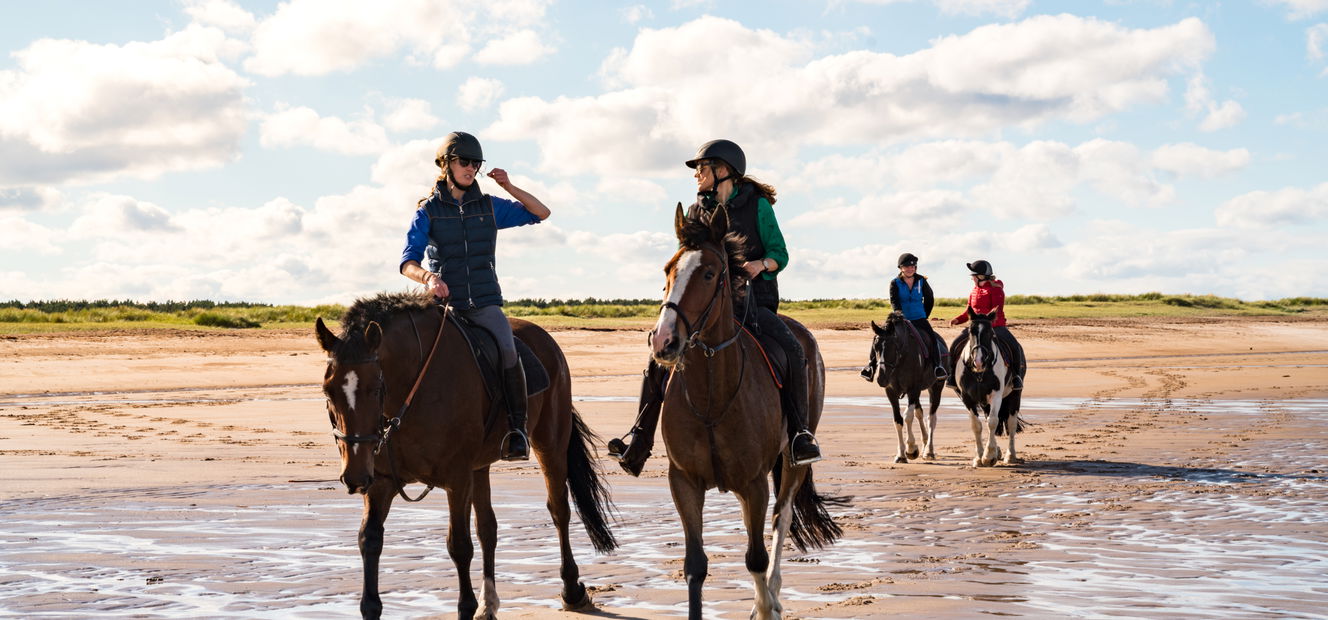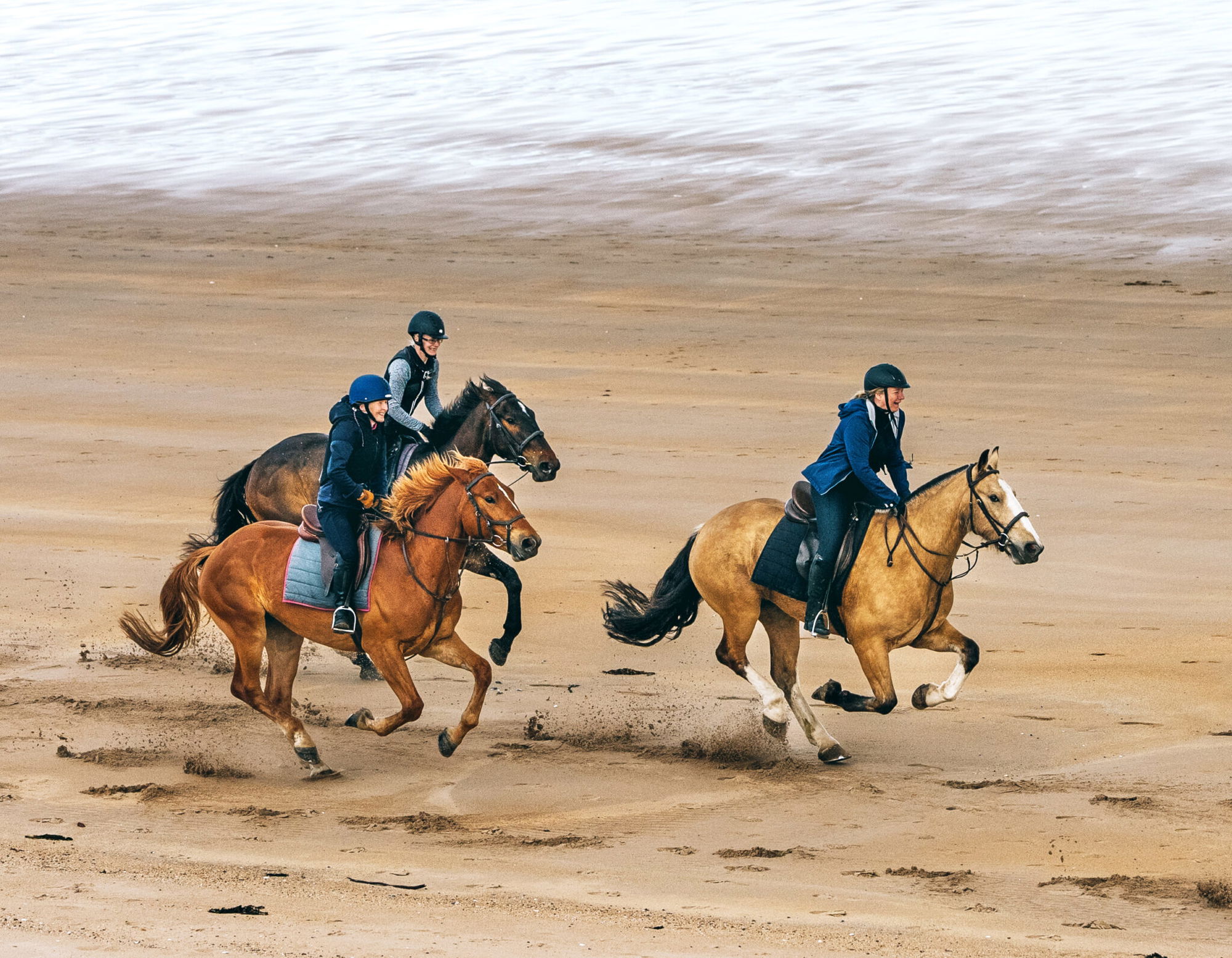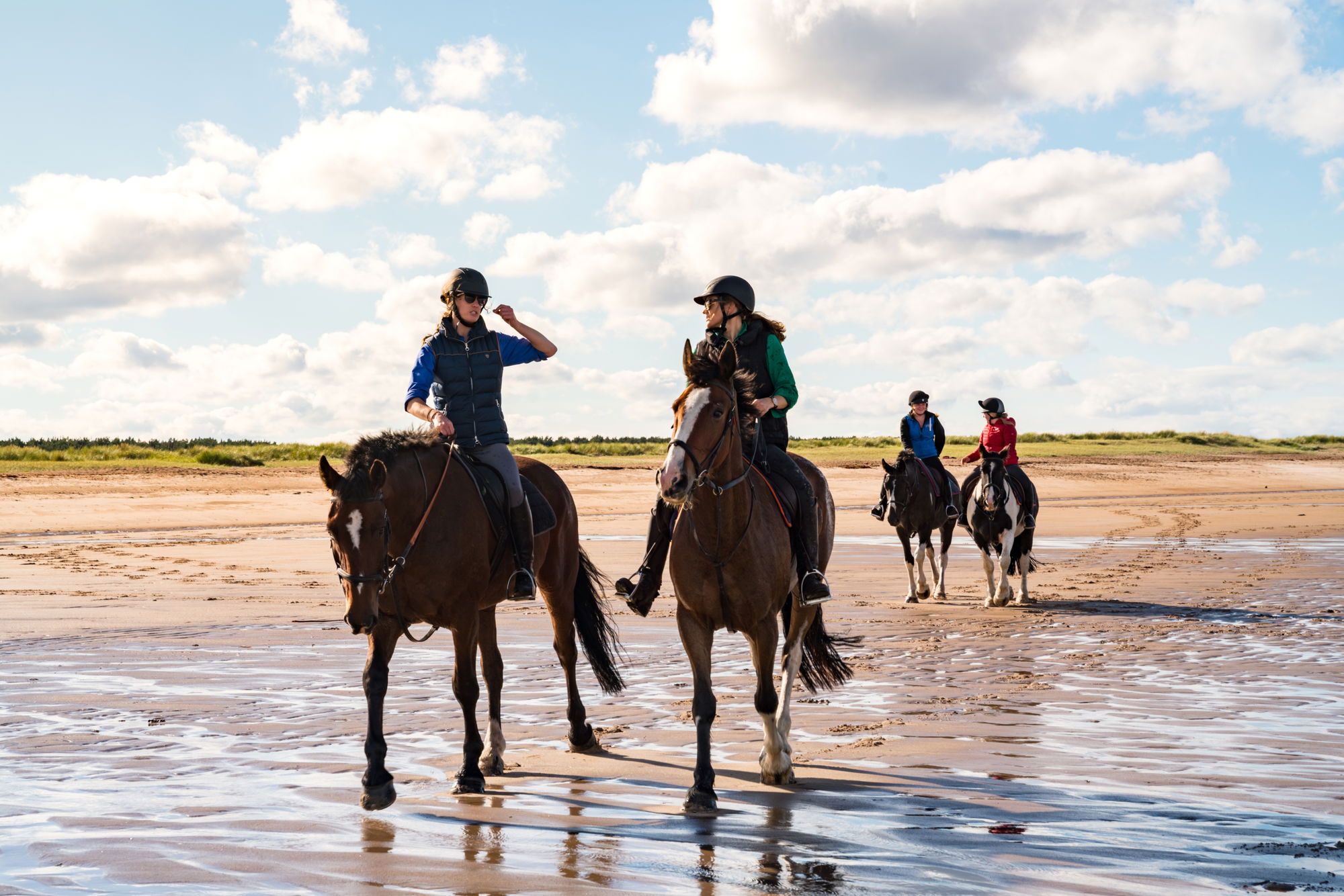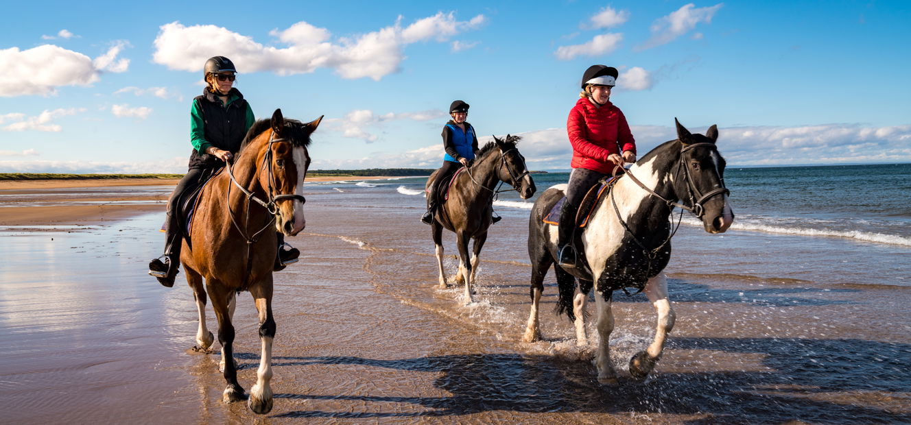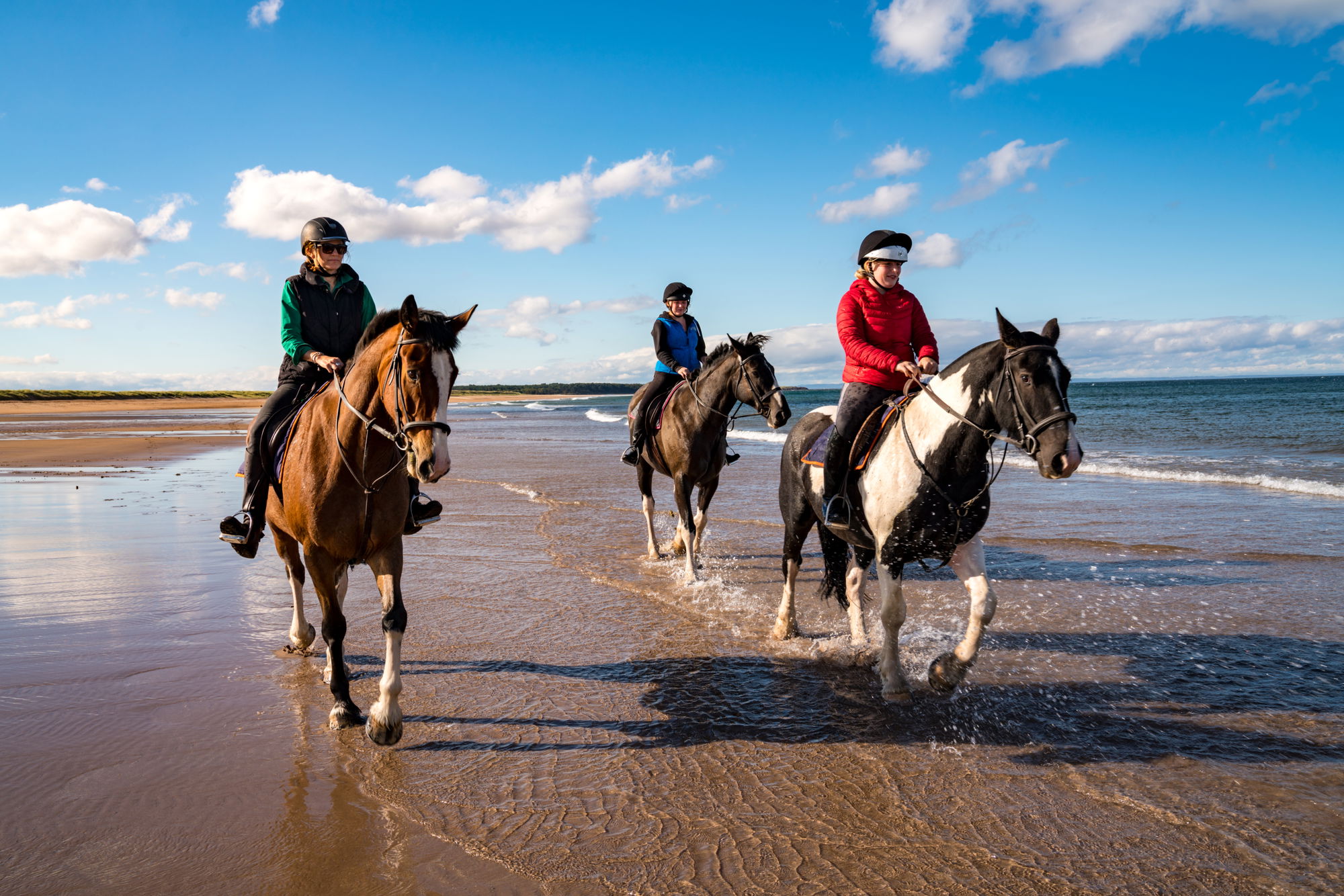 3 to 4 hours in the saddleAfter yesterday’s exciting extravaganza, you’ll be able to enjoy a lie in and a late breakfast (around 9am), before jumping in your car and heading to the beach (about a 90 minute drive from Cringletie). That’s right, globetrotters, today you’ll get to explore part of the Scottish coastline from the back of your horse! Let’s hope the Scottish sun is shining, because John Muir Country Park is an unspoilt stretch of coastline where farmland kisses the sea, perfect for beach canters and wading in the shallows.