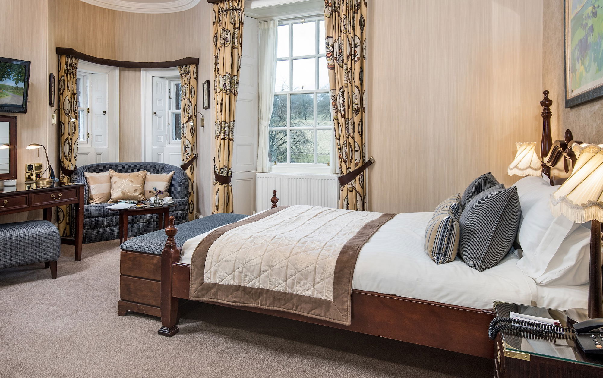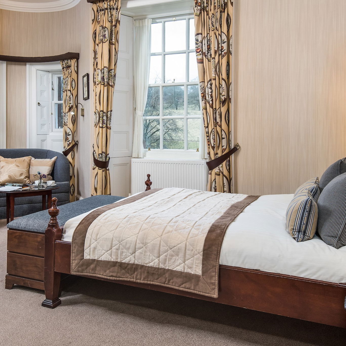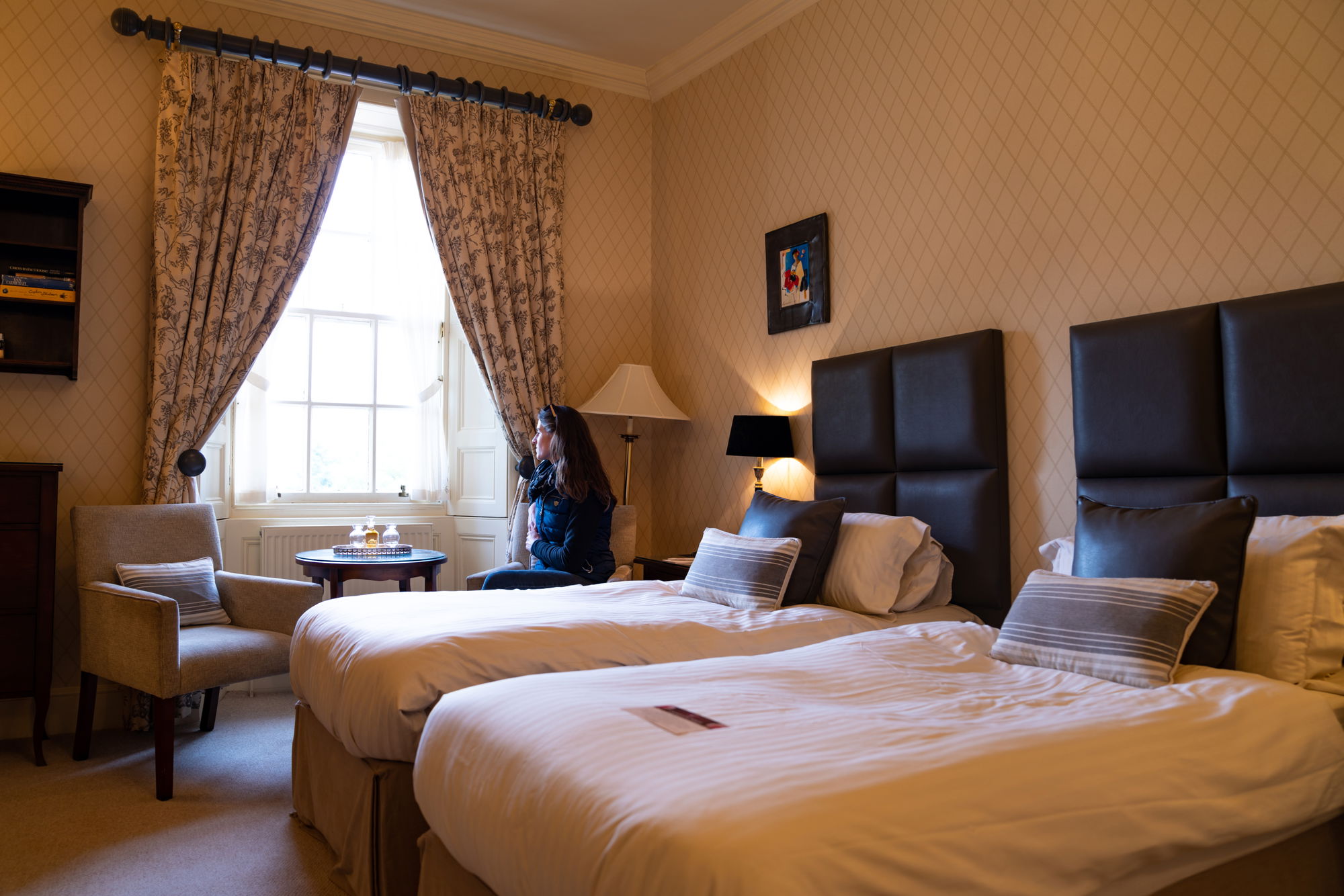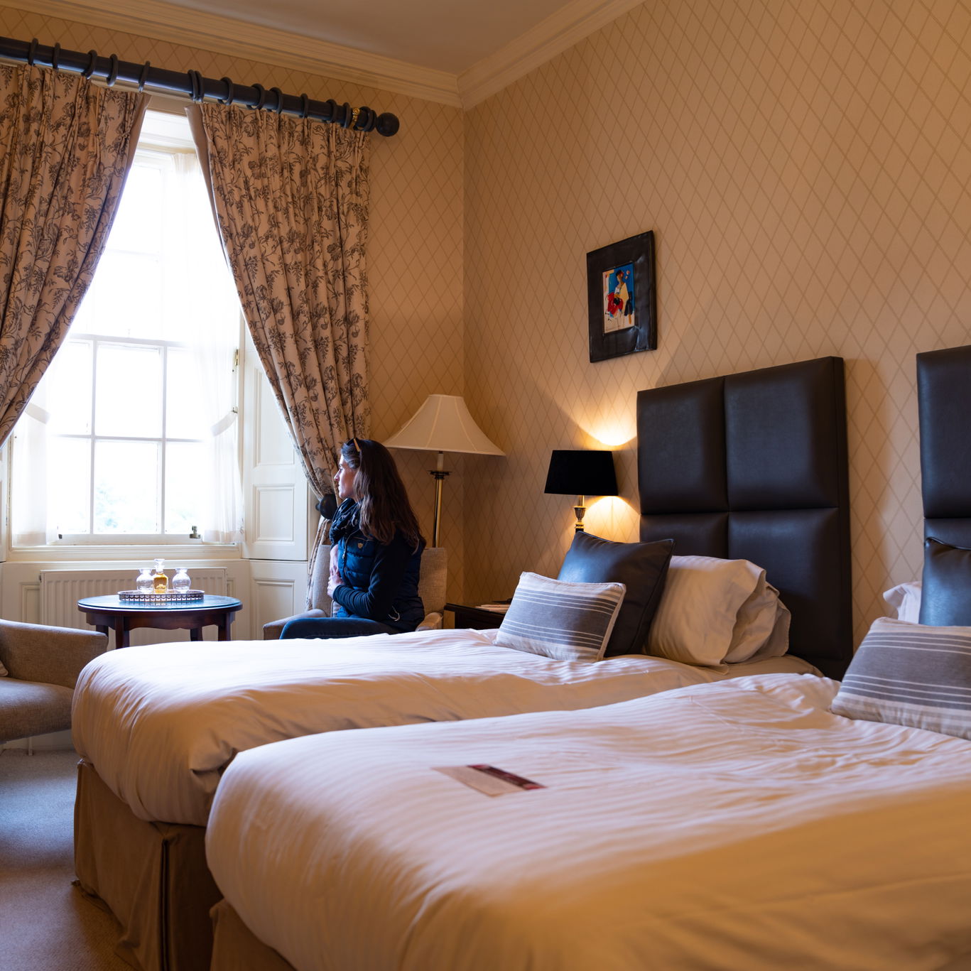 Twin share accommodation at Cringletie House Hotel, just outside the town of Peebles in the Scottish Borders. With its very distinct architecture, from romantic turrets to feature fireplaces, Cringletie’s guest rooms ooze comfort and character while being modern and elegant. All rooms have ensuite bathrooms.