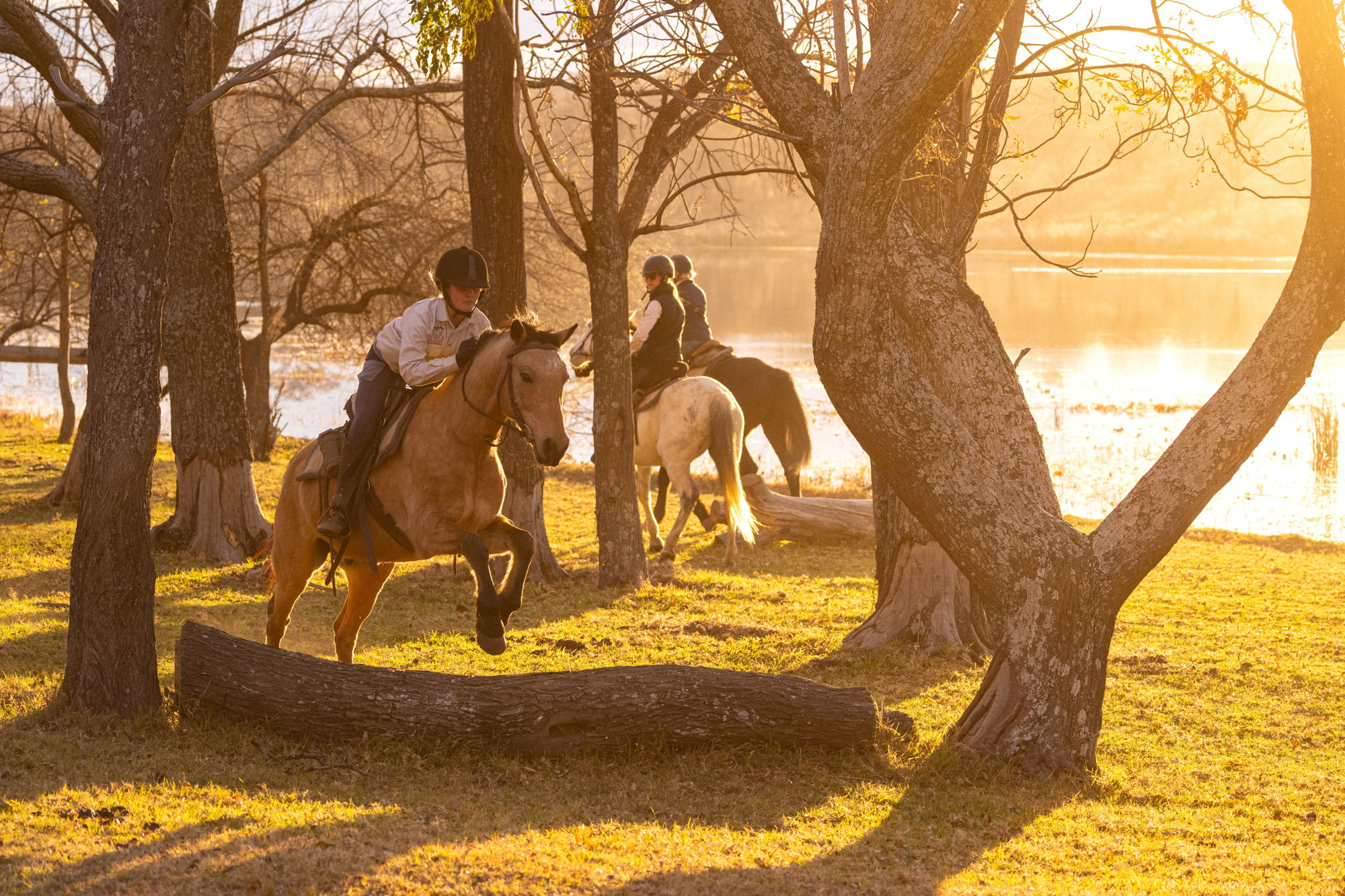1 to 2 hours in the saddle (if arrival time permits)You’ll be met at Johannesburg Airport by a representative of our ride partners in the morning, then enjoy a 2.5–3 hour transfer to your beautiful lakeside safari lodge. After a late lunch, you’ll meet your horse and saddle up for your very first South African safari ride – an exhilarating introduction to the Bushveld’s sweeping forests, grasslands and wetlands, all set on firm, sandy footing that’s perfect for riding.