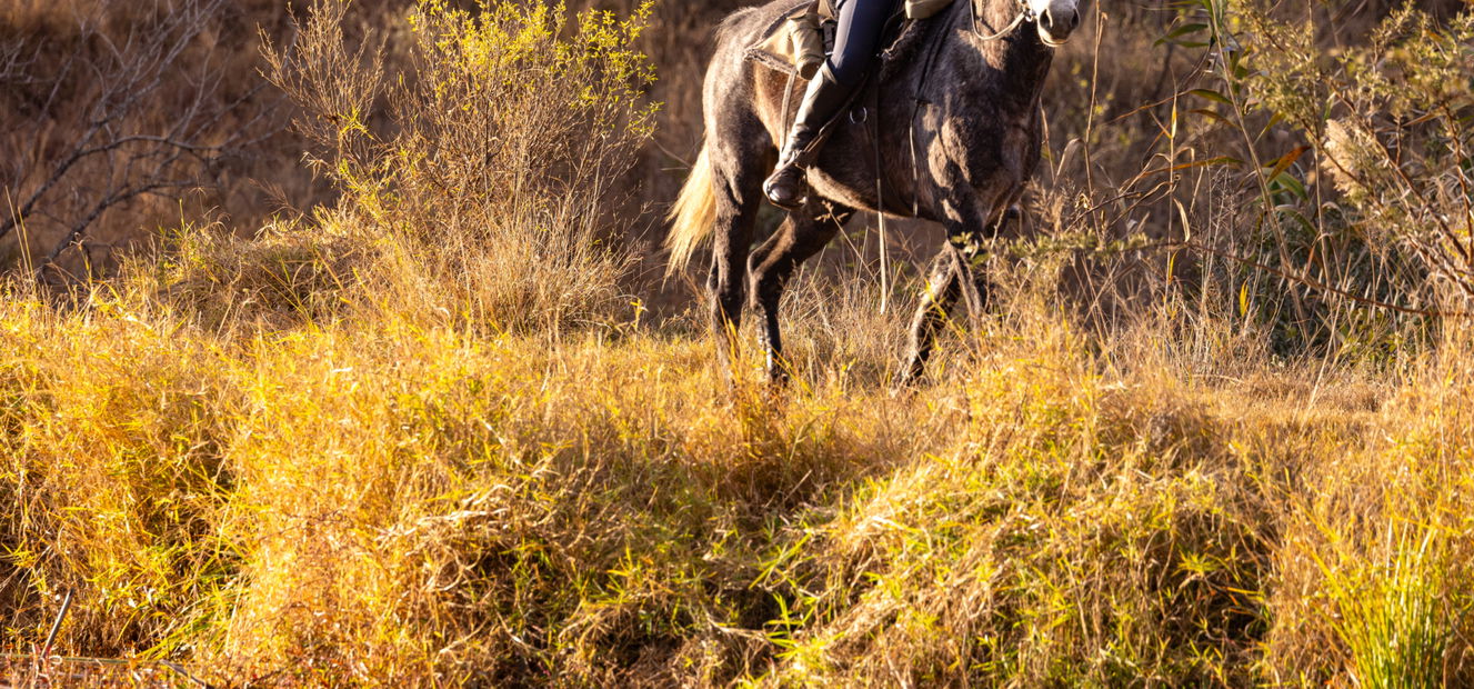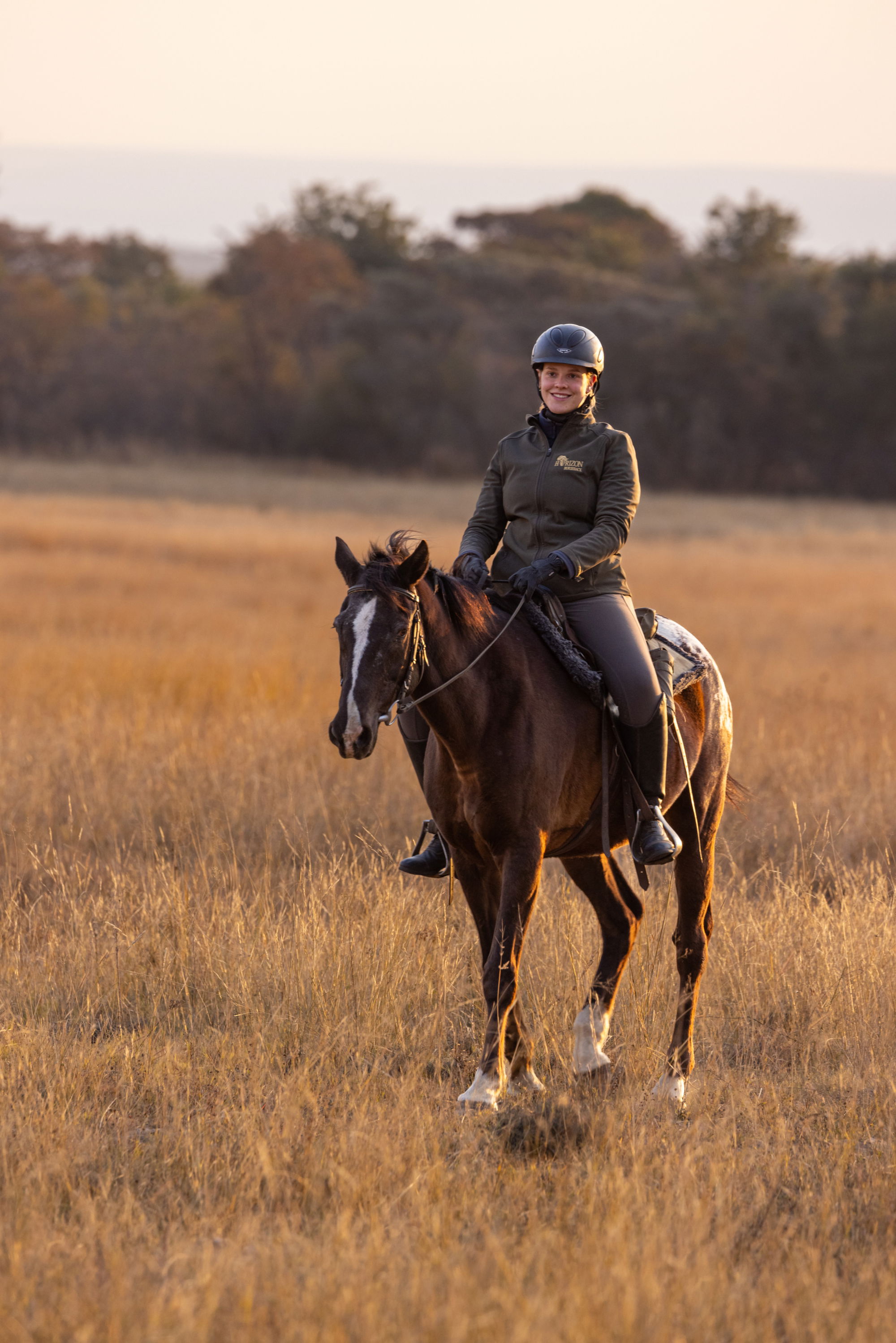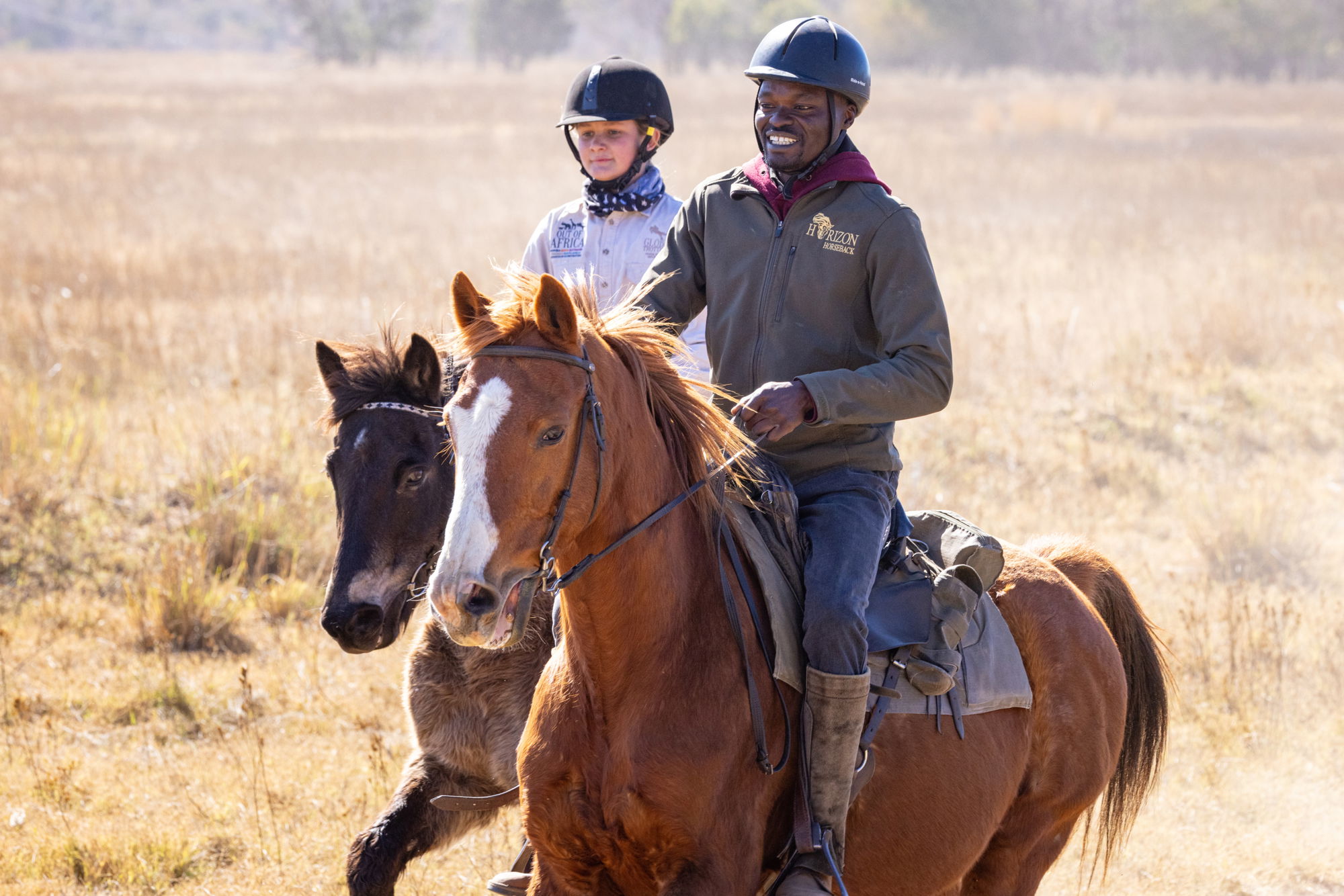 4 to 6 hours in the saddleThis morning’s ride takes you past a brown hyena den, around the upper reaches of the Horizon Dam, across a wide, grassy valley and through a dense woodland home to shy species such as kudu, bushbuck and vervet monkeys. Emerging from the woods, the horses can stretch their legs along open sandy tracks, and even pop over a few jumps if you’re so inclined. You’ll also have the chance to swim bareback in Horizon Dam!