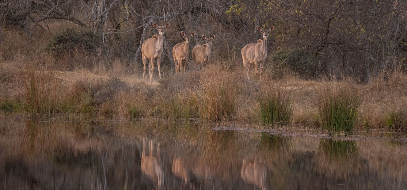 4 to 6 hours in the saddleAnother long and varied ride brings you back toward Signature Lodge via a totally different route. Today is a masterclass in ecosystems: nyala and bushbuck tucked in deep forest, blesbok on the plains, waterbuck hugging the streams, and reedbuck grazing in the wetlands. A magnificent wild fig tree is the setting for a bush breakfast cooked over an open fire, before a shady return to the lodge. A swim with your horse is the perfect finale to your morning. In the afternoon, it’s time for a game drive on a neighbouring reserve, where you’ll seek out Africa’s iconic Big Five.
