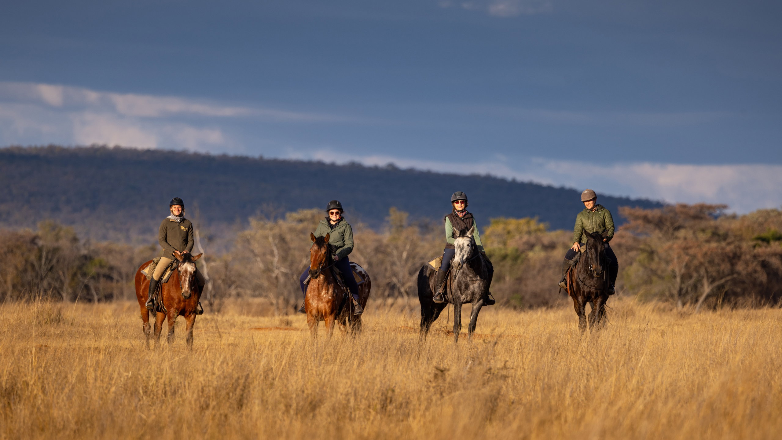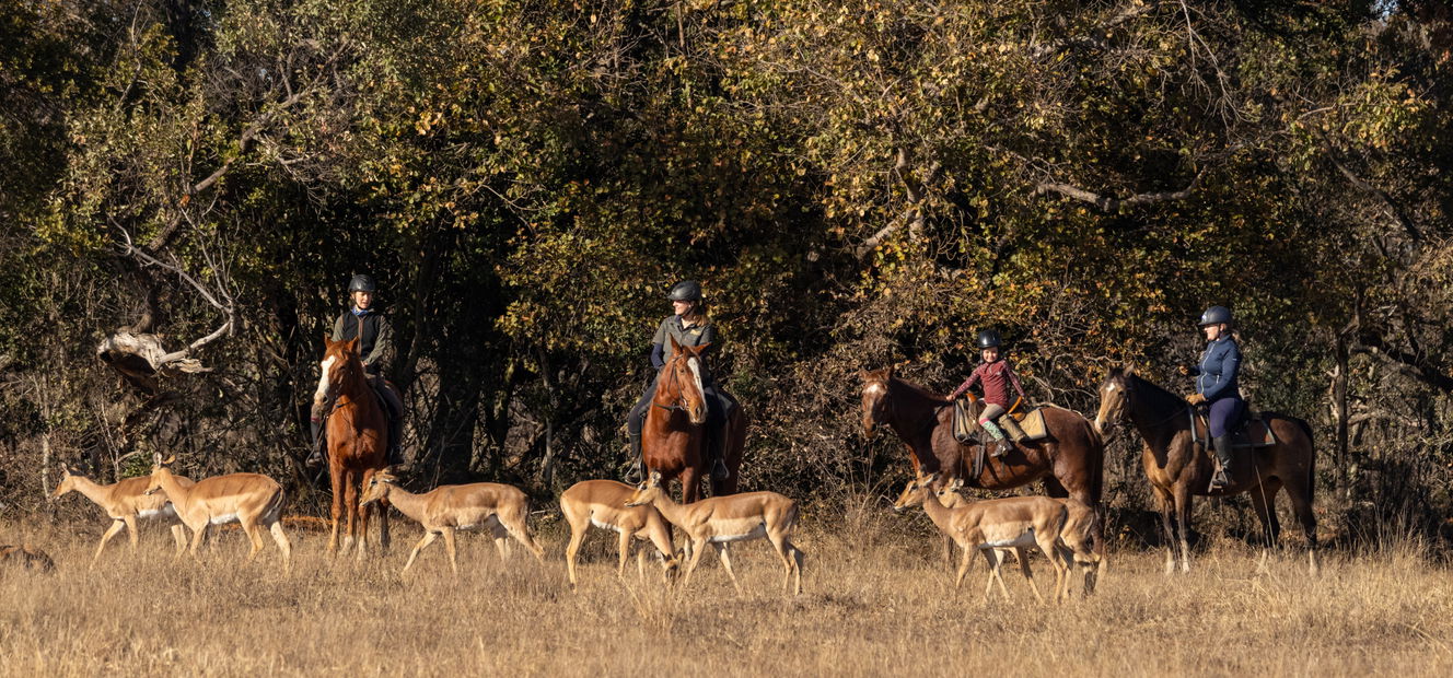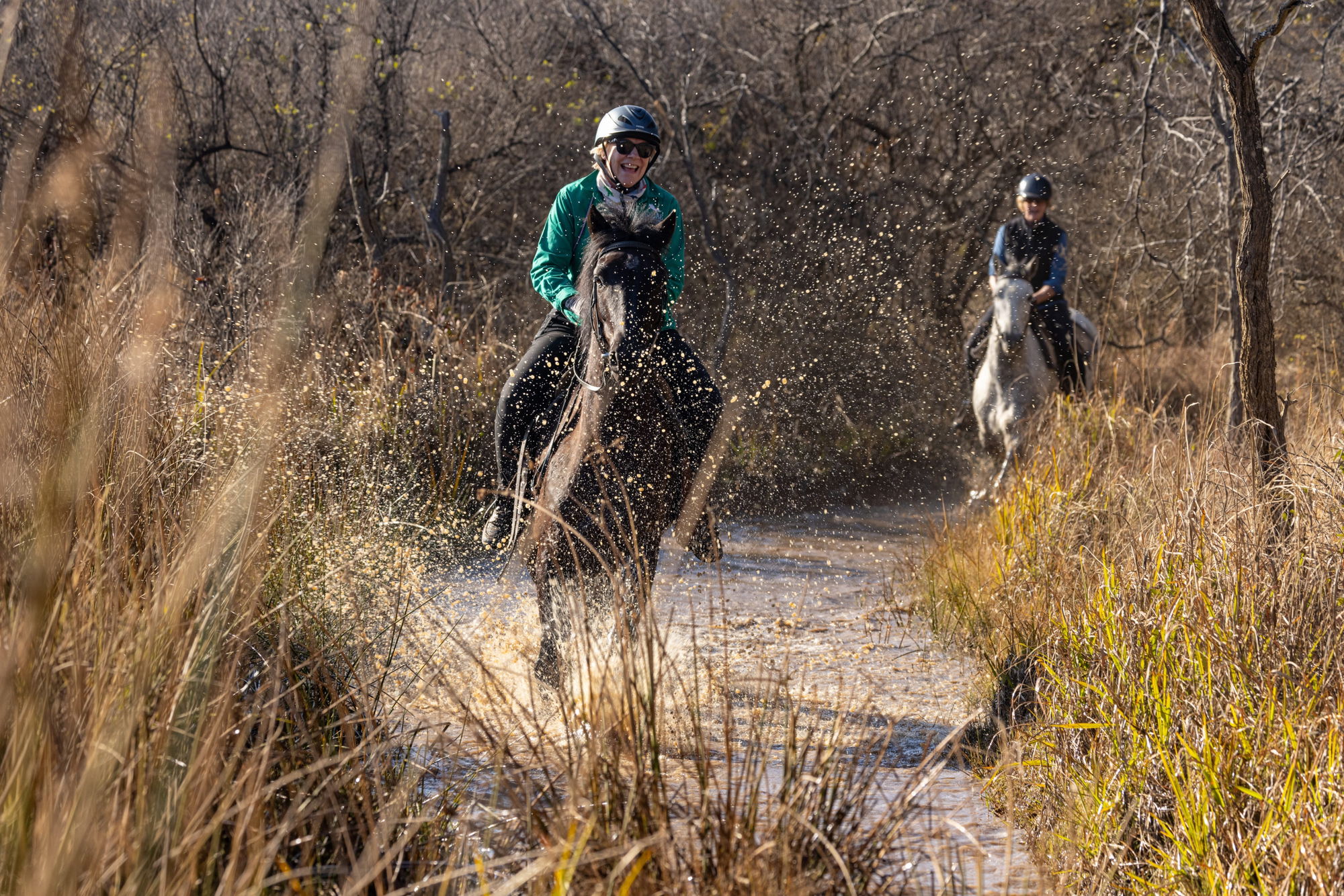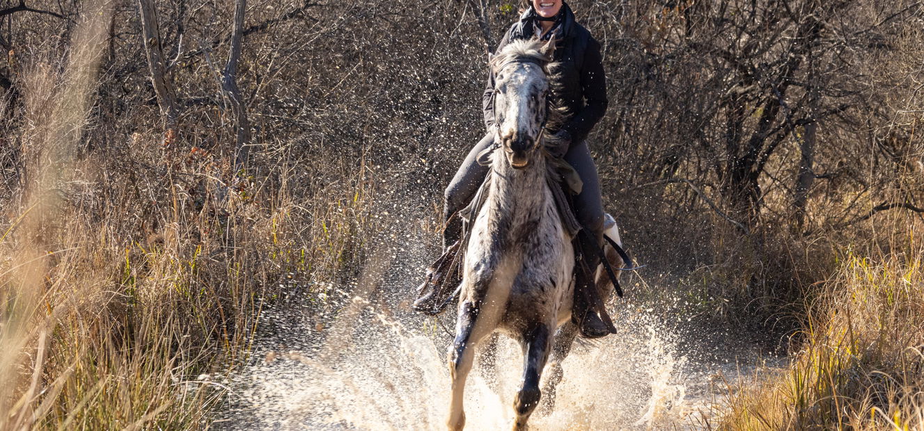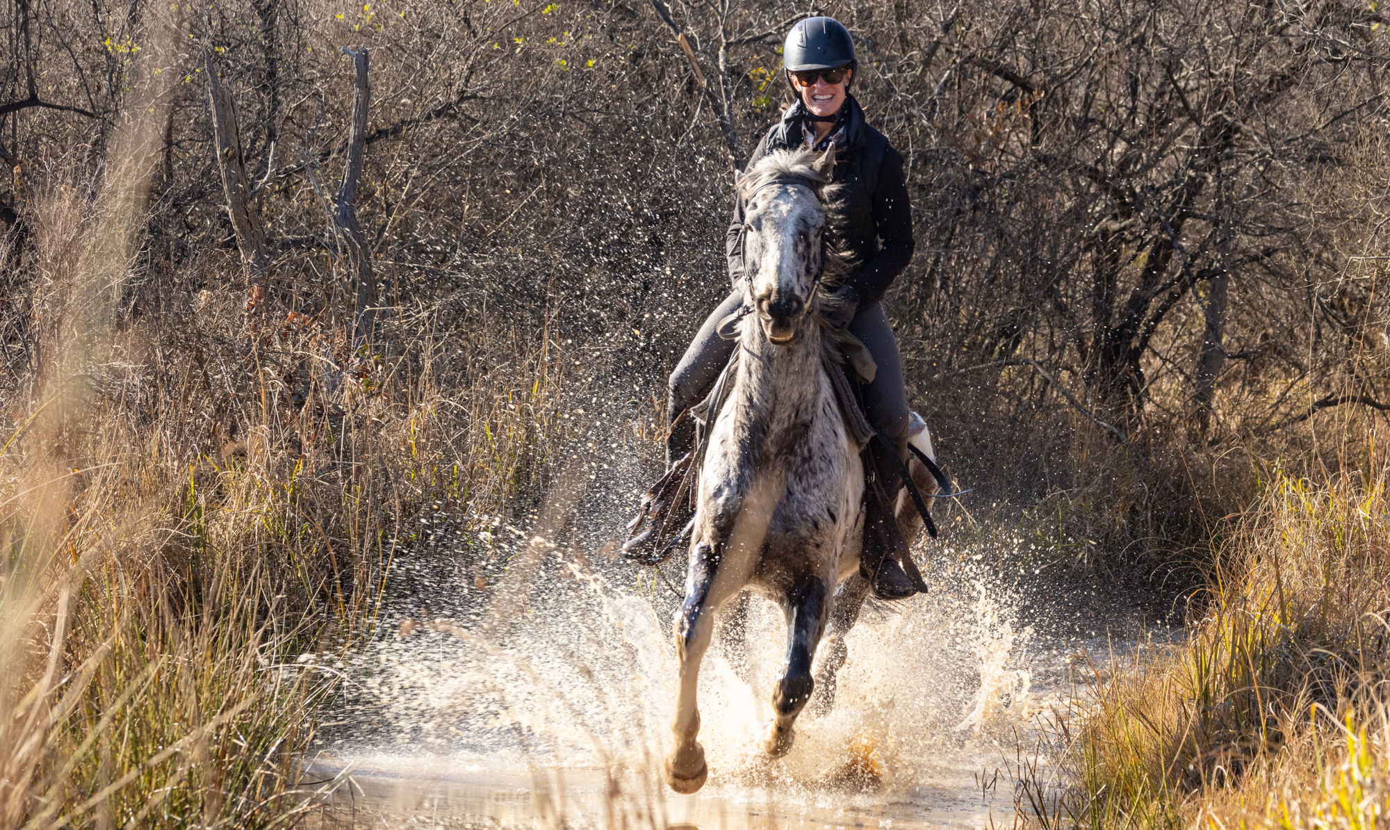 The Signature Safari is an eight-day, point-to-point riding adventure covering over 150 km through South Africa’s most spectacular Bushveld. With long morning rides, fun afternoon activities, and routes that sweep across 15,000 acres of plains, wetlands, rocky outcrops and savannah, you’ll encounter an extraordinary range of wildlife while enjoying splashy canters, horse swims, polocrosse and bush-log jumping. Designed for intermediate and above riders and limited to just eight guests, it’s an intimate safari that showcases every corner of this remarkable reserve.