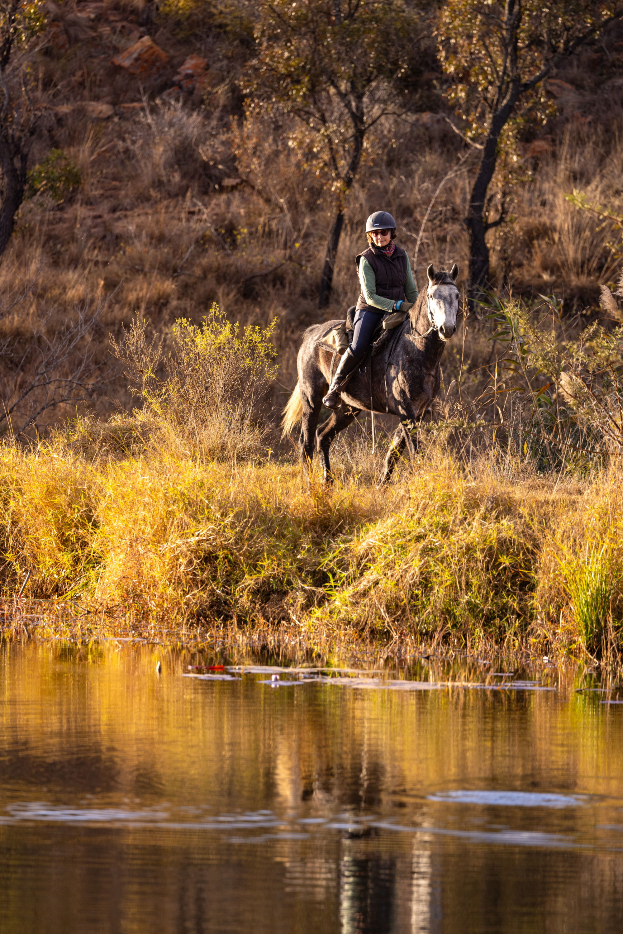 4 to 6 hours in the saddleYour first full day at in the game reserve reveals just how wild and wonderful the Waterberg truly is. Riding alongside game in their natural habitat is a pinch-yourself experience – the horses blend seamlessly into the rhythm of the bush, letting you get astonishingly close to the wildlife. Expect splashy canters along the dam, a cooling swim with your horse, and a sunset viewpoint that will stop you in your tracks. As dusk falls, you’ll stroll back to the lodge buzzing from an unforgettable day in the saddle.