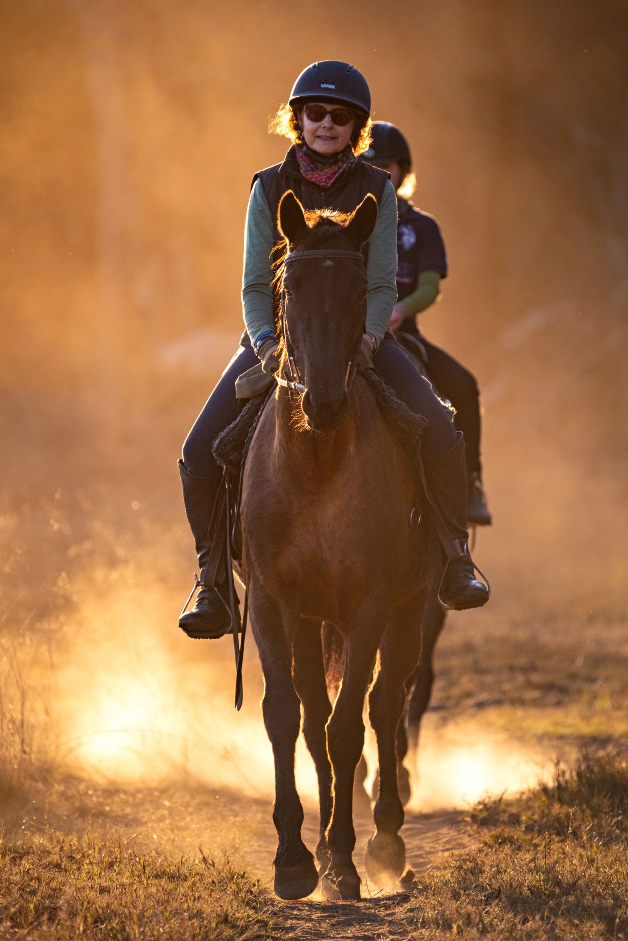 An intermediate rider who is currently riding regularly outside of an arena and is fit enough to ride for at least six hours per day. Strong intermediate riders are comfortable and competent in all three gaits; able to post or sit to the trot; have an independent seat while cantering (don’t hold onto the saddle); and can pick up the correct canter lead. They can also navigate more complex terrain, including asking a horse to sidestep and jump over a small obstacle.