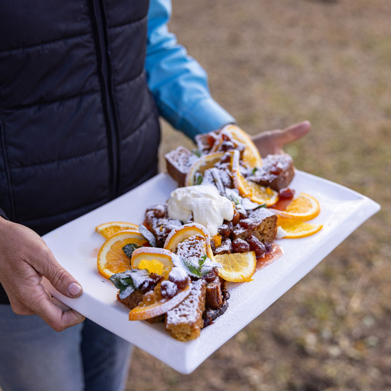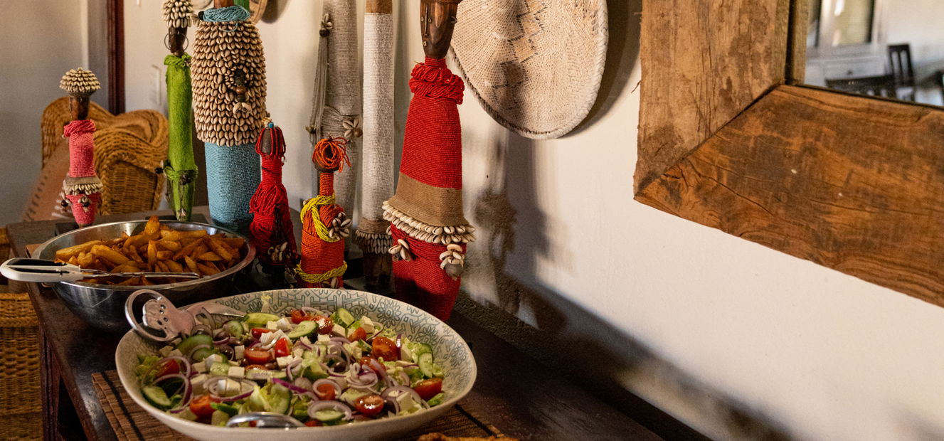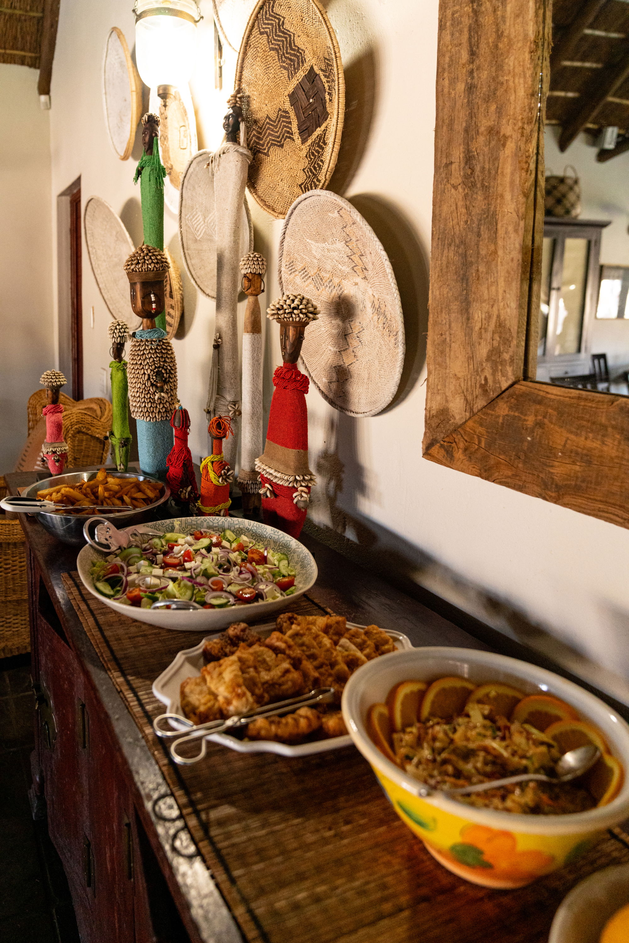 Expect high quality, freshly made food on your safari. A typical day would be cereal, eggs, toast, fruit and yoghurt for breakfast, peri peri chicken with Mozambique rice, green salad coleslaw and fresh bread for lunch, and a three-course evening meal with springbok carpaccio to start, game fillet as a main and pavlova for dessert. Yum!