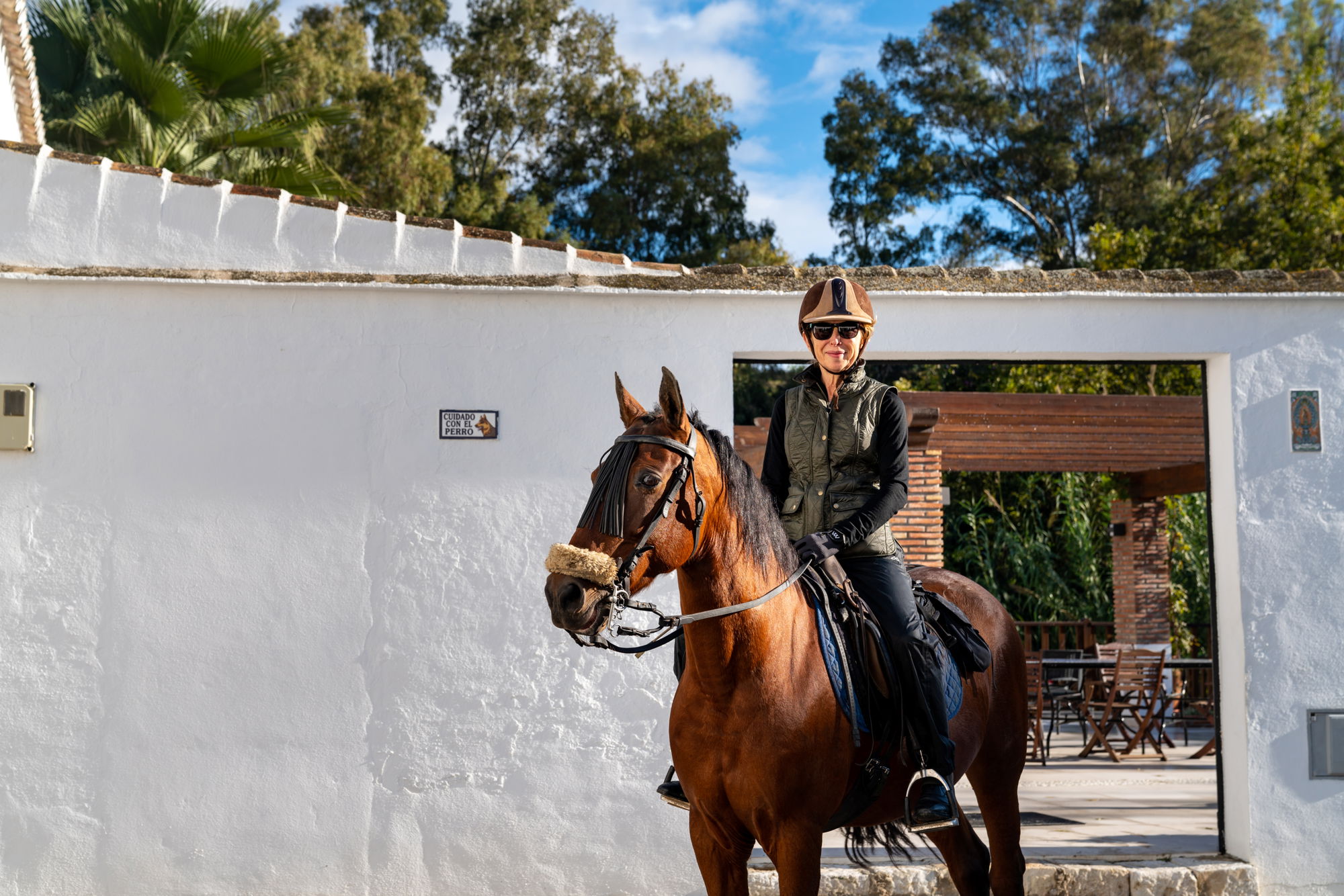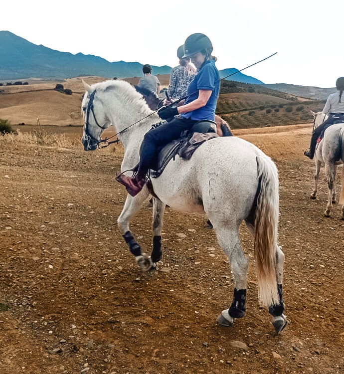 3 to 4 hours in the saddleAfter breakfast this morning, another unique Spanish experience beckons. Today you’ll be crossing the nearby town of Coín. You’ll ride through the high street and climb up towards the southside of the town and into a forest area called “El Nacimiento”, which literally means “birth”. In this case it’s the birthplace of natural springs, as this area holds an underground aquifer with natural spring water, a very important local water supply. You’ll encounter many wild herbs in the forest, such as rosemary, thyme and sage which, together with the pine trees, offers a wonderful blend of fragrance as you ride through them. The terrain is rocky at times but there will still be plenty of opportunities for trots and canters. On the way back, you’ll do as the locals do and stop for a drink at a local bar before returning home for dinner.