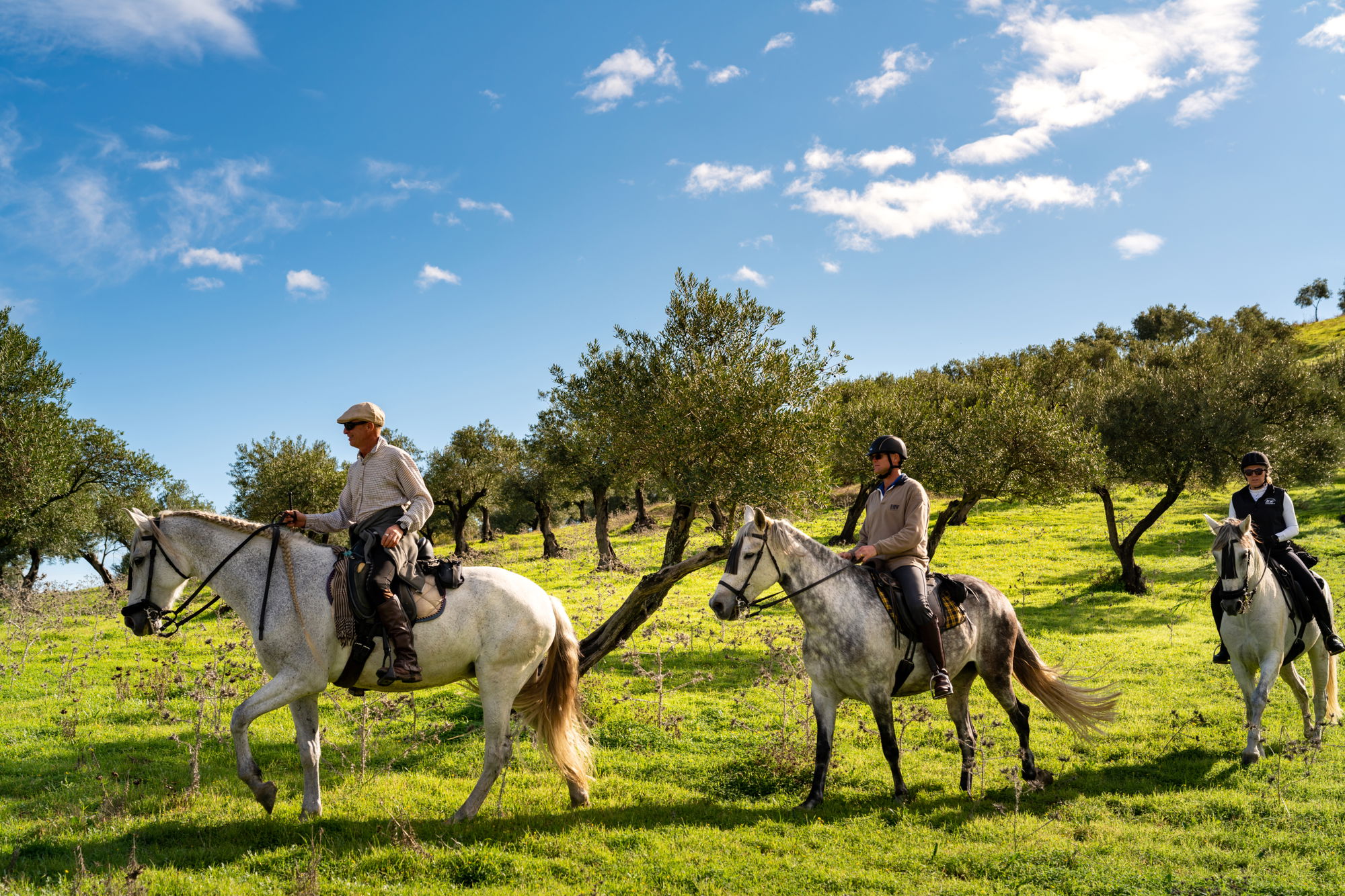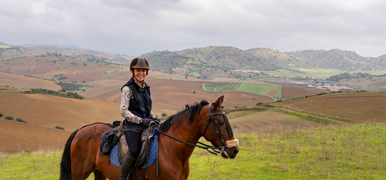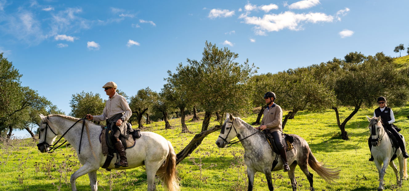 4 hours in the saddleThis morning you’ll be taking in Coín’s beautiful countryside once again. Today you’ll be in the saddle for four hours and will head east towards the Guadalhorce Valley to an area called ‘la Carreta’. You’ll initially be riding over a plateau dotted with Spanish country residences, and will enjoy long trots and changing vistas before descending towards Rio Pereila and following lower tracks to return back to Coin. Finally, another delightful evening of food and conversation awaits.
