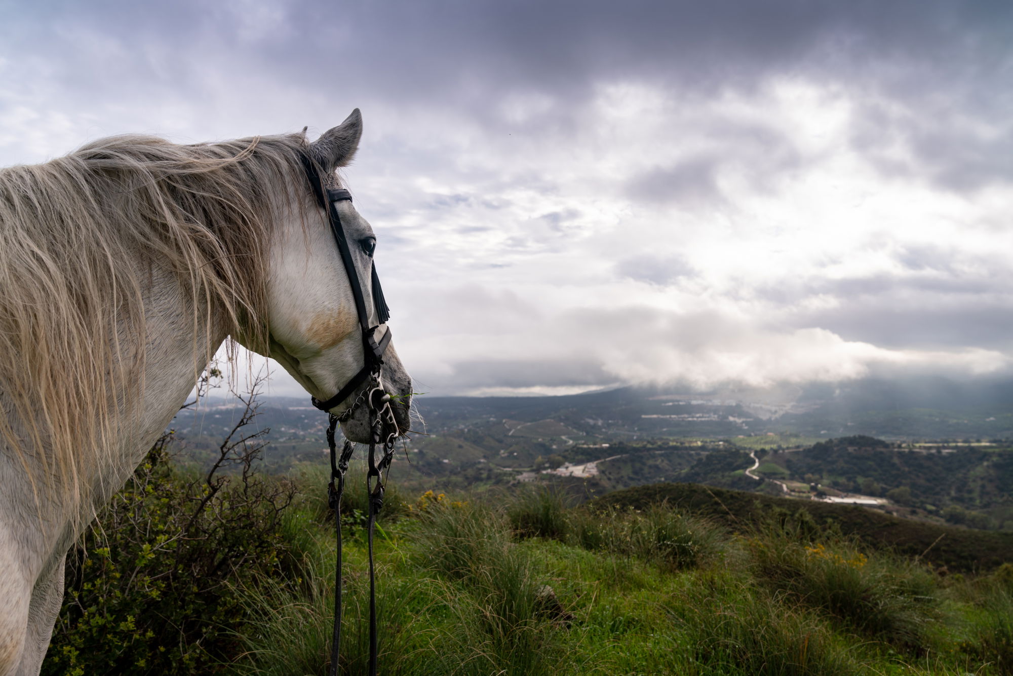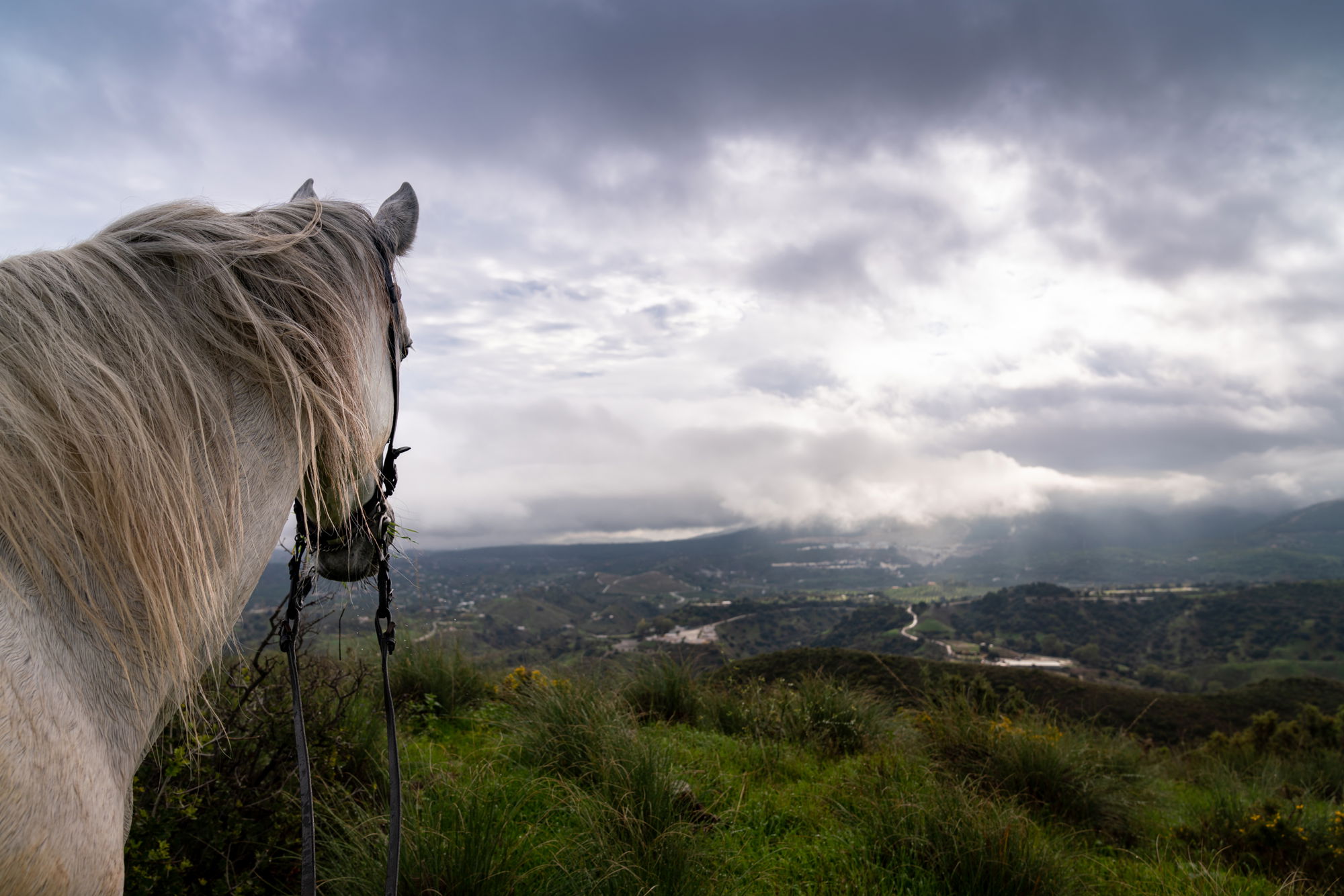 3 to 4 hours in the saddleToday, after breakfast, you’ll follow a quiet country lane for a while before exploring an area towards the north-west from Molino de Saladilla. You’ll descend down towards the Rio Grande where the horses are offered a drink before crossing over and into some stunning open countryside ‘La Jarra’. From this vantage point, the views will astound you and you’ll gain a new appreciation as to why visitors are in awe of the beauty of Andalucía. After another exhilarating canter, you’ll enjoy a fabulous 360 degree view of ‘La Jarra valley’ overlooking quaint coastal regions and the white village of Alozaina with the “Sierra de las Nieves” as a stunning backdrop.