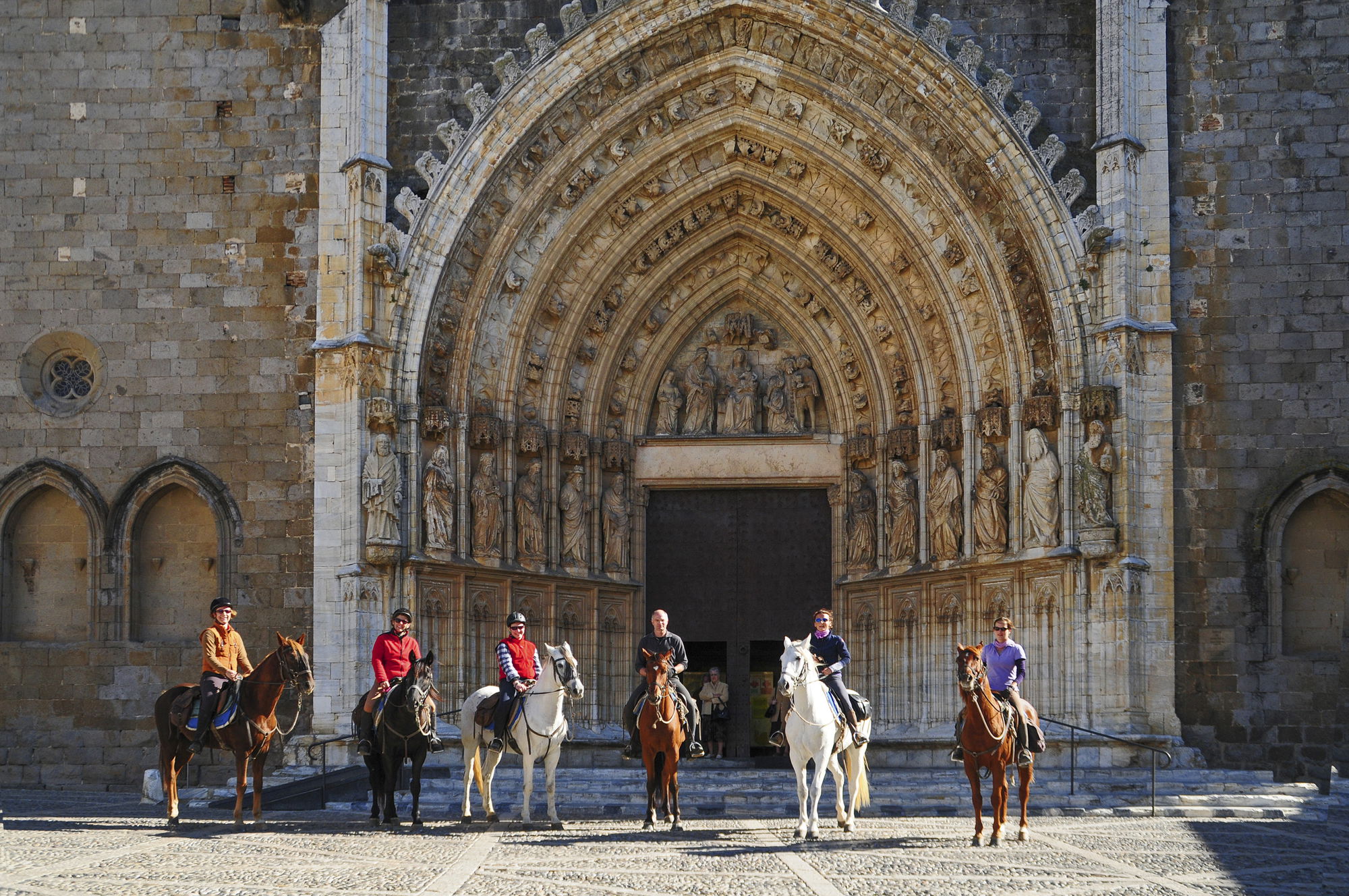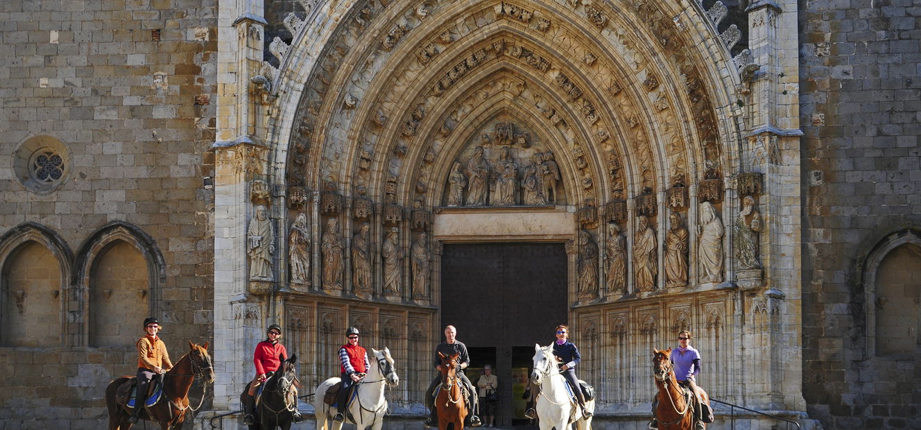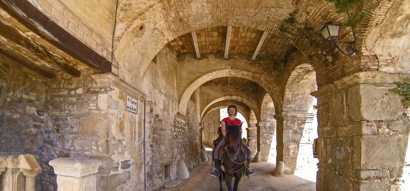 3 to 4 hours in the saddleA mouthwatering breakfast will be served at the stud this morning, then you’ll pack your bags once again and say adios to the Andalusians and their beautiful home. The pace picks up today, with plenty of invigorating trots and canters en route to the medieval town of Castelló with its gothic cathedral. There will be time to take a quick look around, then more high-flying canters will bring you through picturesque meadows, vineyards and sunflower fields.