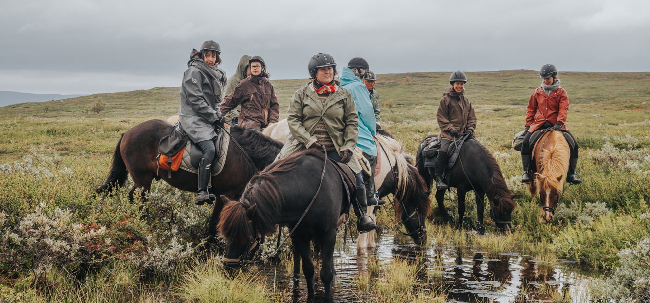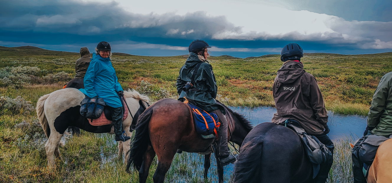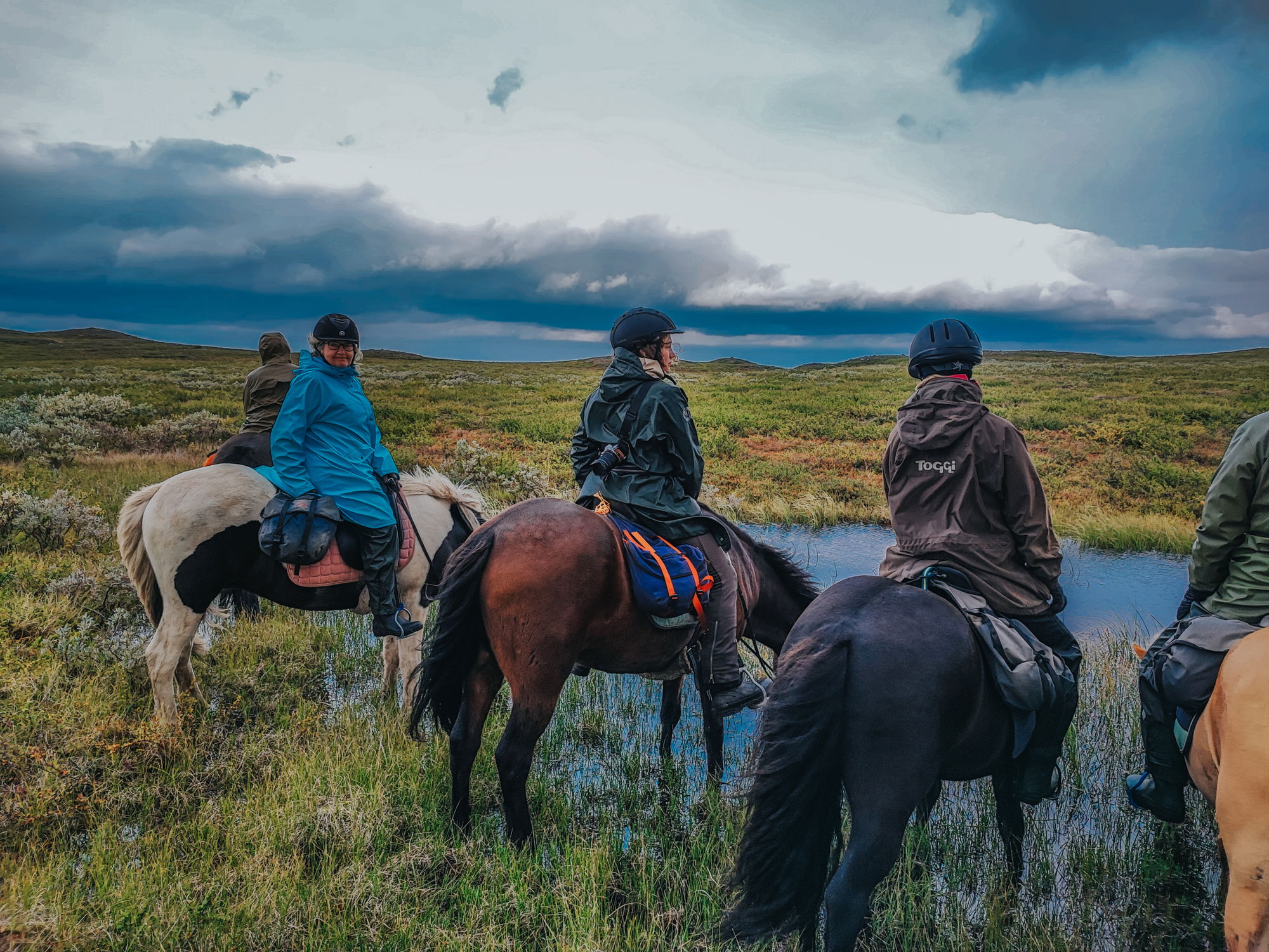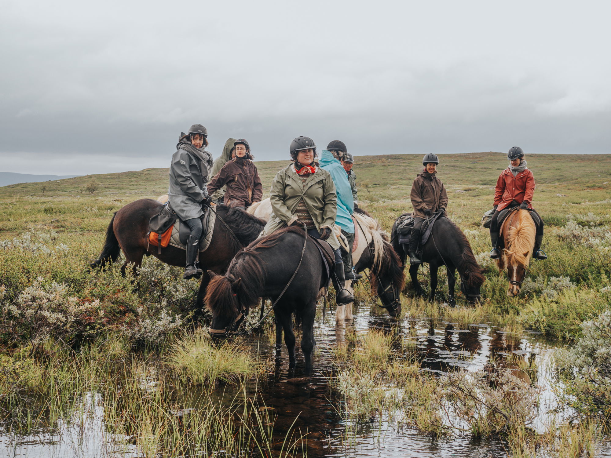 The pace is variable depending on terrain. You are riding across landscapes with large areas of elevation and rarely flat ground. Whilst there are some good stretches for tölt and canter, this is not what the ride focuses on and as such, there is quite a lot of walking and time to enjoy the scenery and peace and quiet. Trust that your guide will know what is safe for you and the horses, and adapt speed thereafter.