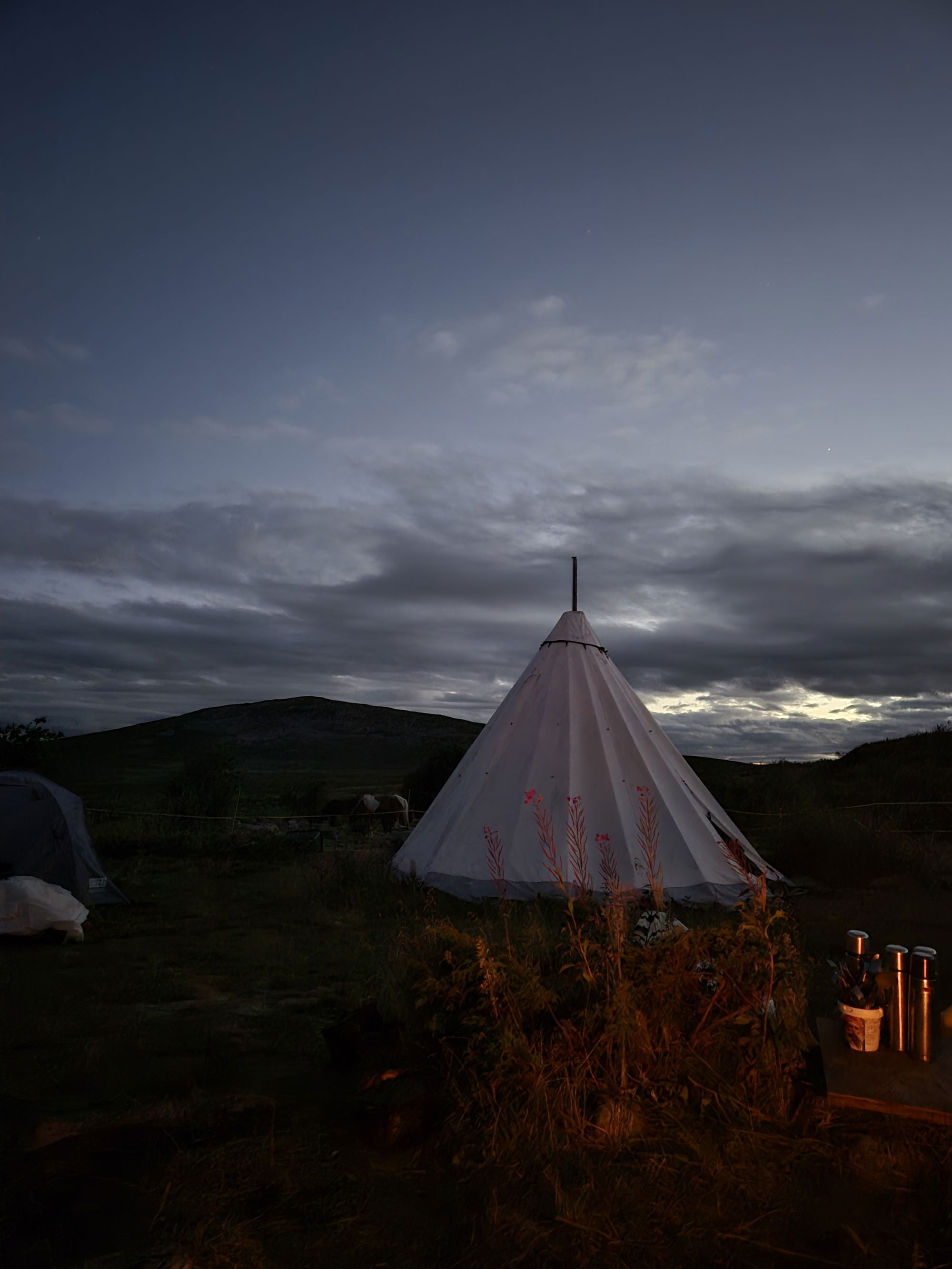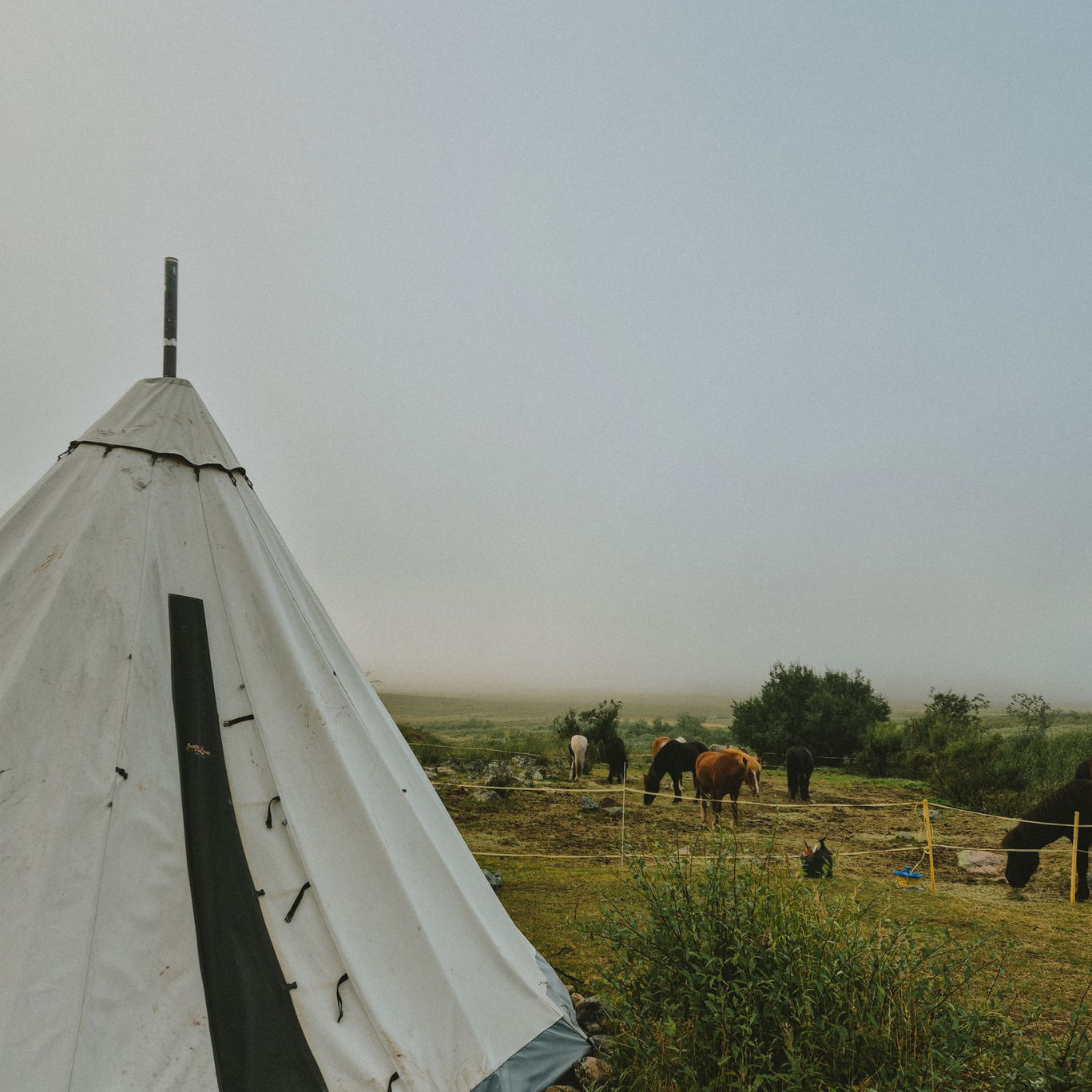 4 to 5 hours in the saddleThis morning we’ll don our riding gear and head to the stables to groom the horses before the short vehicle transfer to the only bridge across the Kalix river. Here we will tack up, mount up, cross the river and officially begin our trek. From forest foothills to the bare mountain, this is one of our longest days in the saddle – around 23 kilometres (14 miles) – ending at our teepee camp, Biellugis. After tending to our beautiful, tough Icelandic horses, we will set up our communal teepee tent, help cook a campfire dinner, and soak up the peace of the mountains under the lingering northern light.