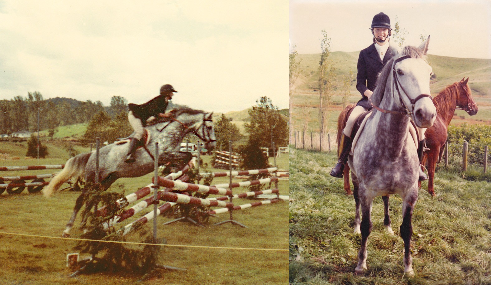 In my early teens my summer holidays were spent pony trekking in South Wales, and after my tertiary agricultural studies I went to Australia for a year and travelled around the country milking cows and being a jillaroo – wonderful experience!! I returned to the UK, but a few years later when I was 25, I emigrated to New Zealand. Within 12 months was able to purchase my first and only horse, TJ, a 15.2 hand high ‘mixed breed’ grey, aged 7. He cost NZ$300 and he came complete with his summer rug! My life felt complete!