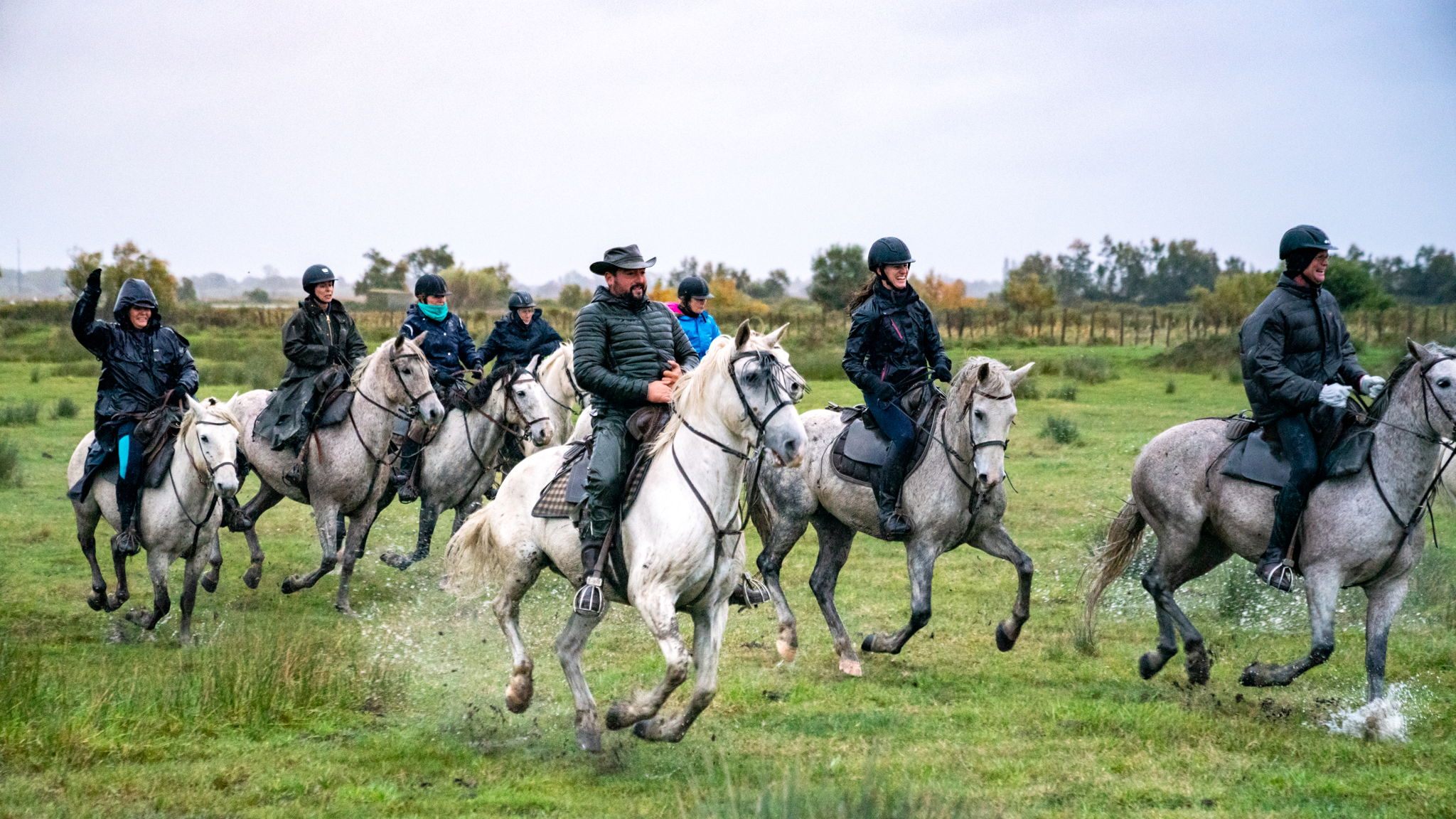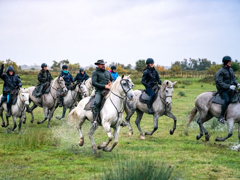3. Waterproof riding pants: Over breeches or jeans for light rain; add thermals underneath for heavier days. We love Mountain Horse Polar Breeches